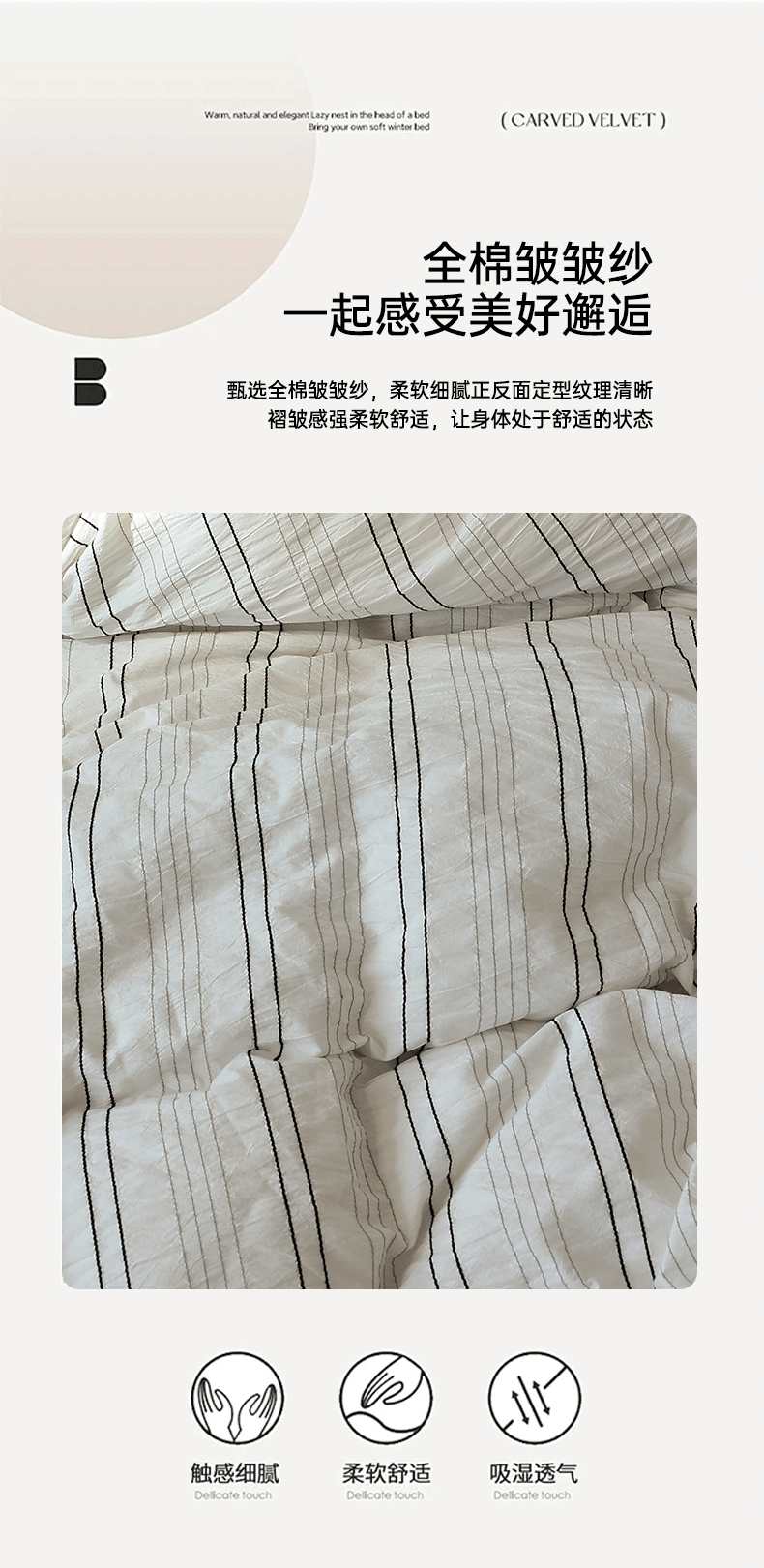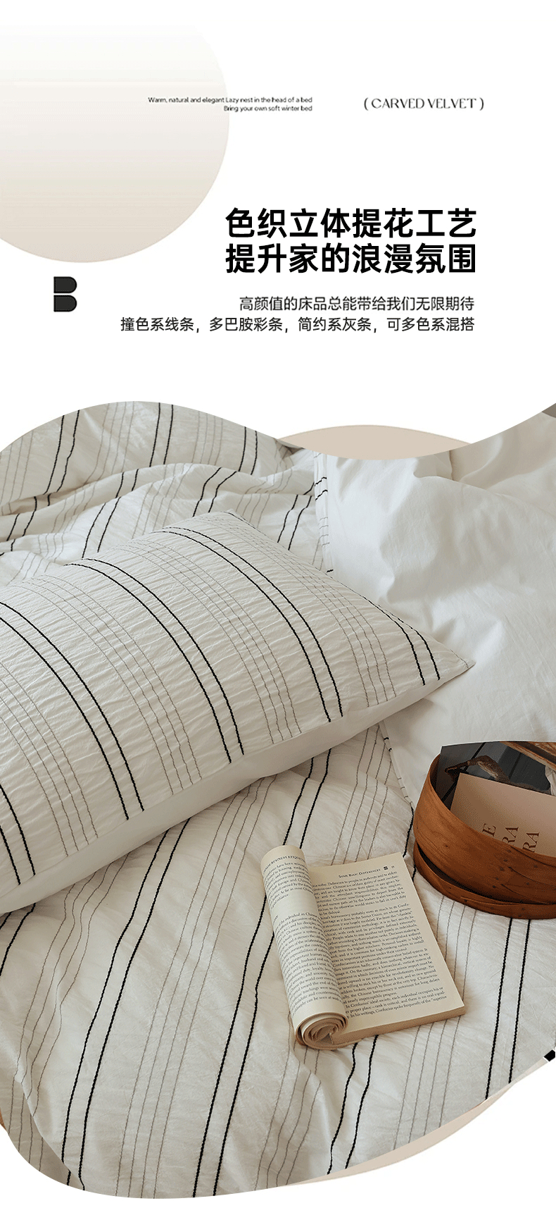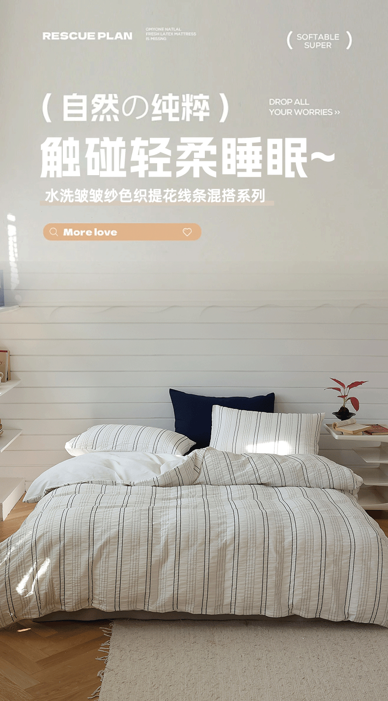 当前位置: 91家纺网 > 商品网购 > 床品套件 > 四件套 > 水洗棉四件套 > 棉眠 2024新款水洗皱皱纱色织提花线条混搭系列四件套 黑灰细条配灰
