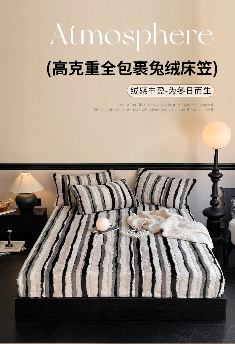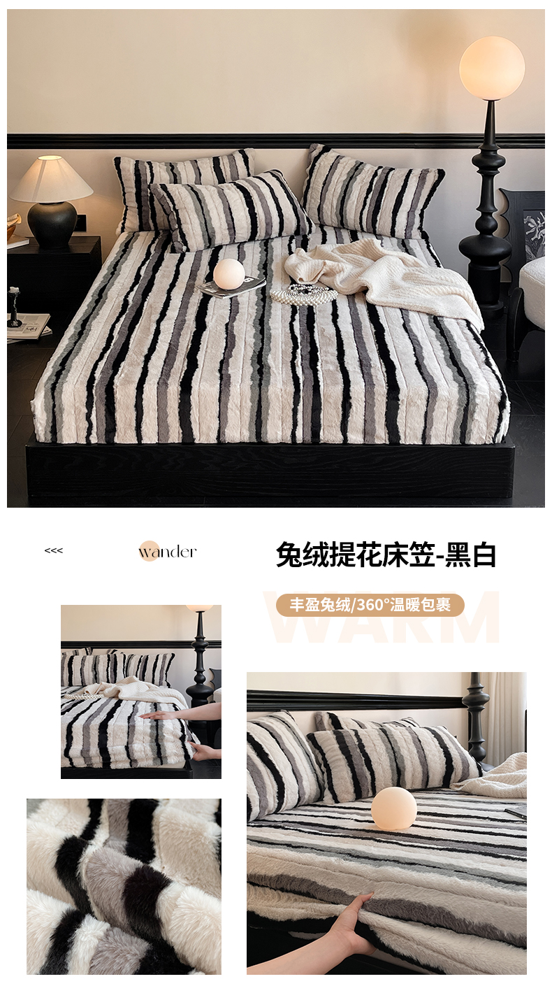 商品名称:宜代光年 2024新款兔绒提花床笠系列 兔绒提花床笠-黑白