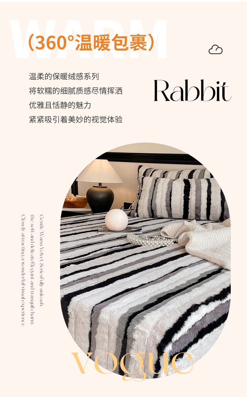 宜代光年 2024新款兔绒提花床笠系列 兔绒提花床笠-黑白