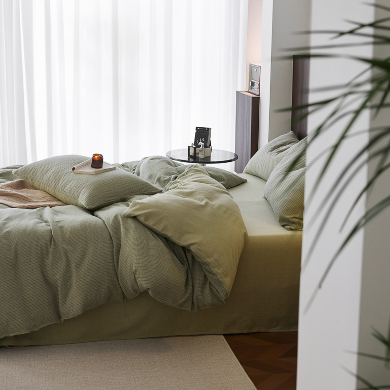 商品名称:简家居 2024新款全棉系列四件套-回忆录 苔藻绿