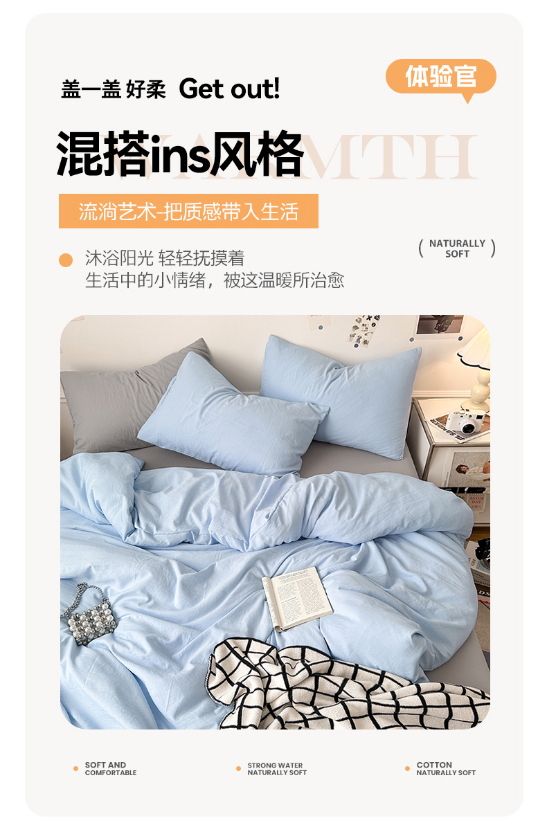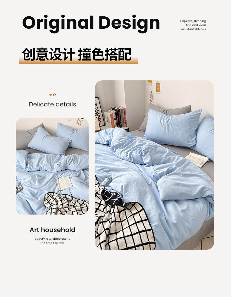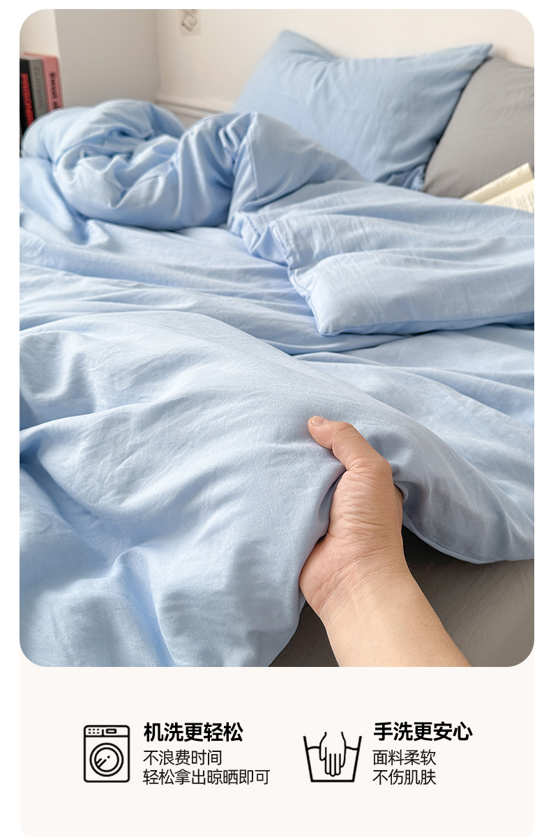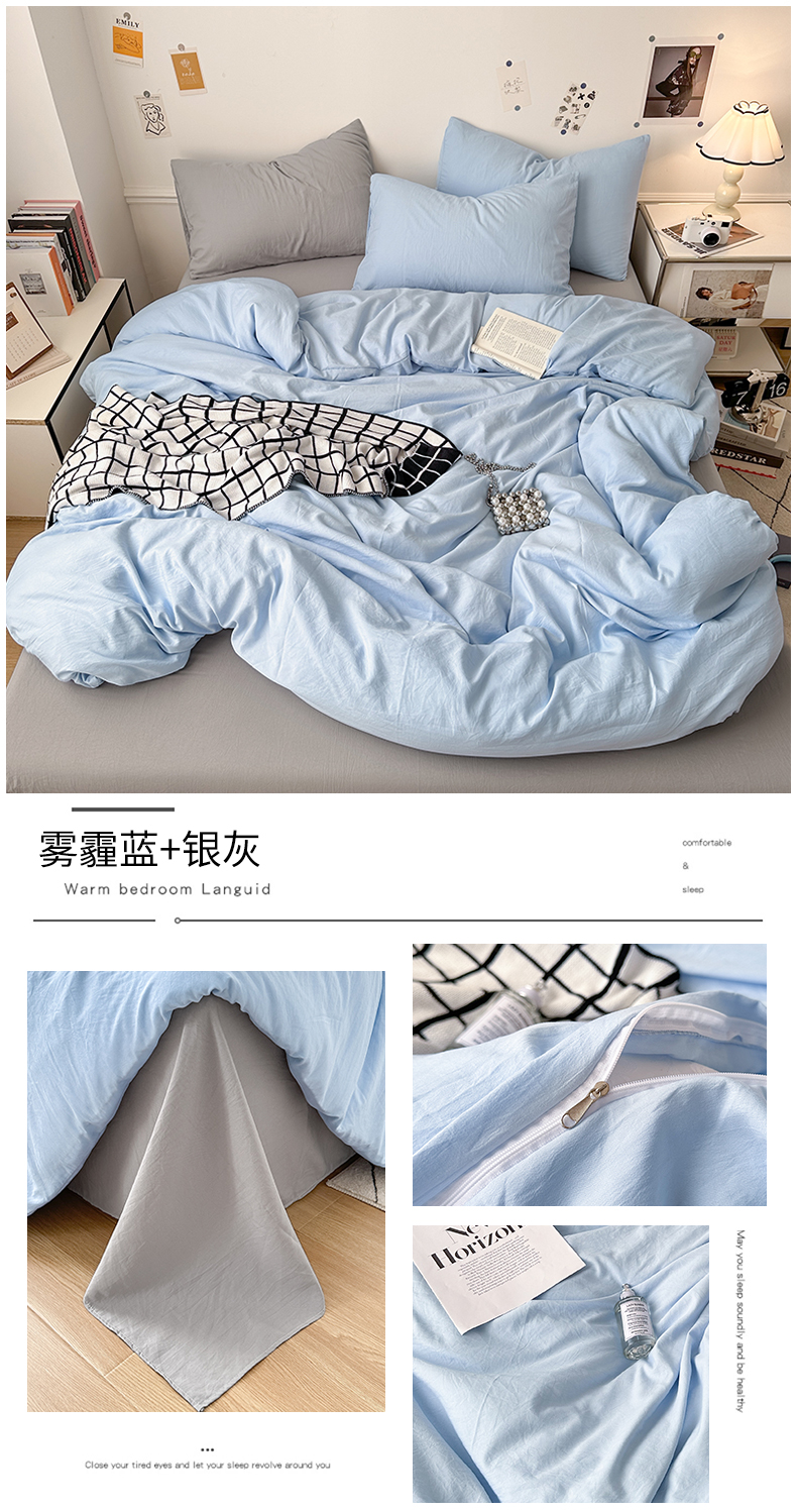 当前位置: 91家纺网 > 商品网购 > 床品套件 > 四件套 > 水洗棉四件套 > 多品家纺 2024新款超柔混搭水洗棉四件套 雾霾蓝+银灰