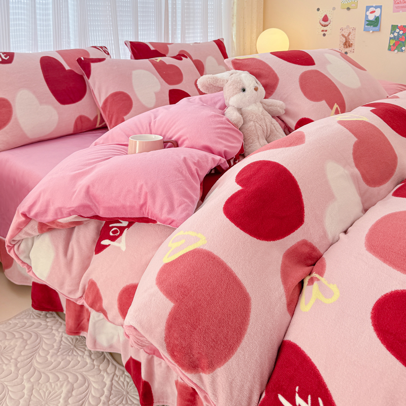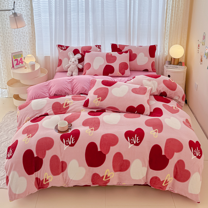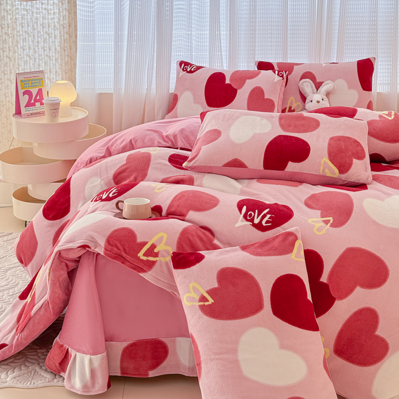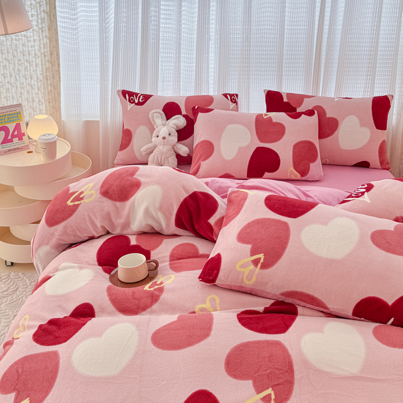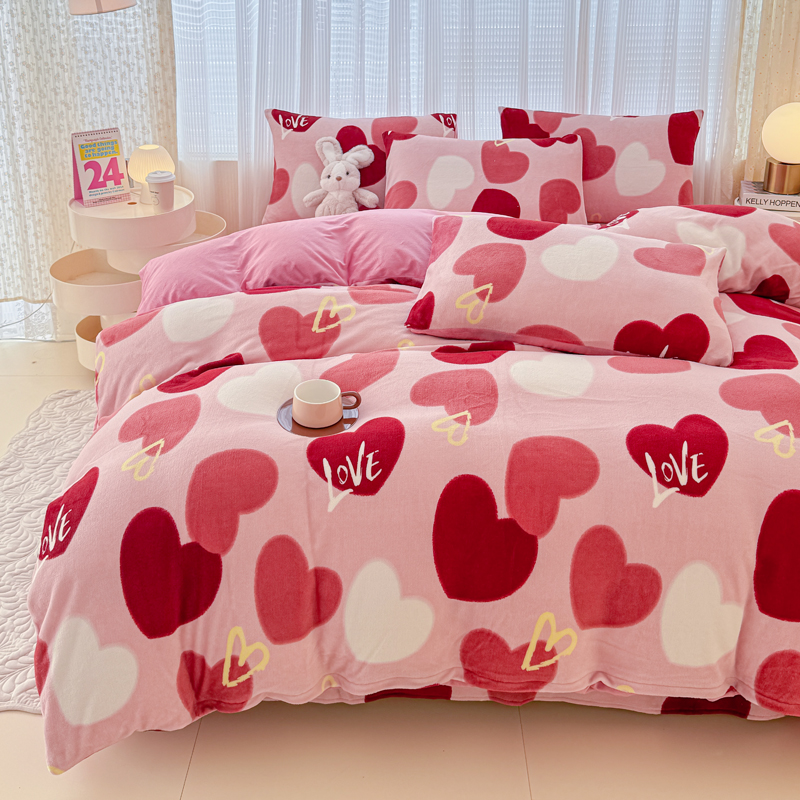 仟网汇 2024直播爆款跑量牛奶绒四件套 红爱心