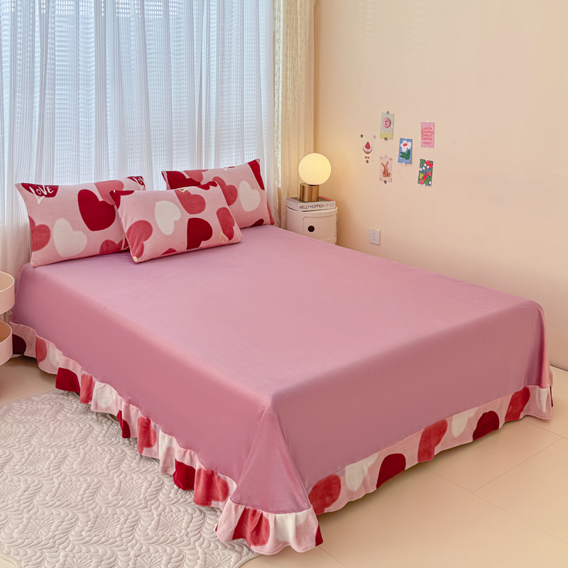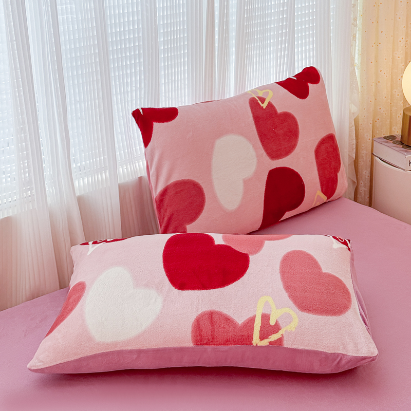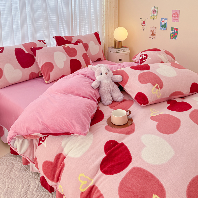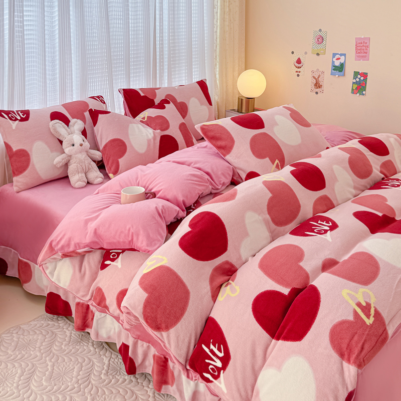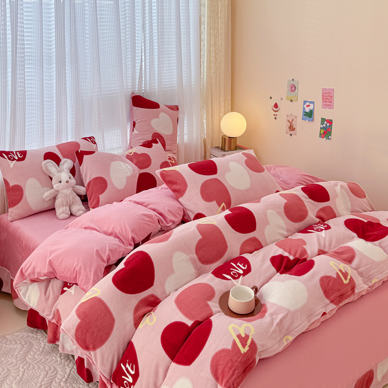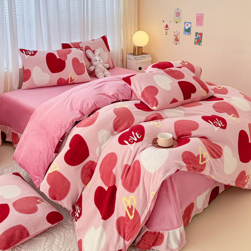 仟网汇 2024直播爆款跑量牛奶绒四件套 红爱心