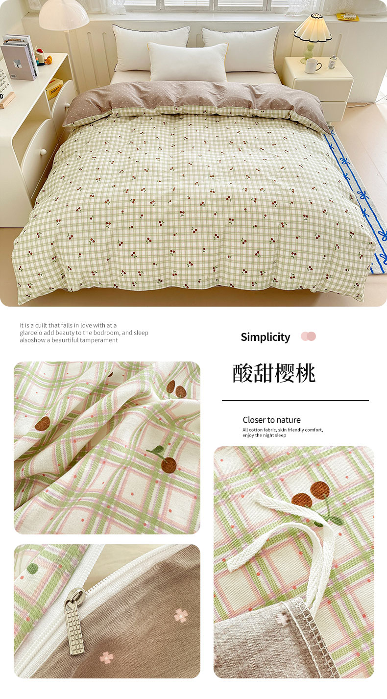 商品名称:绵庭家纺 2025新款全棉印花单被套系列 酸甜樱桃