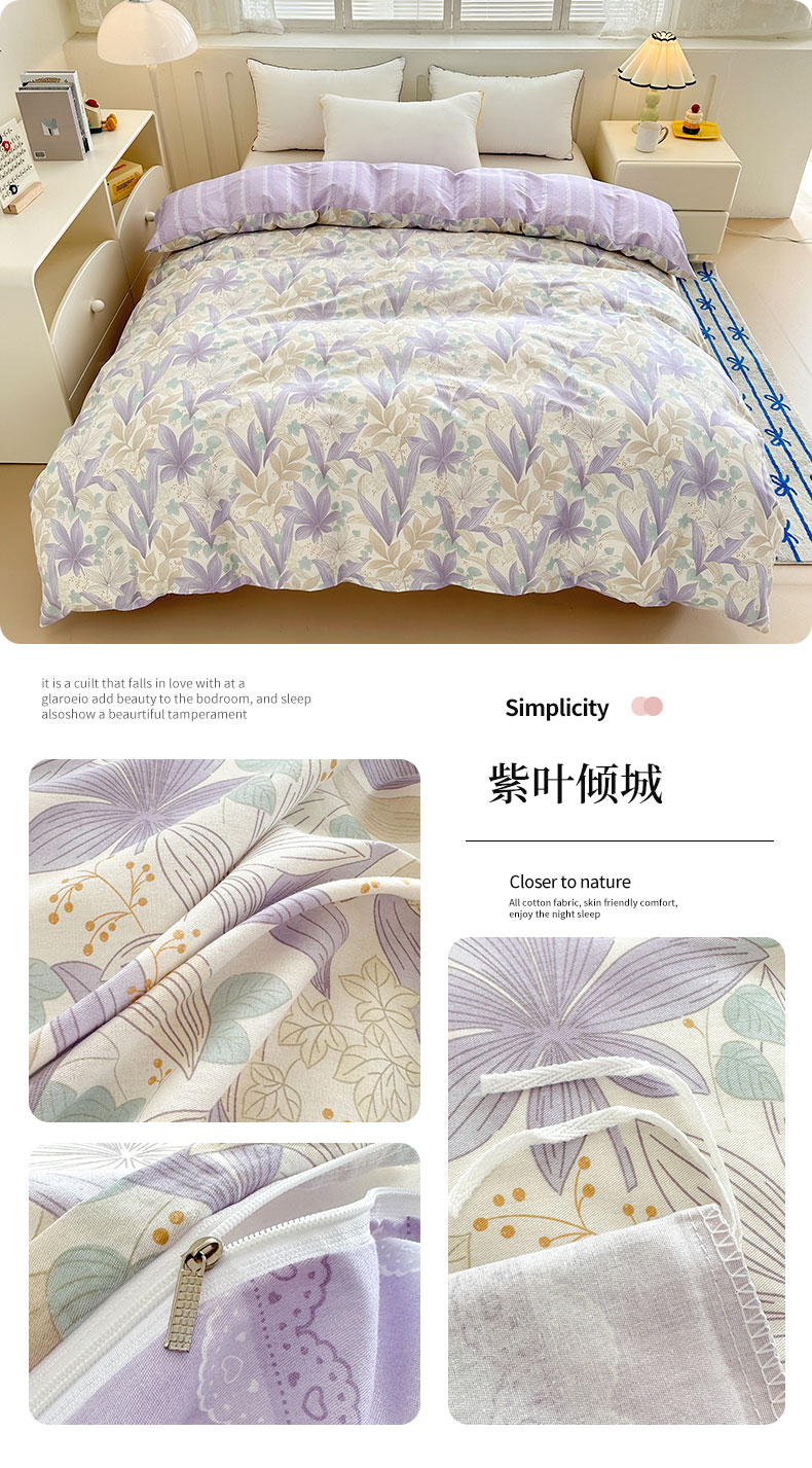 绵庭家纺 2025新款全棉印花单被套系列 紫叶倾城