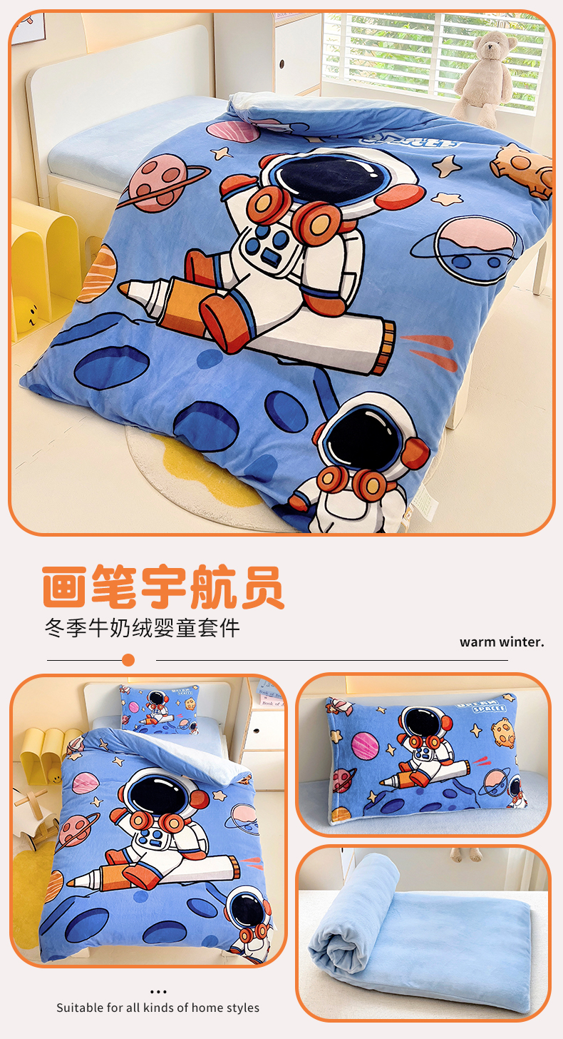 当前位置: 91家纺网 > 商品网购 > 床品套件 > 多件套 > 多件套 > 鱼宝 2024新款大版牛奶绒婴童套件画笔宇航员