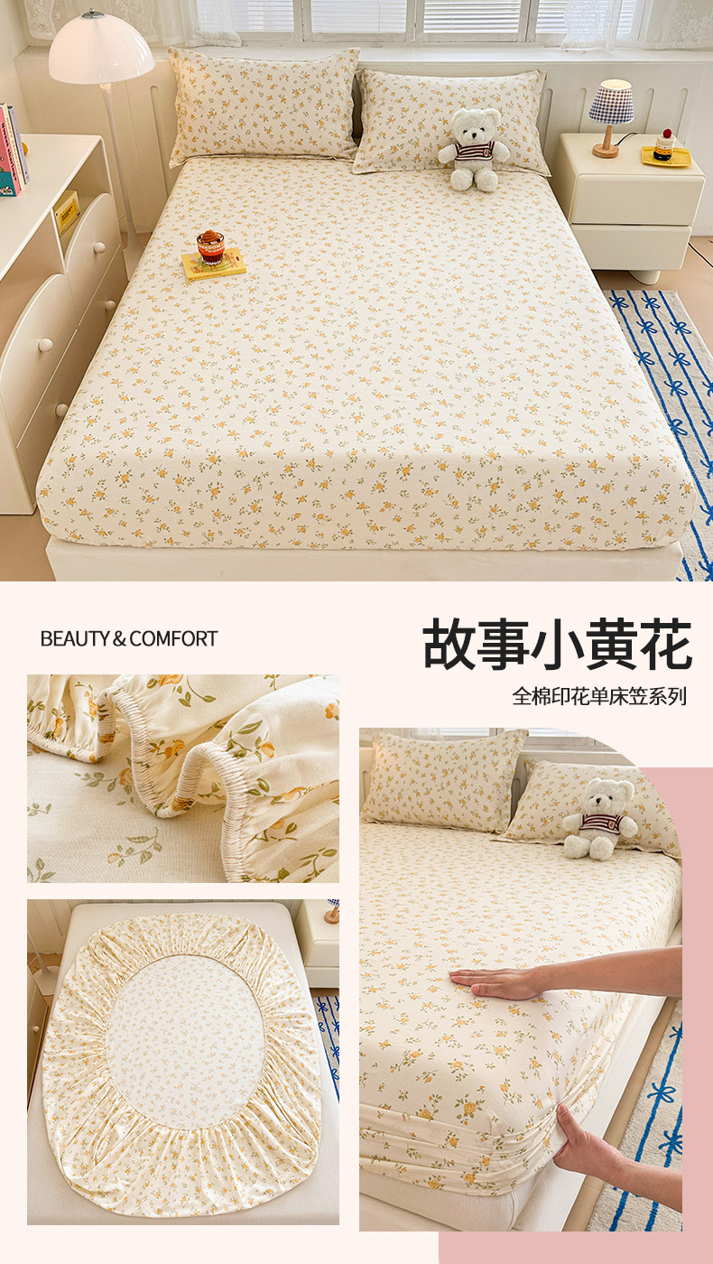 绵庭家纺 2025新款全棉印花单床笠系列 故事小黄花