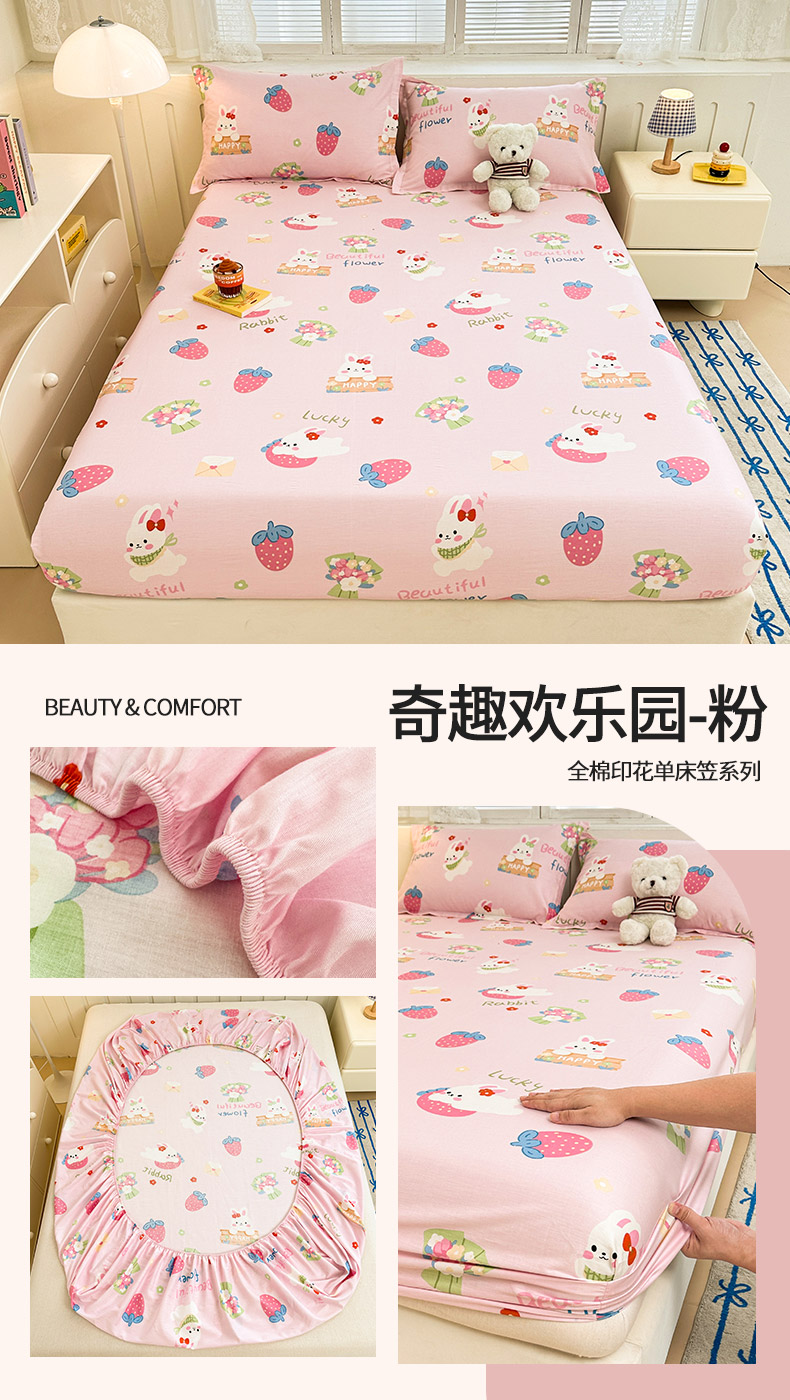商品名称:绵庭家纺 2025新款全棉印花单床笠系列 奇趣欢乐园-粉
