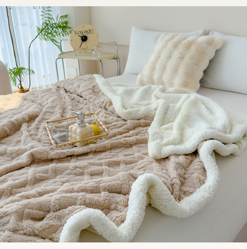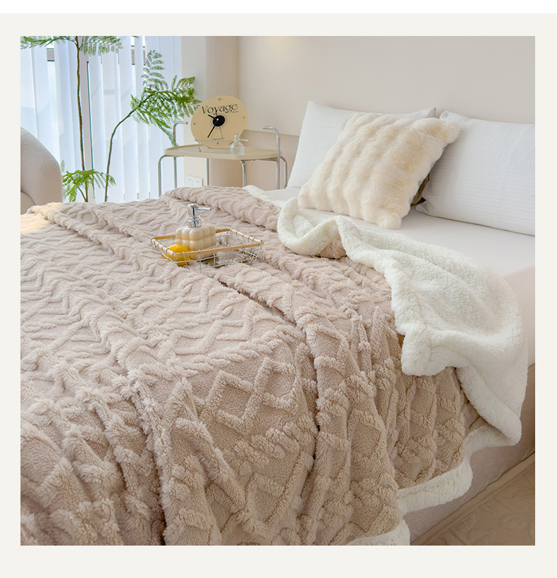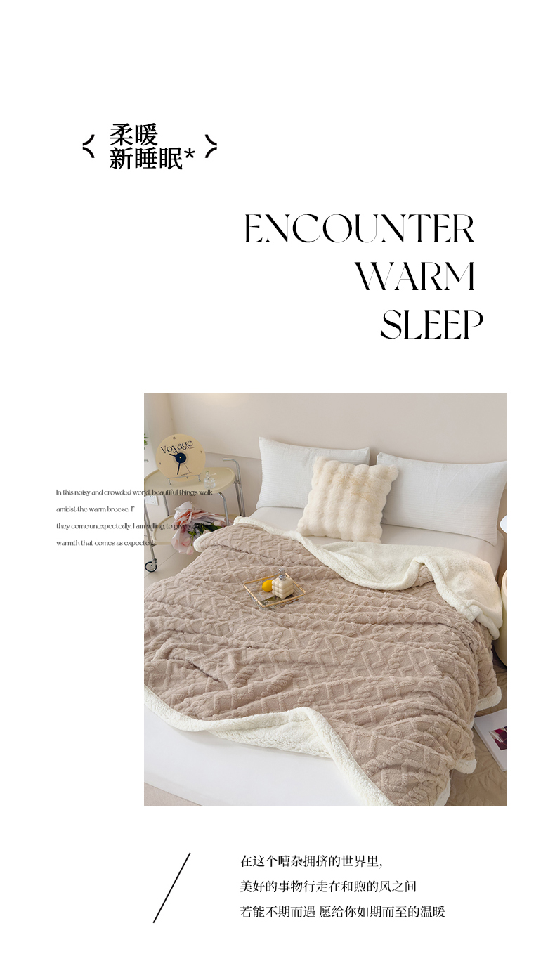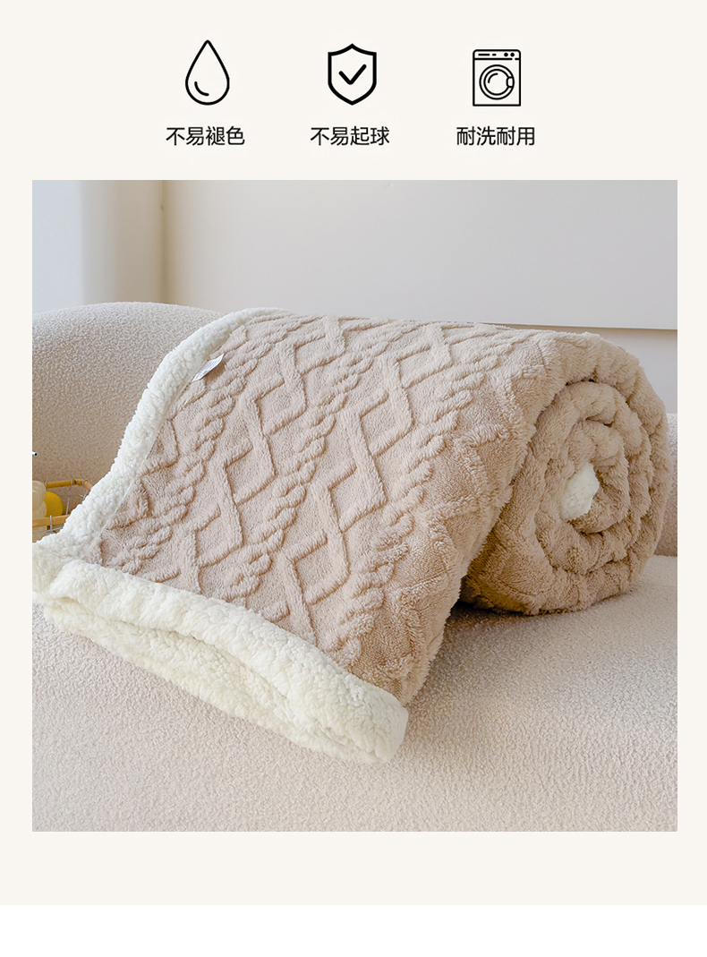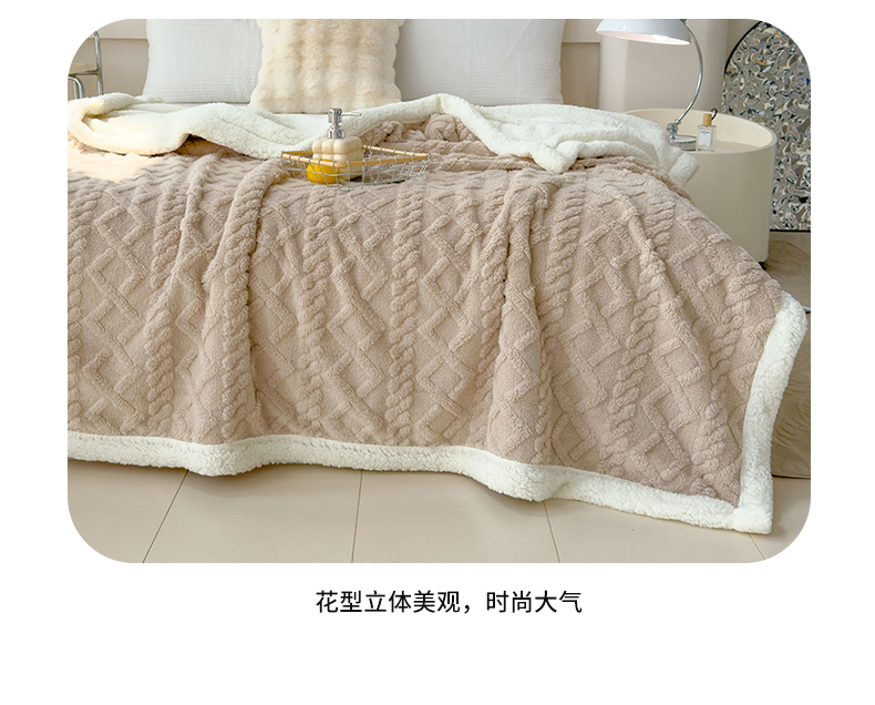 商品名称:柏薇 2024新款塔芙绒羊羔绒双层毛毯系列 奶茶色
