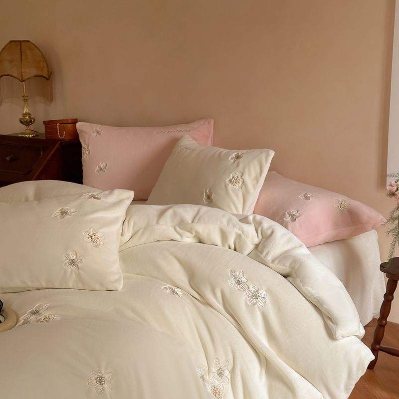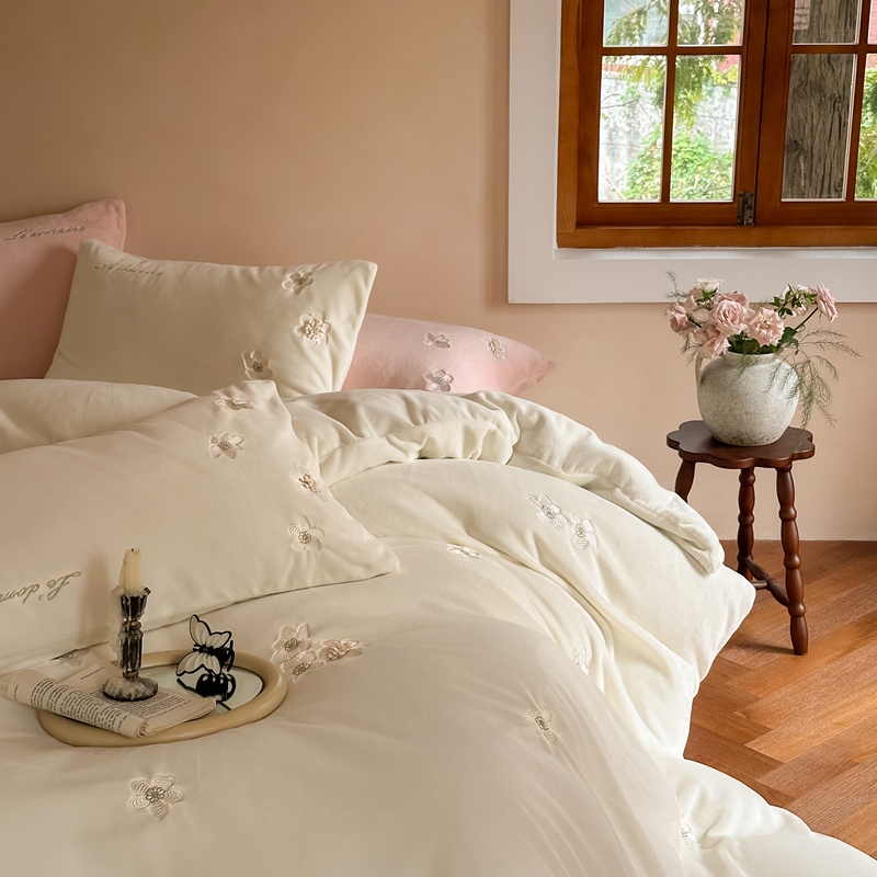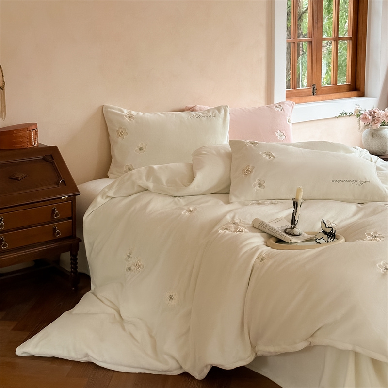 (总)初拾 2025新款230g牛奶绒“高级感“绣花四件套—曼岛邂逅,曼岛邂逅-奶油粉,曼岛邂逅-气质灰,曼岛邂逅-香槟