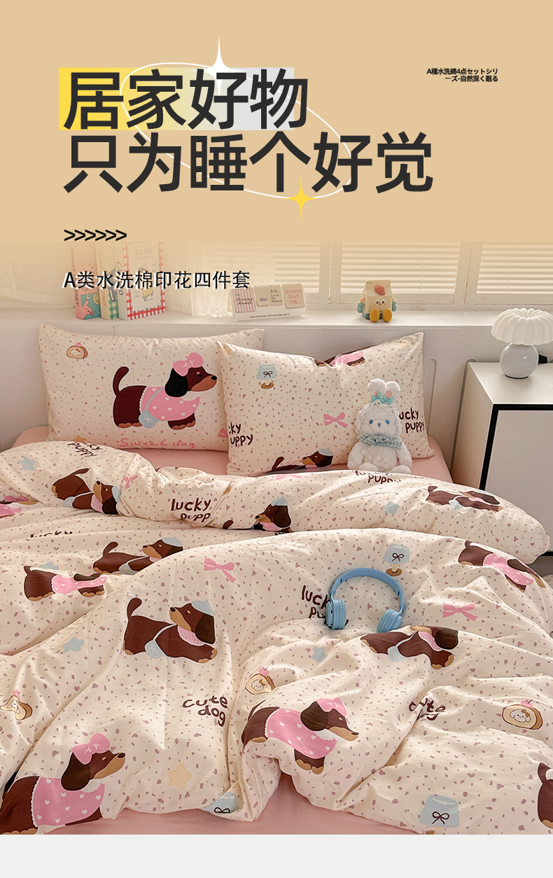 当前位置: 91家纺网 > 商品网购 > 床品套件 > 四件套 > 水洗棉四件套 > 多品家纺 2024新款水洗棉大版枕套混搭四件套 小可爱