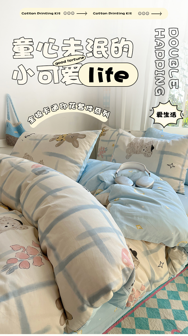 瑞莱 (持续上新)2024冬季新款13372全棉印花四件套-卡通系列 玩偶派对