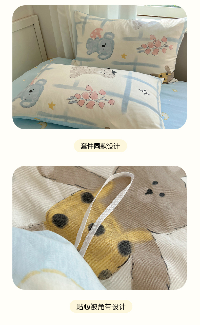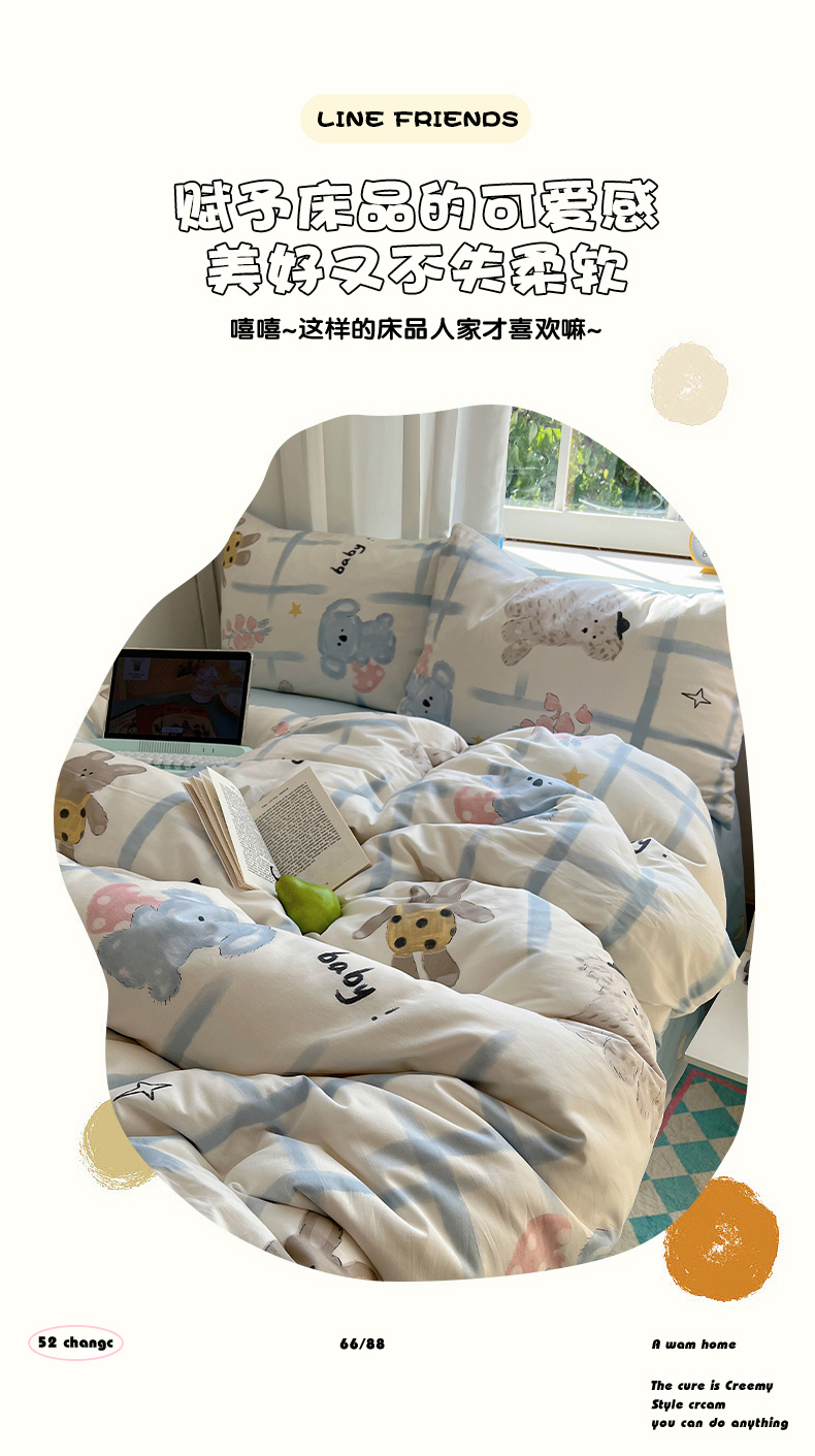 商品名称:瑞莱 (持续上新)2024冬季新款13372全棉印花四件套-卡通系列 玩偶派对