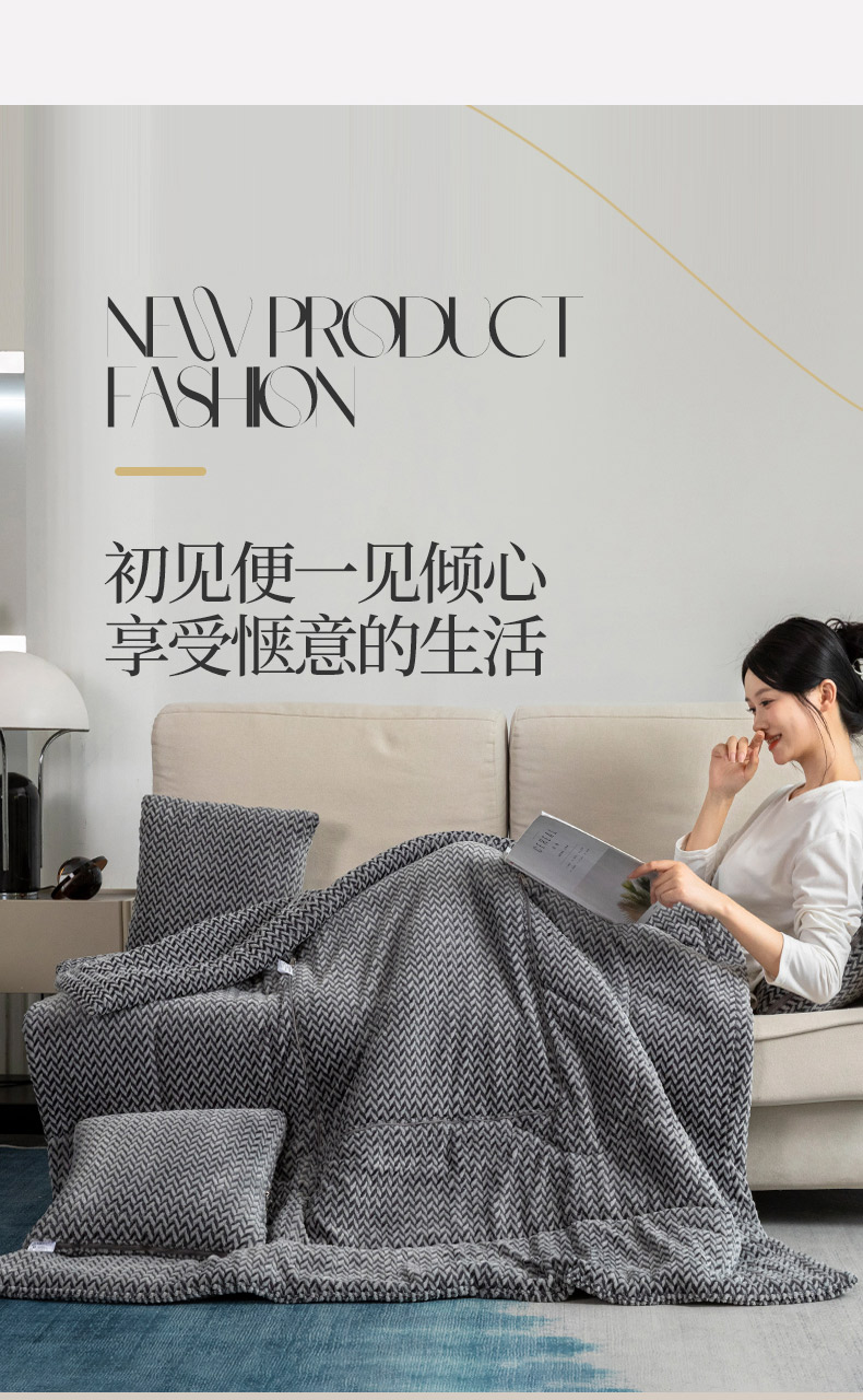 雷人家纺 2023新款时尚塔芙绒多功能加厚抱枕被 贵族气息-气质灰