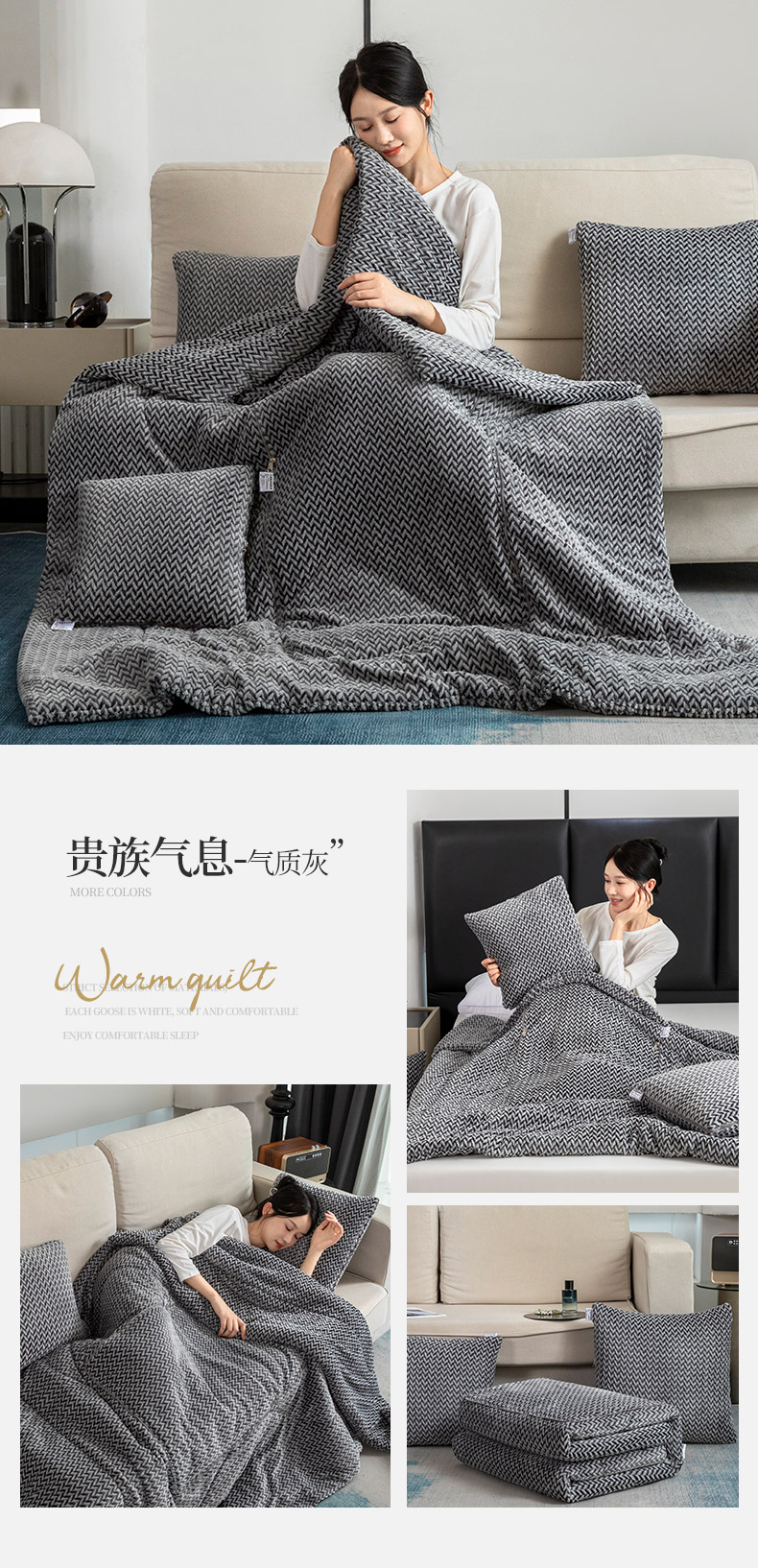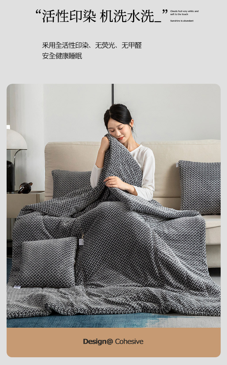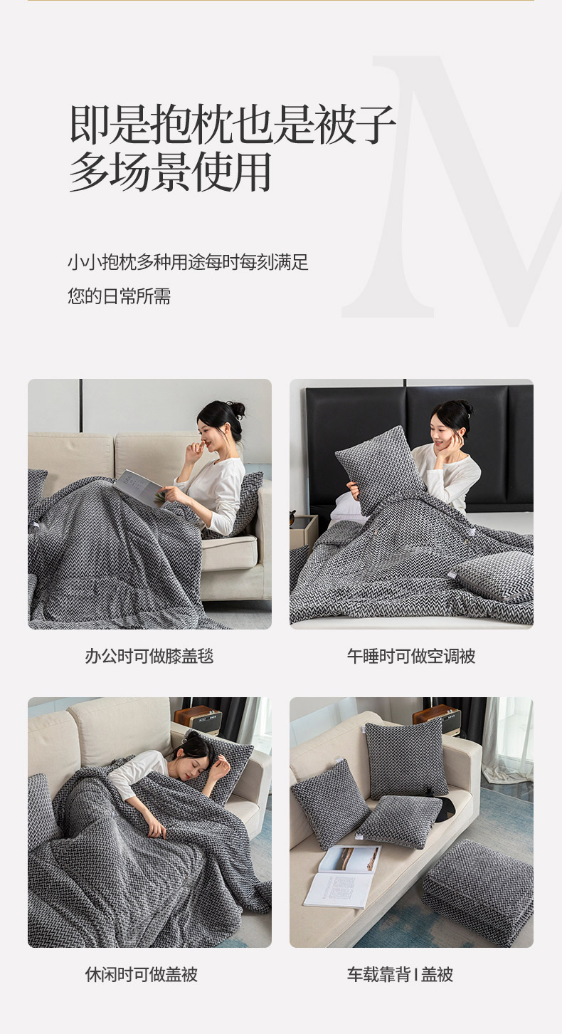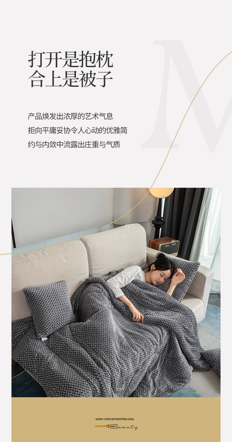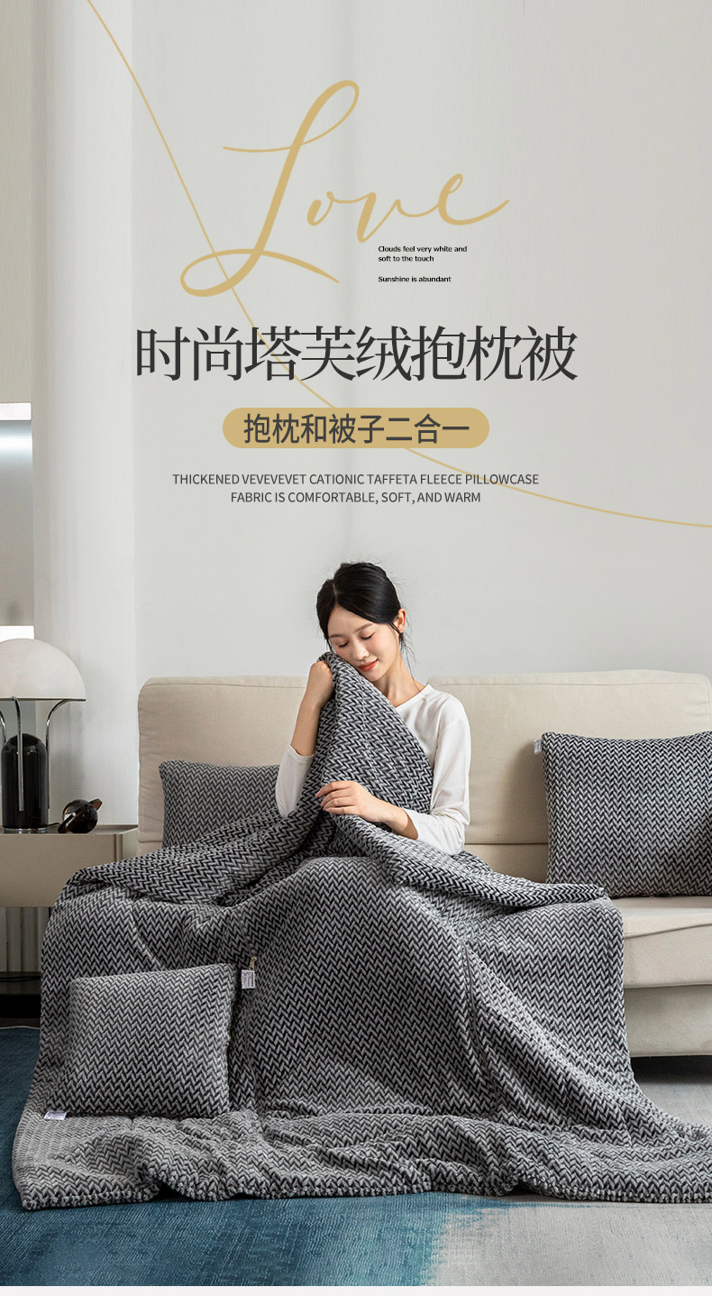 商品名称:雷人家纺 2023新款时尚塔芙绒多功能加厚抱枕被 贵族气息-气质灰