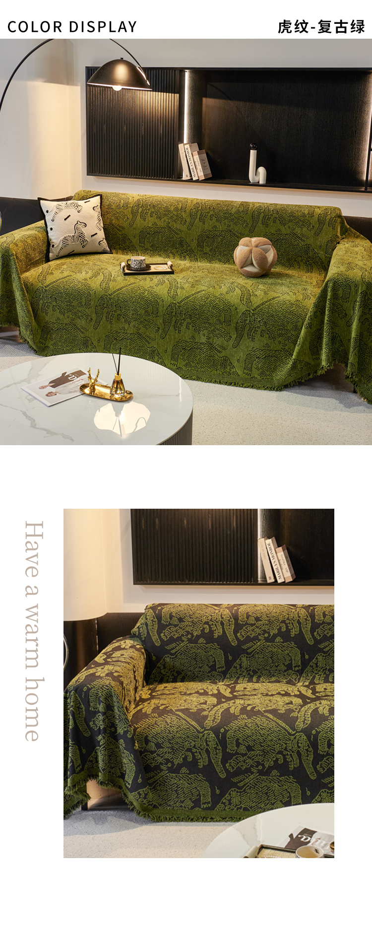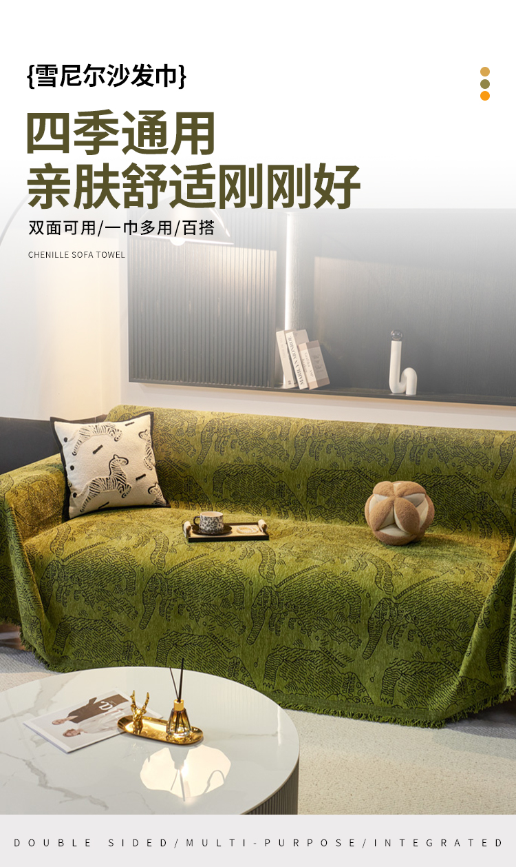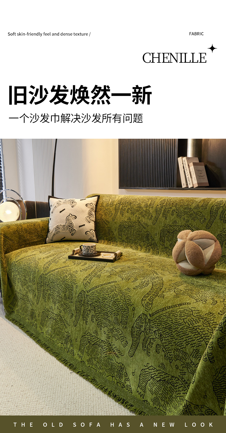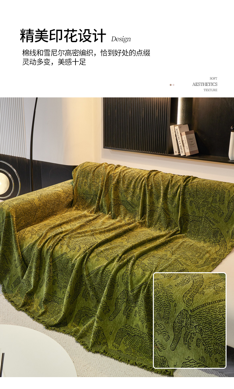 当前位置: 91家纺网 > 商品网购 > 居家布艺 > 坐垫/椅垫/沙发垫 > 沙发垫 > 逐日沙发套 2024新款雪尼尔加厚沙发巾 虎纹-复古绿