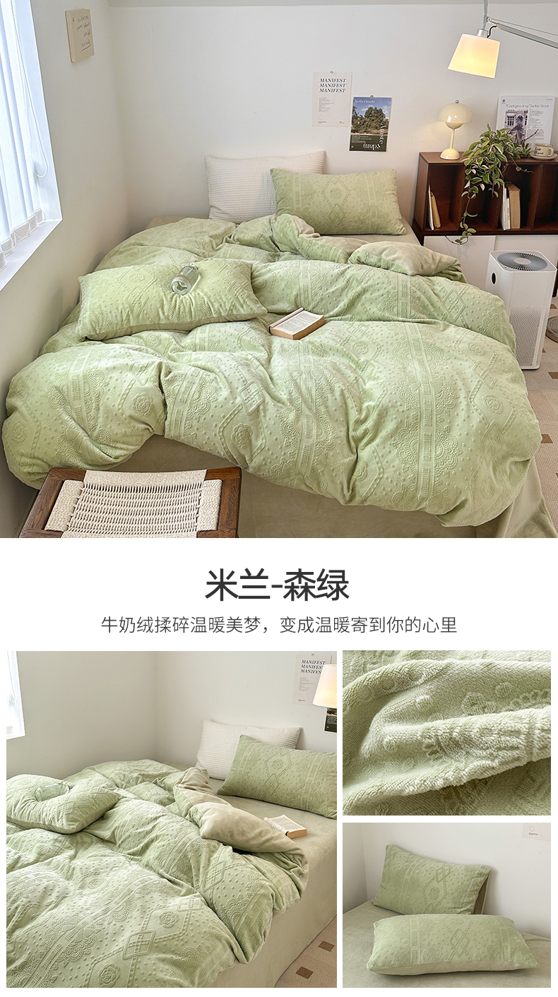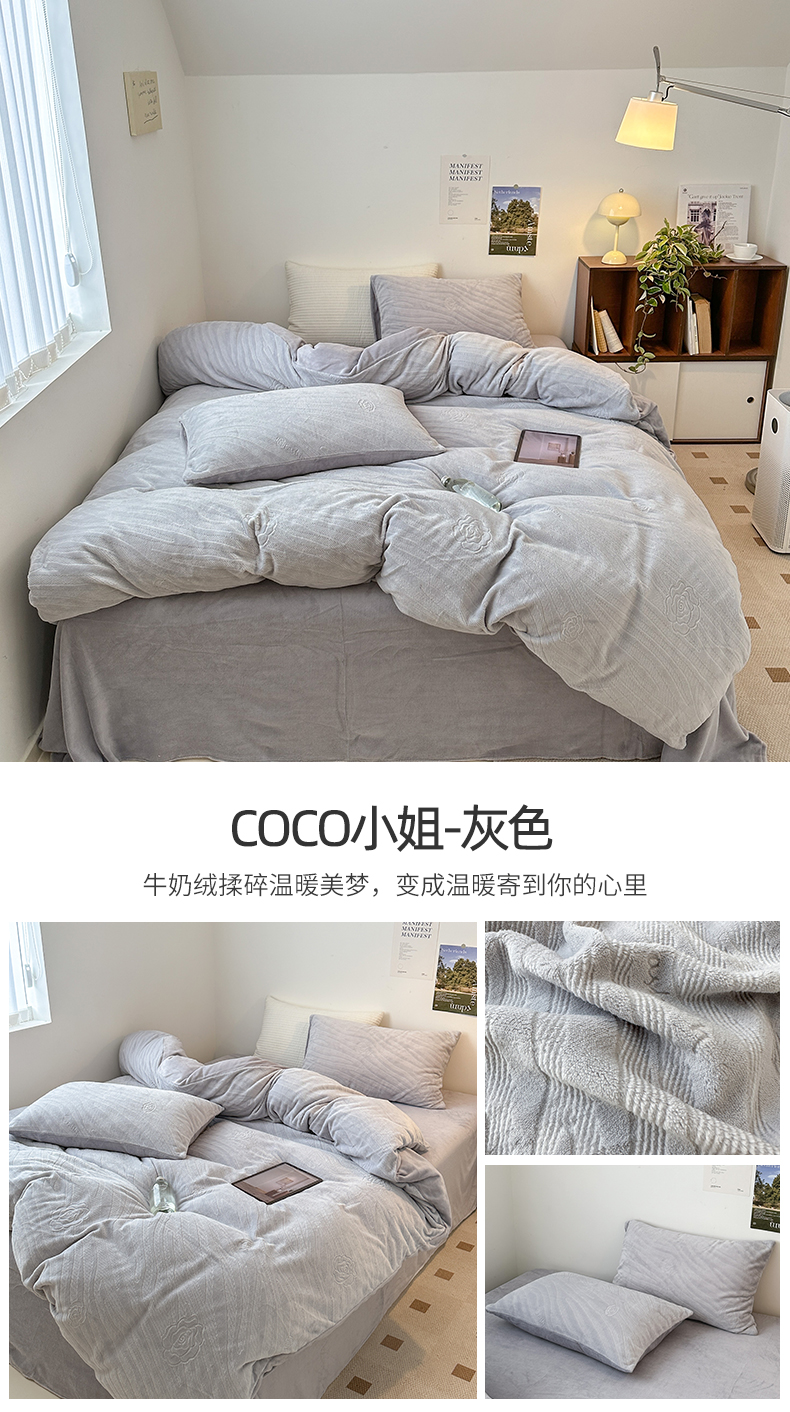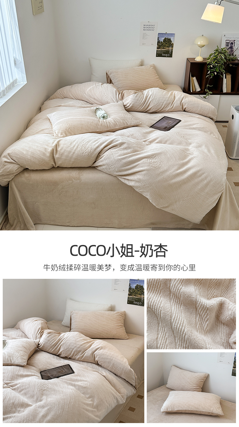 商品名称:(总)(买家秀爆款不断货)A类母婴级牛奶雕花绒四件套珊瑚绒小香风牛奶绒四件套雪花绒四件套雕花牛奶绒四件套白