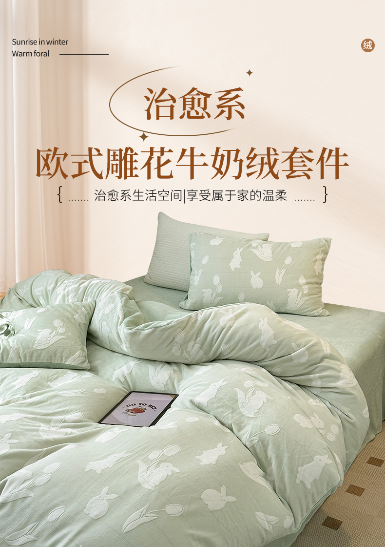 (总)(买家秀爆款不断货)A类母婴级牛奶雕花绒四件套珊瑚绒小香风牛奶绒四件套雪花绒四件套雕花牛奶绒四件套白