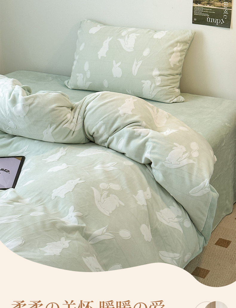 (总)(买家秀 爆款不断货)A类母婴级高克重獭兔绒四件套牛奶绒四件套牛奶绒四件套纯色韩版荷叶边兔毛绒四件套,泡泡粉玉,泡泡-滨海绿,泡泡-摩登卡,泡泡高级灰,泡泡卡其,泡泡奶白