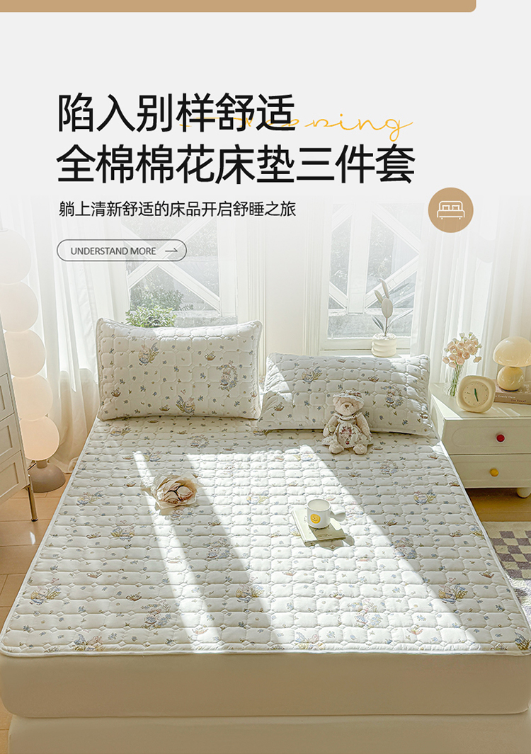 当前位置: 91家纺网 > 商品网购 > 床垫/床褥 > 普通床垫 > (买家秀 爆款花型 长期不断货)新款全棉棉花床垫床护垫三件套 春日小兔