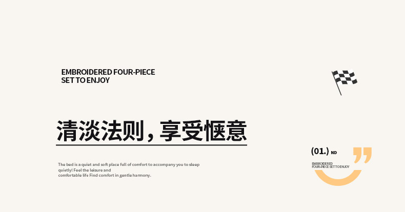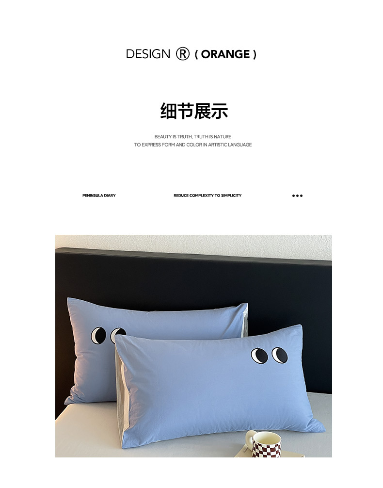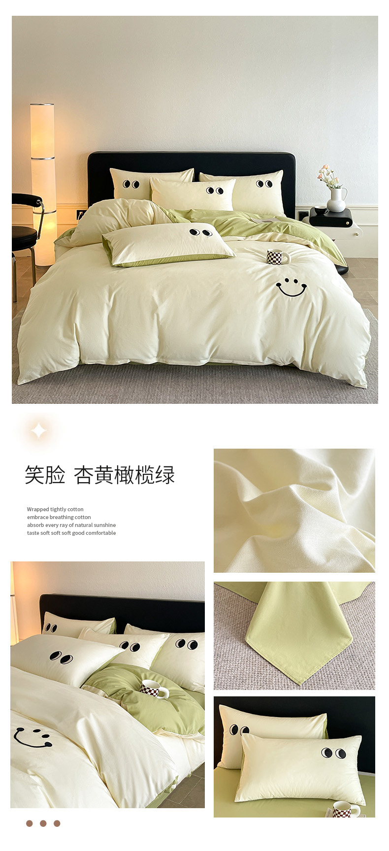 商品名称:(总)ab家纺 2025新款纯色水洗棉笑脸双拼绣花四件套