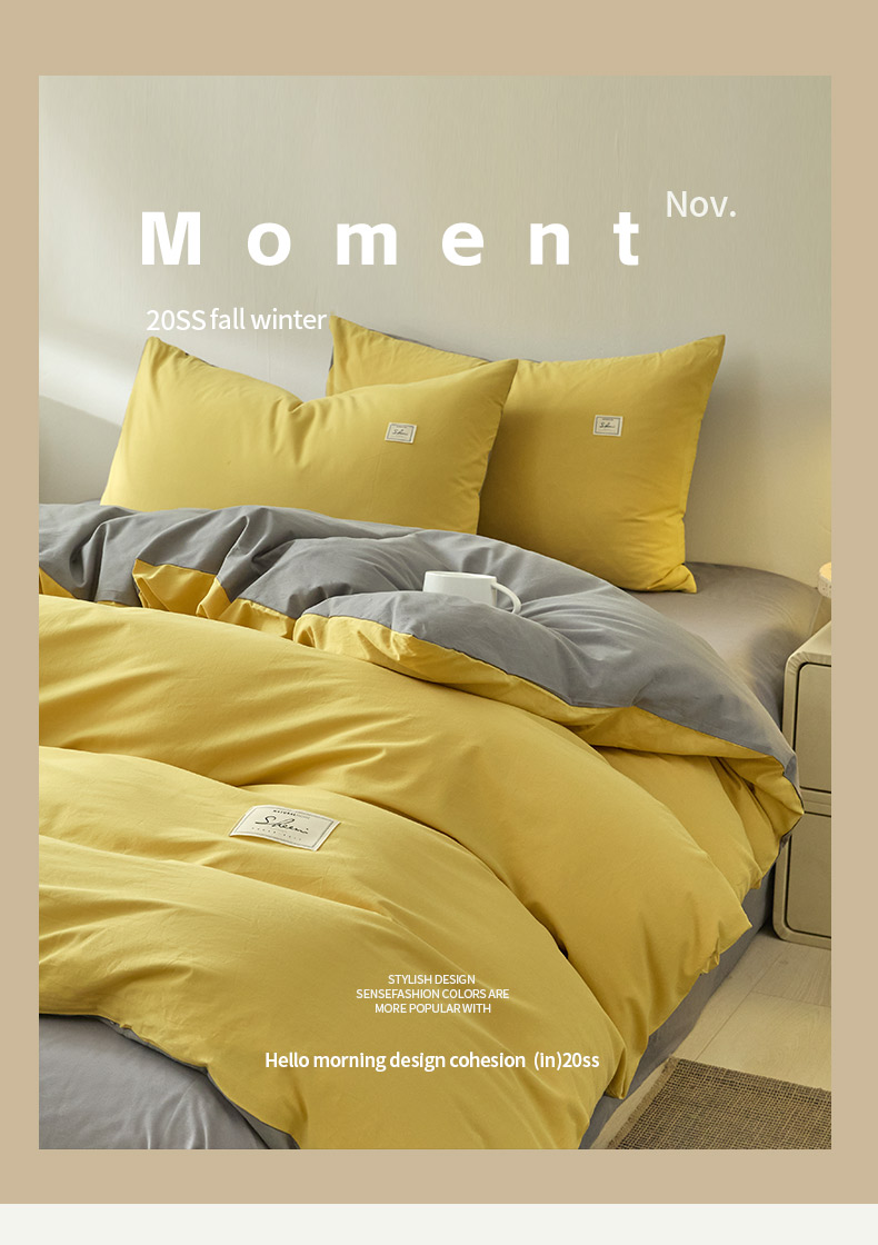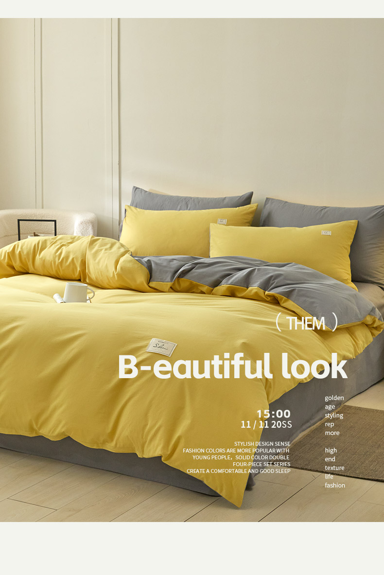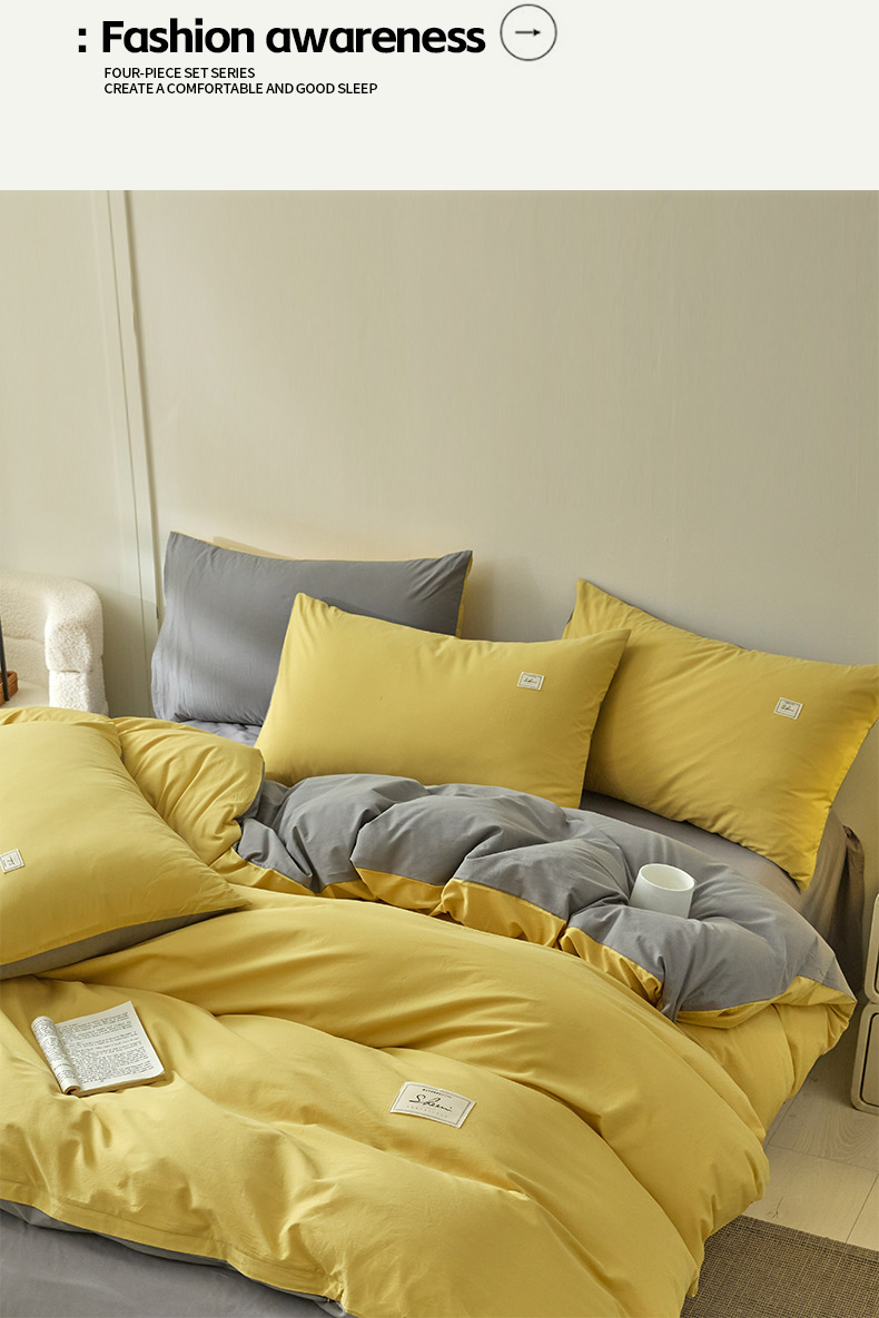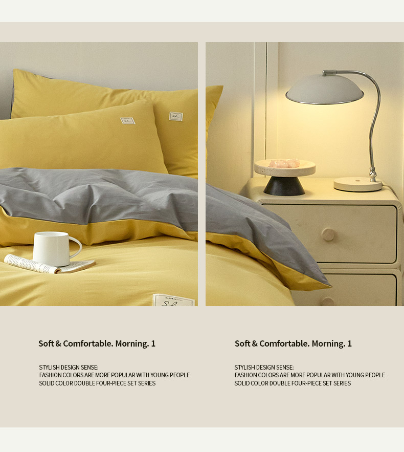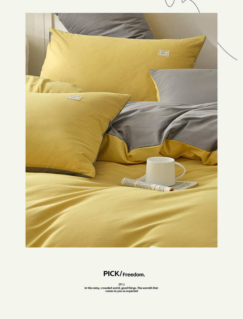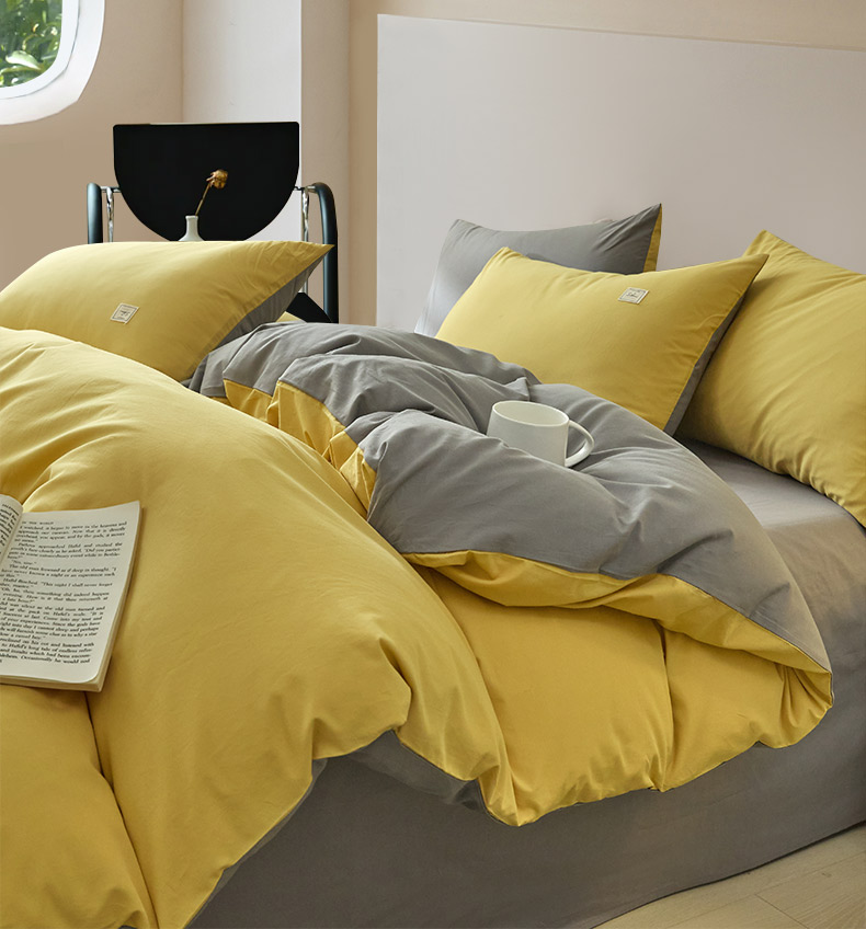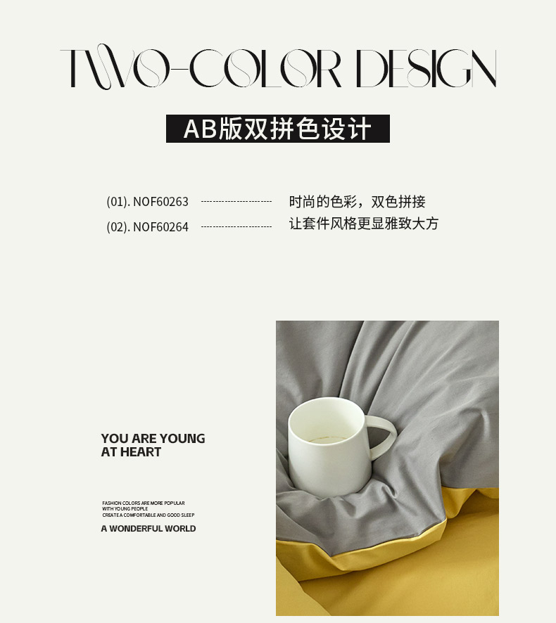 当前位置: 91家纺网 > 商品网购 > 床品套件 > 四件套 > 全棉普通四件套 > ab家纺 2025新款色织全棉40支水洗棉四件套--双拼第二组 姜黄深灰