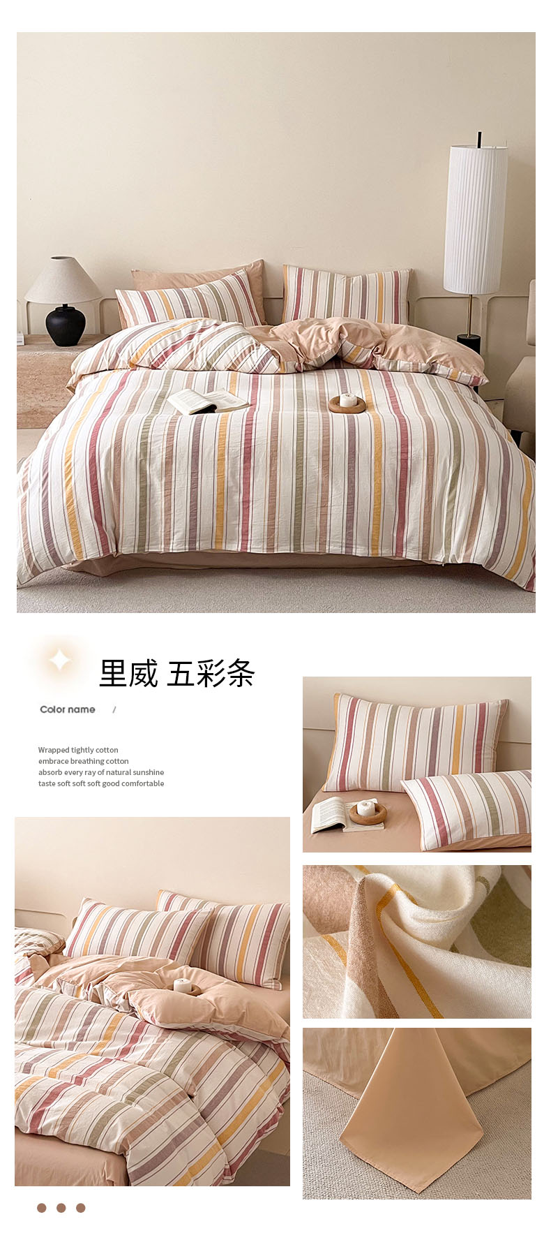 当前位置: 91家纺网 > 商品网购 > 床品套件 > 四件套 > 全棉普通四件套 > ab家纺 2024新款色织全棉40支水洗棉条纹四件套 里威 五彩条
