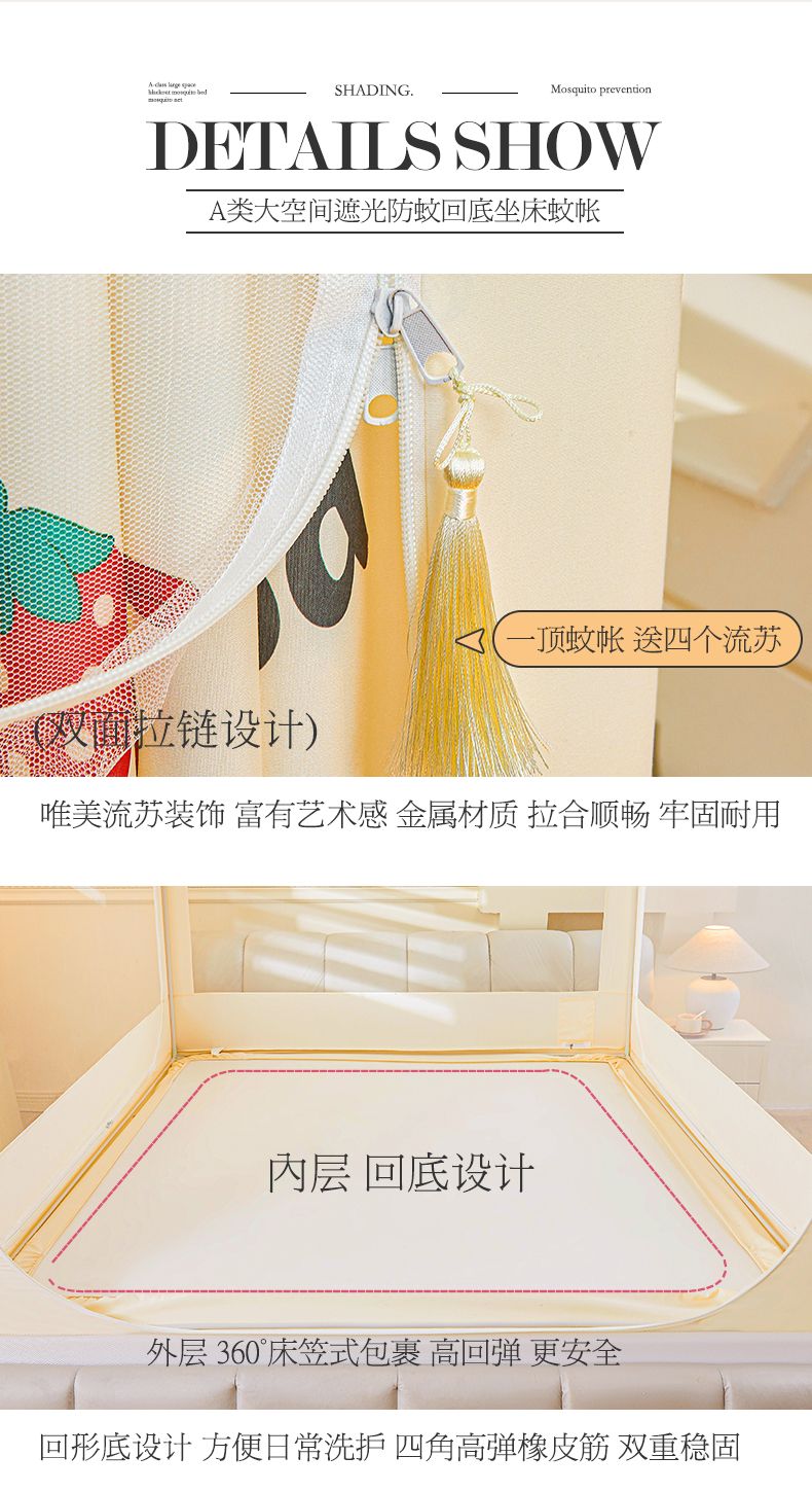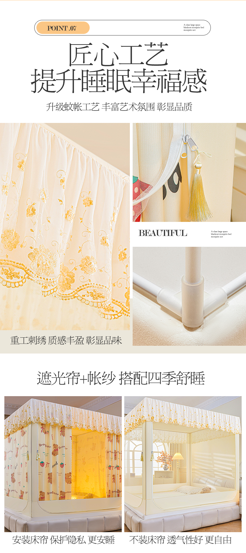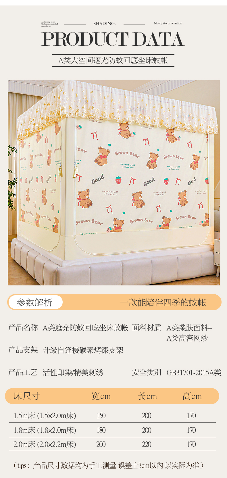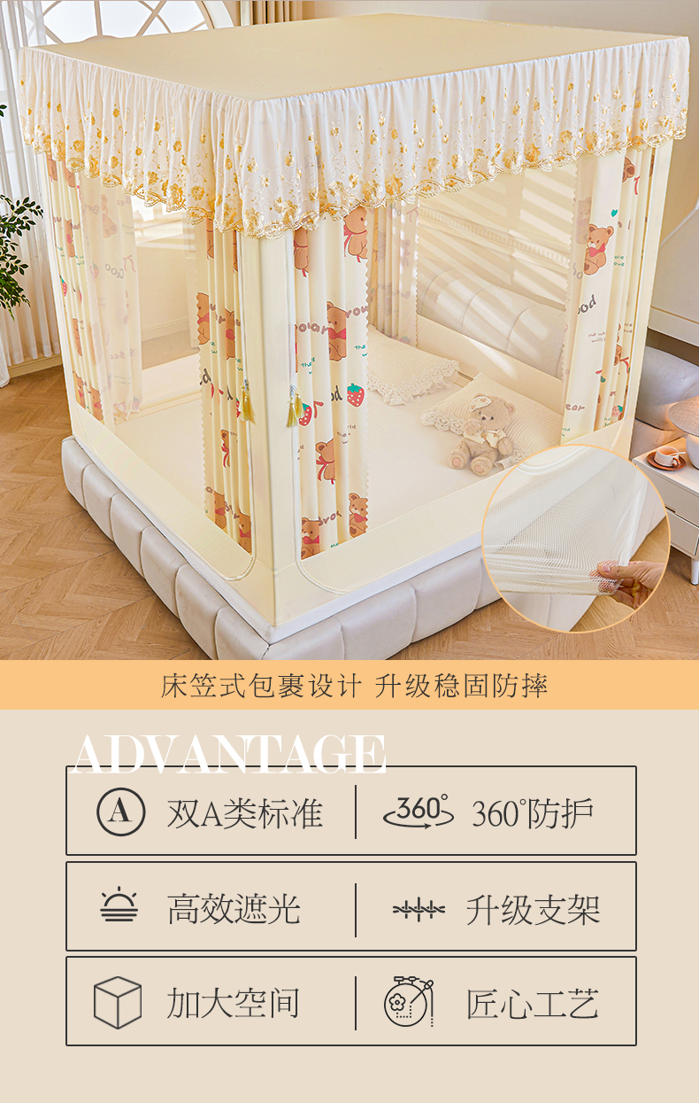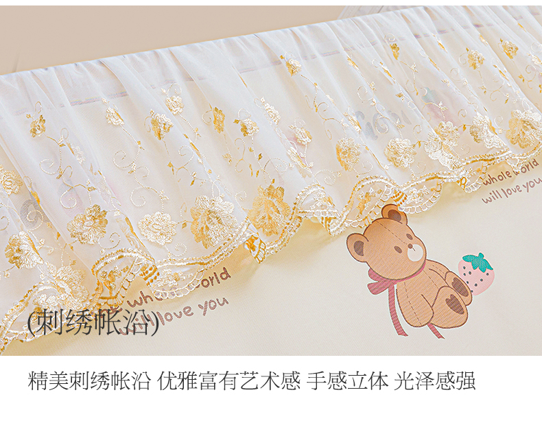 当前位置: 91家纺网 > 商品网购 > 床上用品 > 蚊帐 > 坐床式蚊帐 > 艾晶美家纺有限公司 2025新款坐式刺绣床帘蚊帐 布丁熊