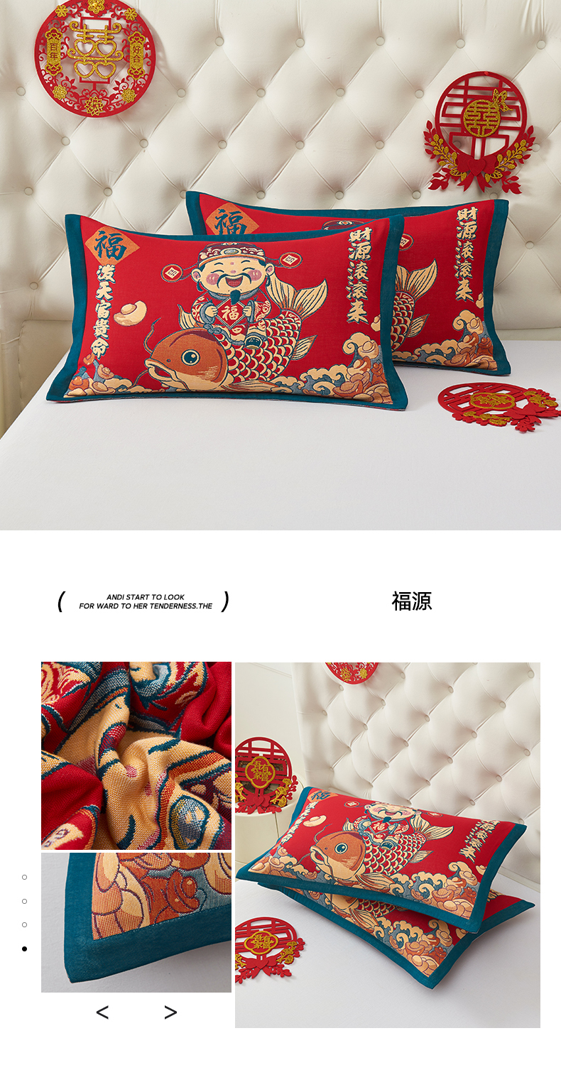 商品名称:悦然毛巾被 2025新款全棉色织提花大红枕套 福源
