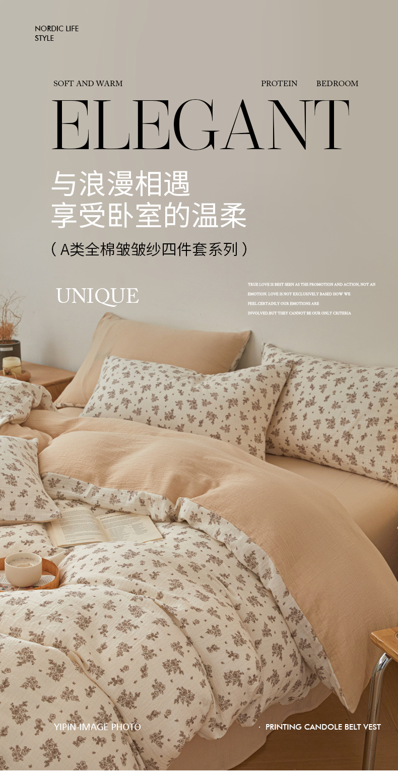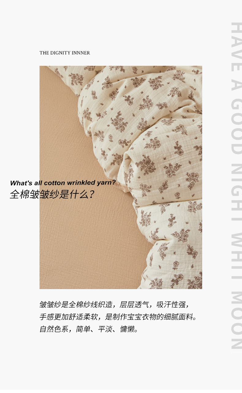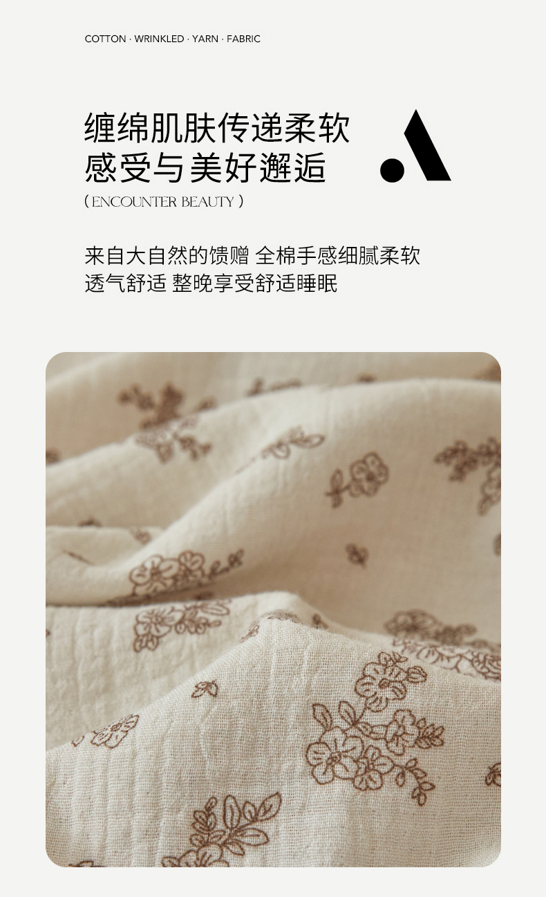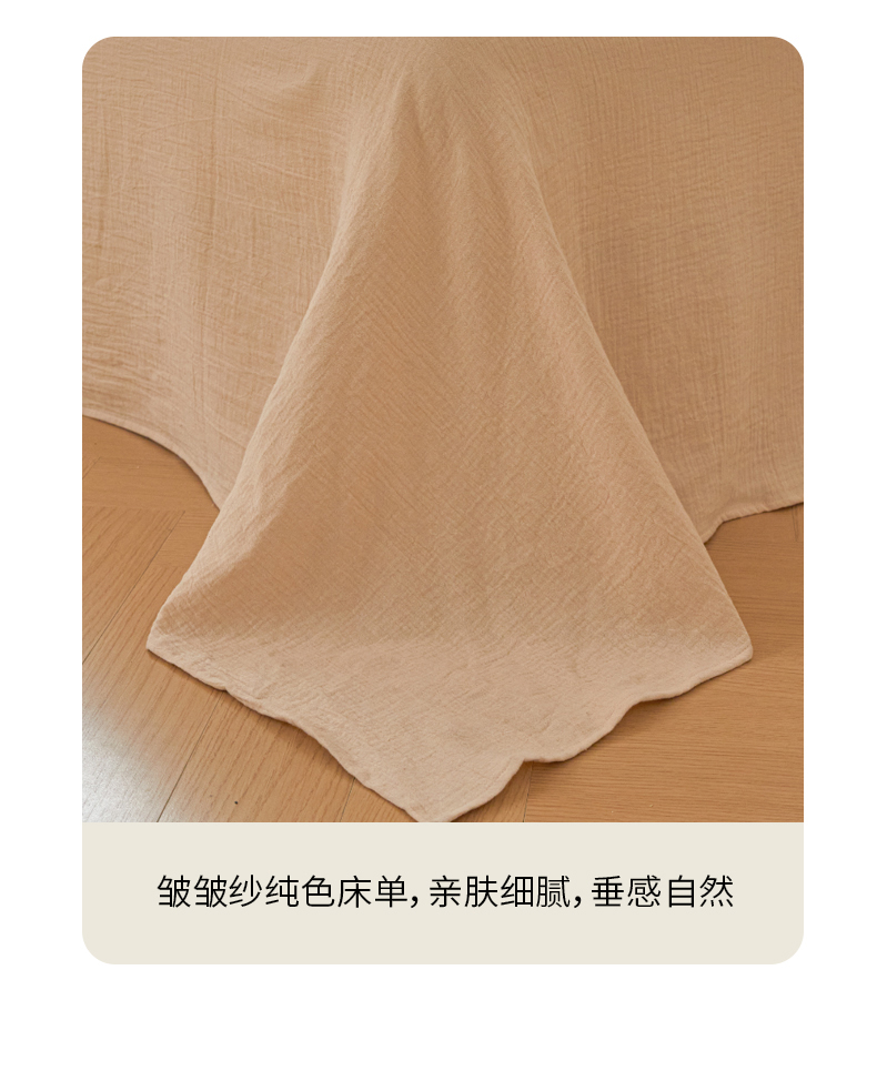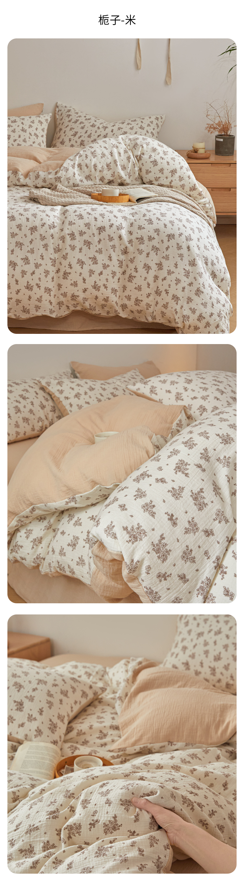 商品名称:618家纺 2025新款A类母婴级全棉三层纱皱皱纱纯棉四件套 栀子米