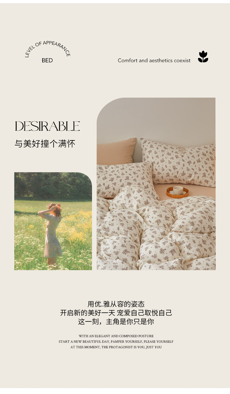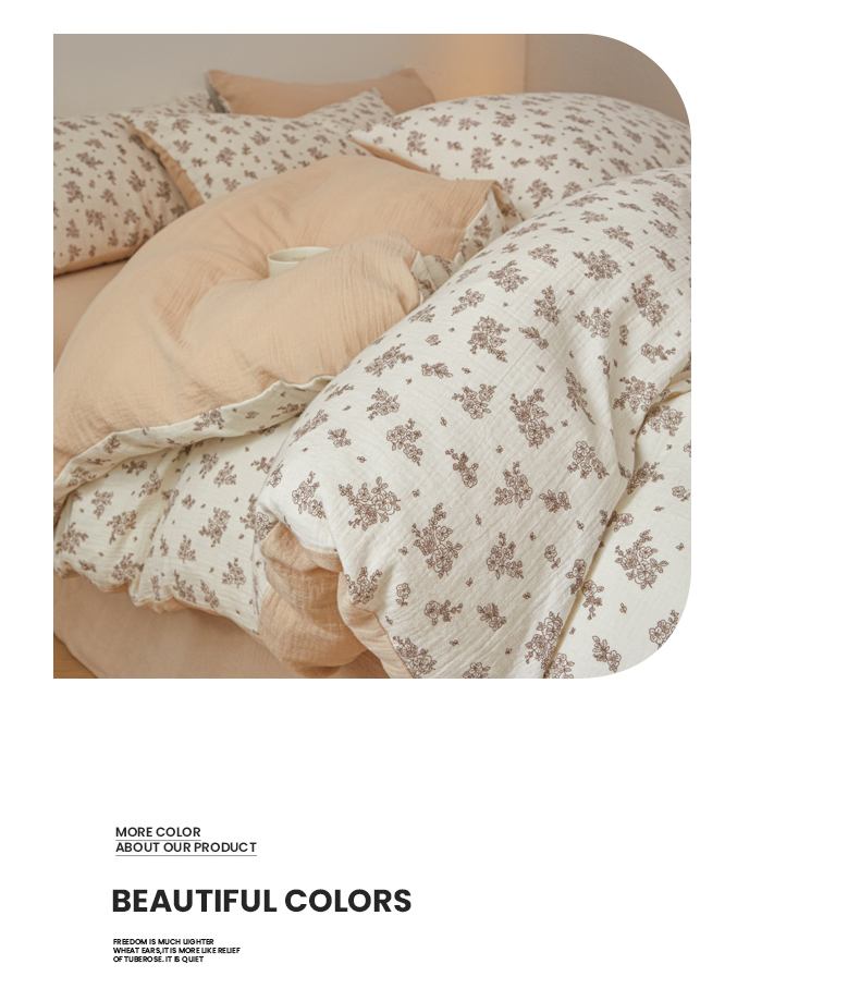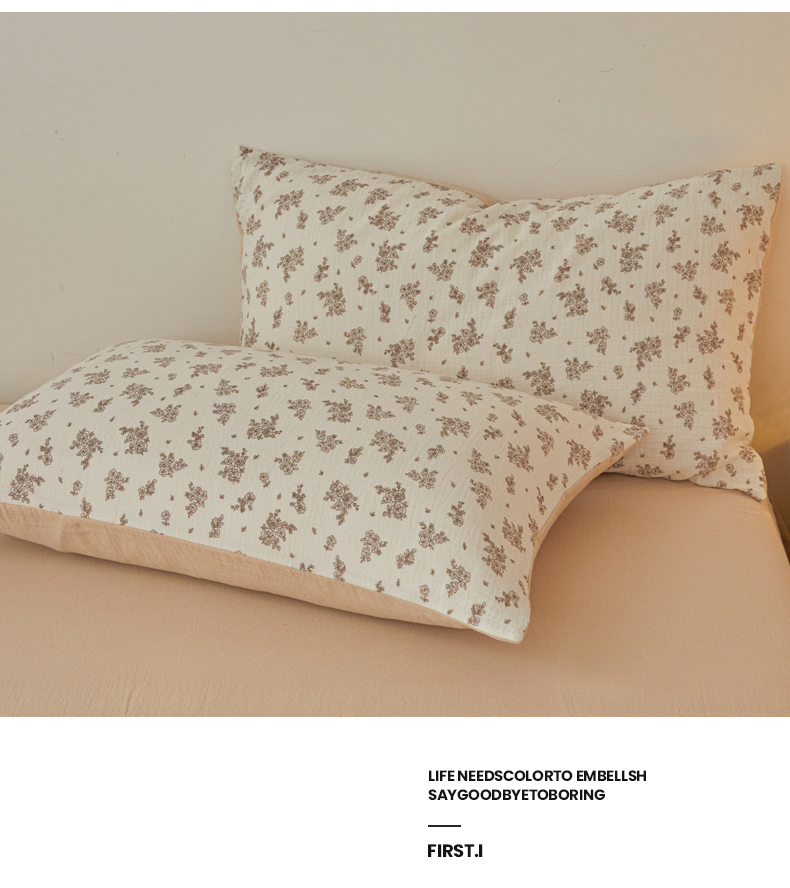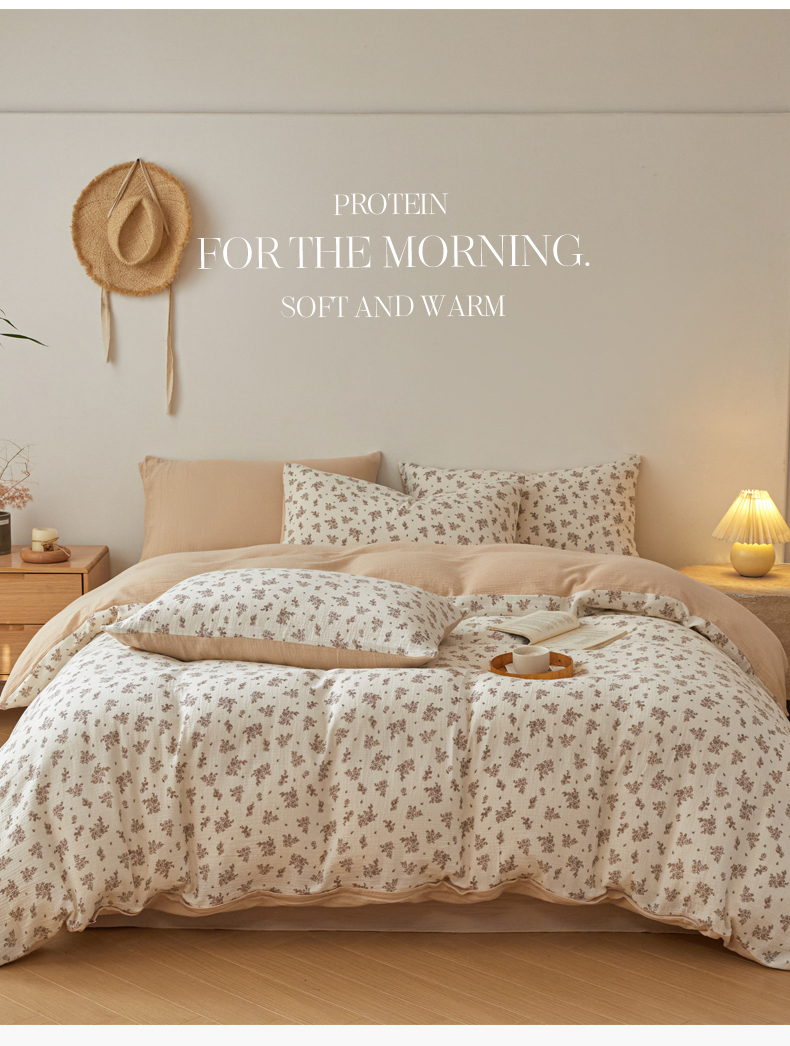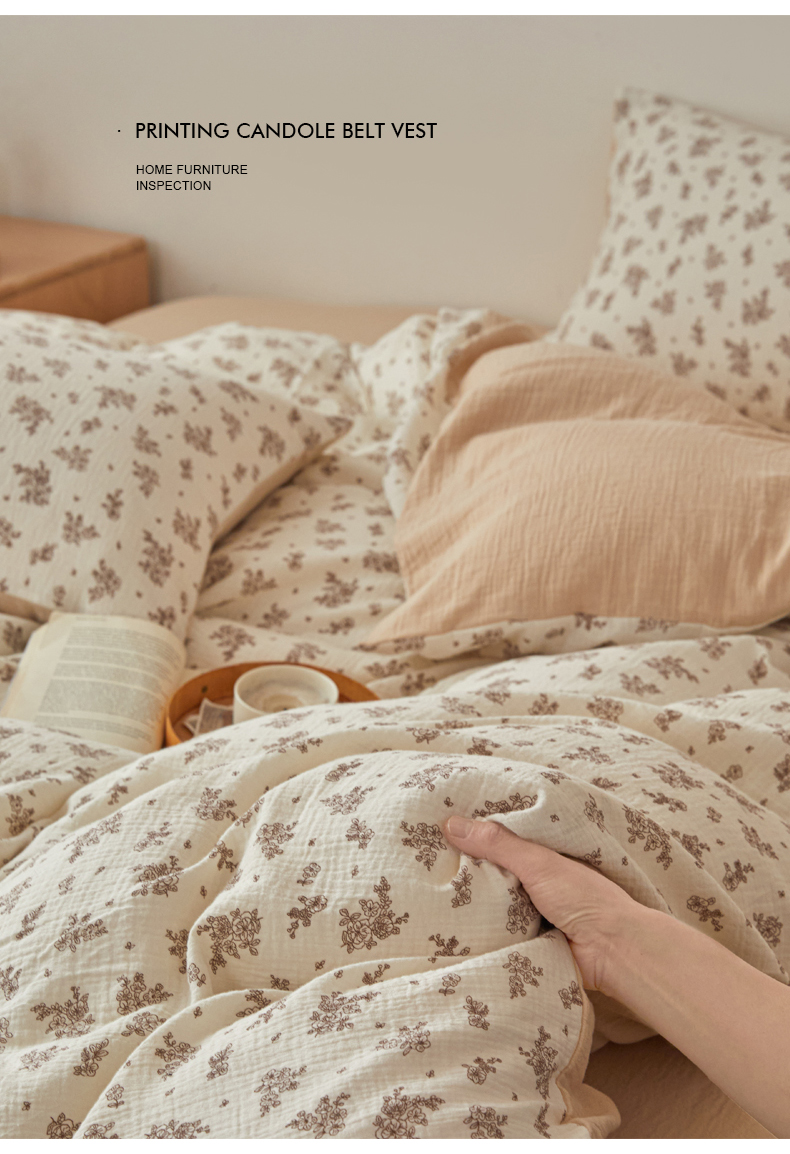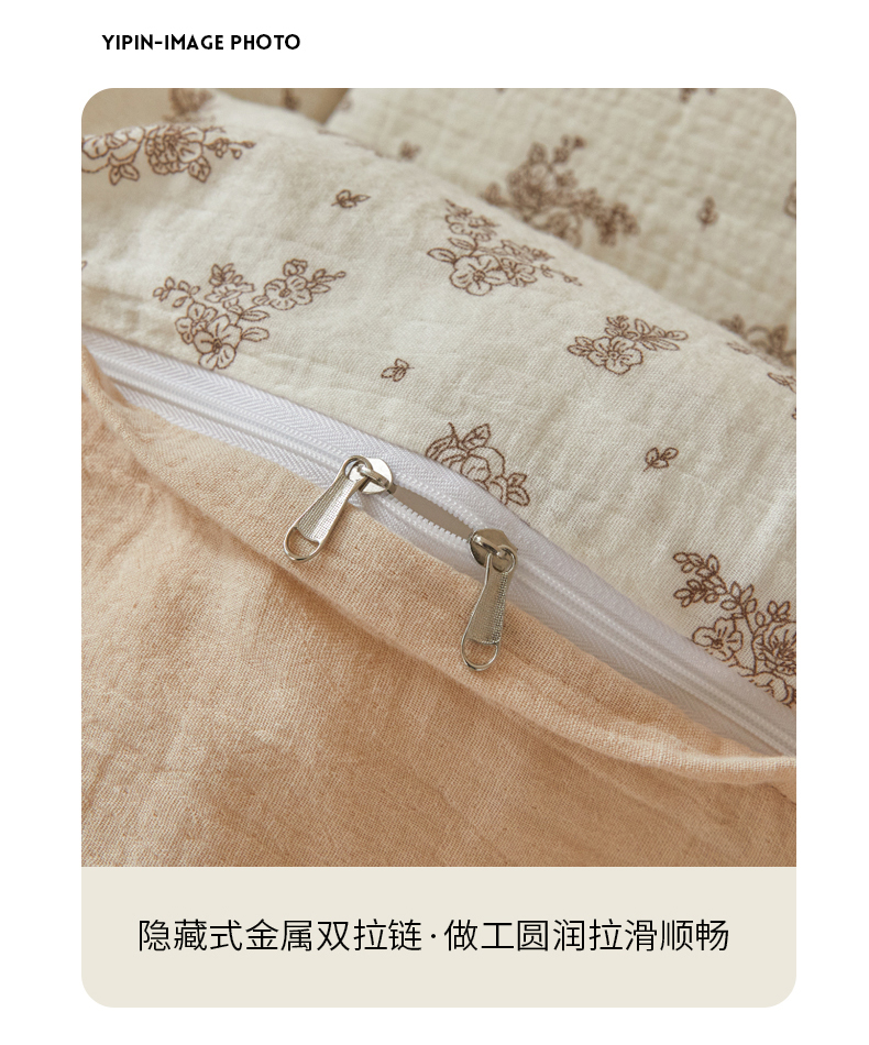 商品名称:618家纺 2025新款A类母婴级全棉三层纱皱皱纱纯棉四件套 栀子米