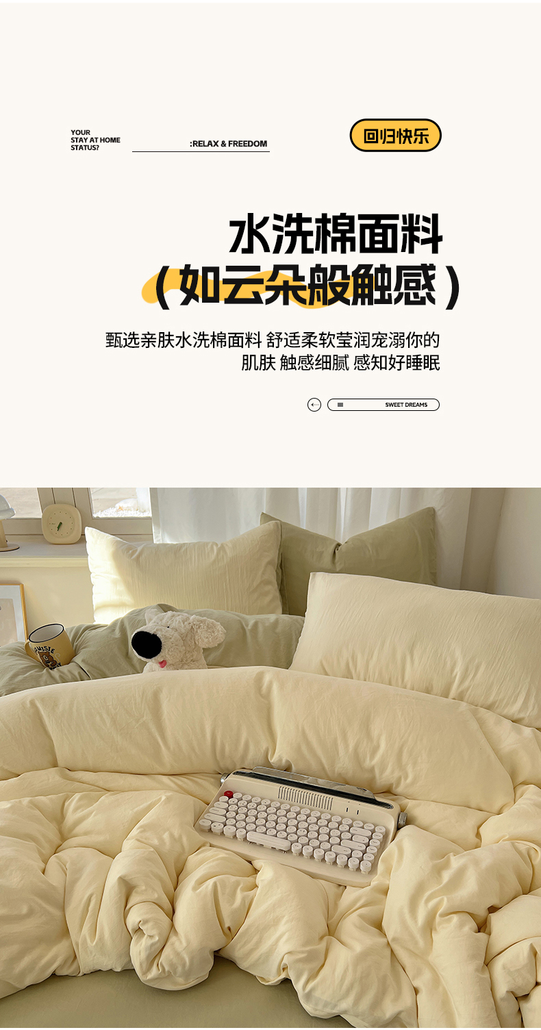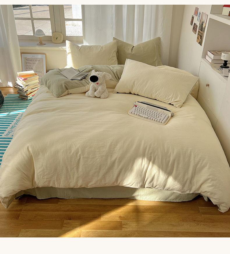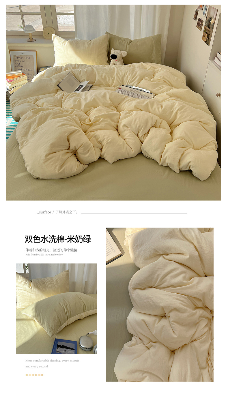 当前位置: 91家纺网 > 商品网购 > 床品套件 > 四件套 > 水洗棉四件套 > 阿曼达 2025新款ins博主风纯色混搭双色水洗m四件套 双色水洗m-米奶绿