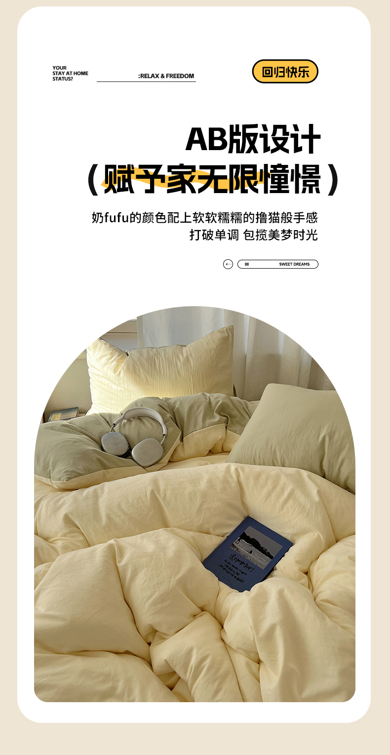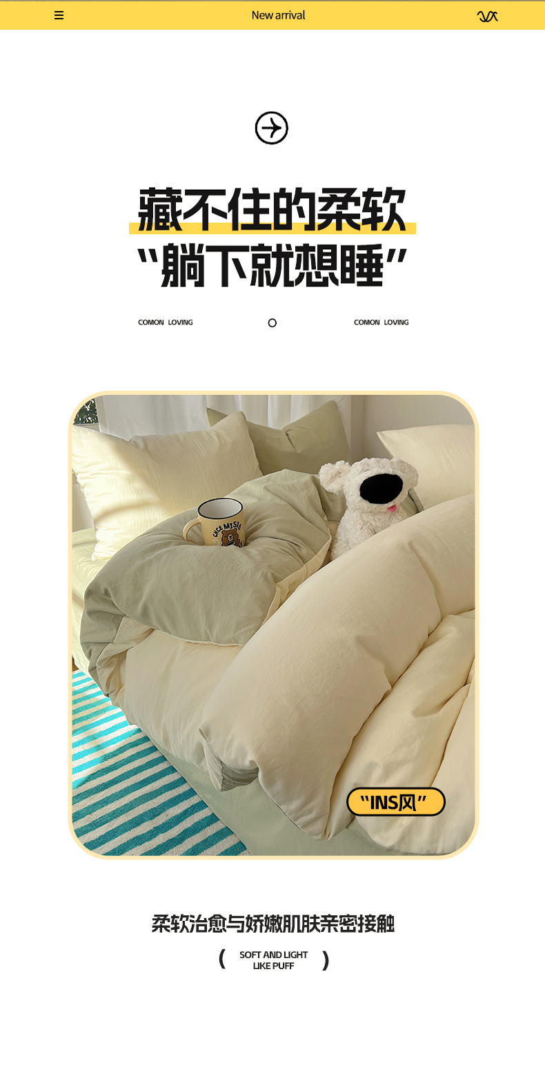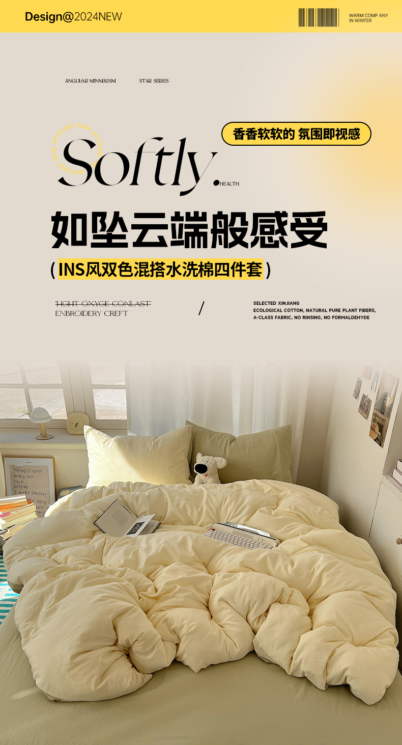当前位置: 91家纺网 > 商品网购 > 床品套件 > 四件套 > 水洗棉四件套 > 阿曼达 2025新款ins博主风纯色混搭双色水洗m四件套 双色水洗m-米奶绿