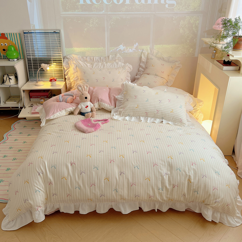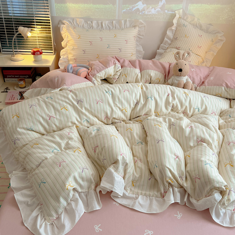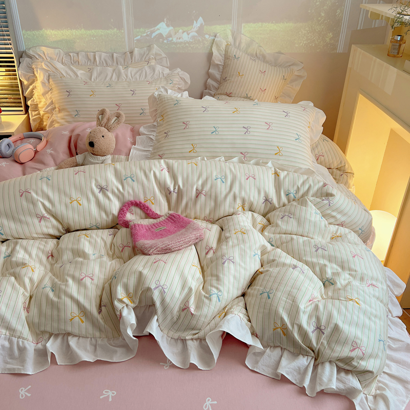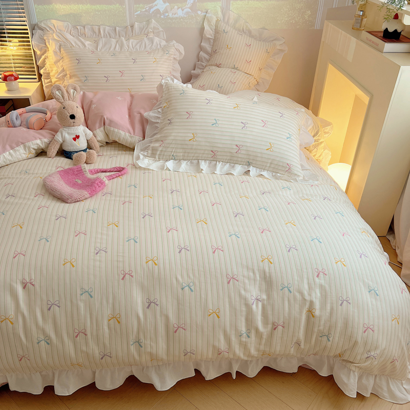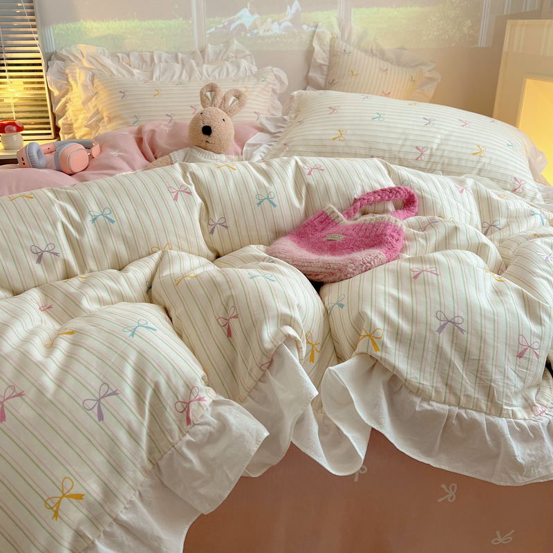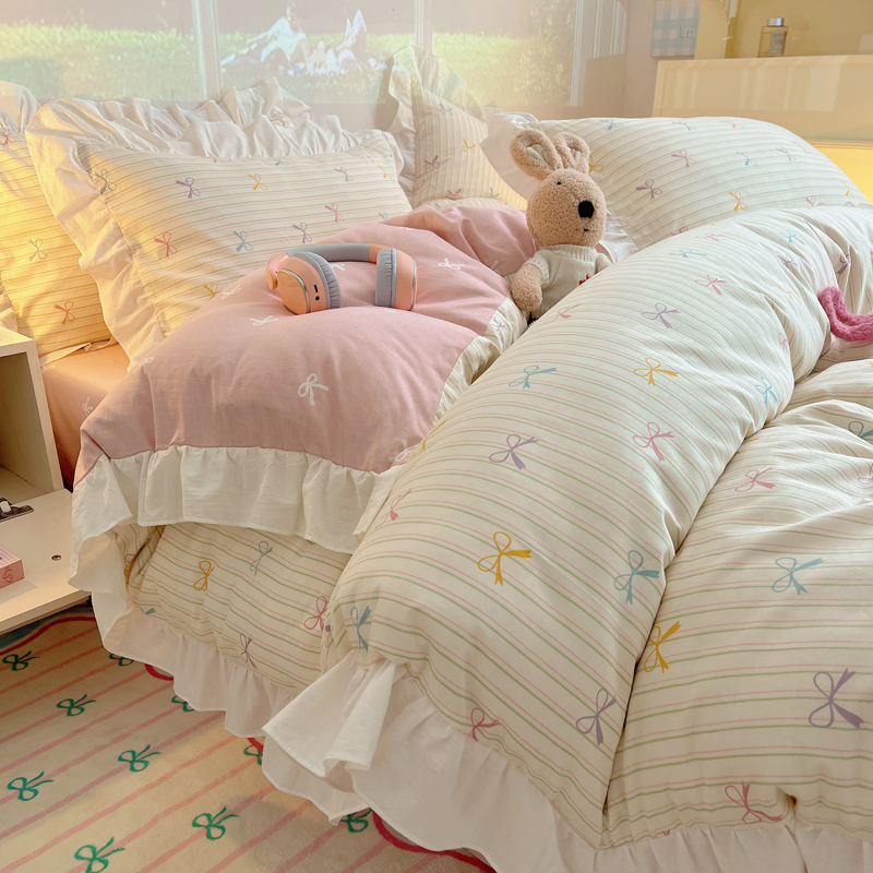 桃喜 2025春夏新款全棉卡通花边13372四件套 五彩蝶