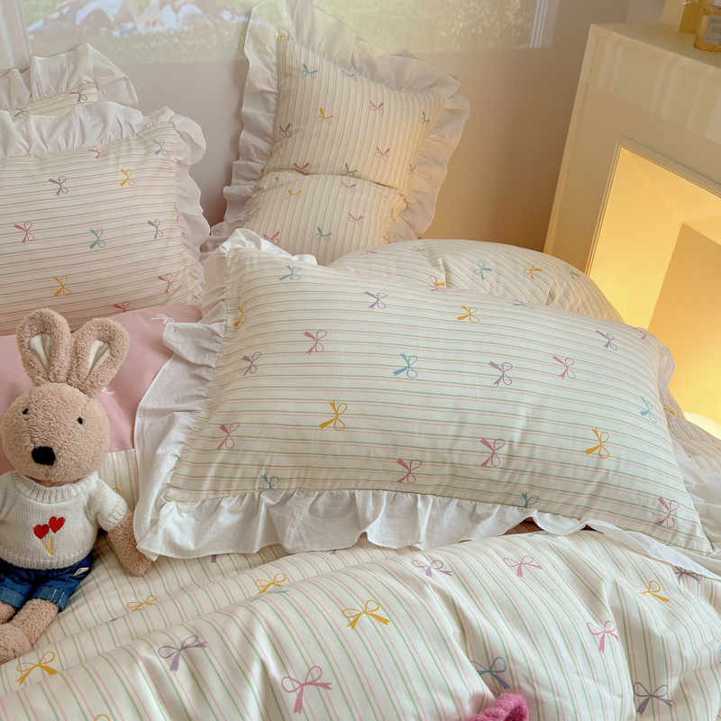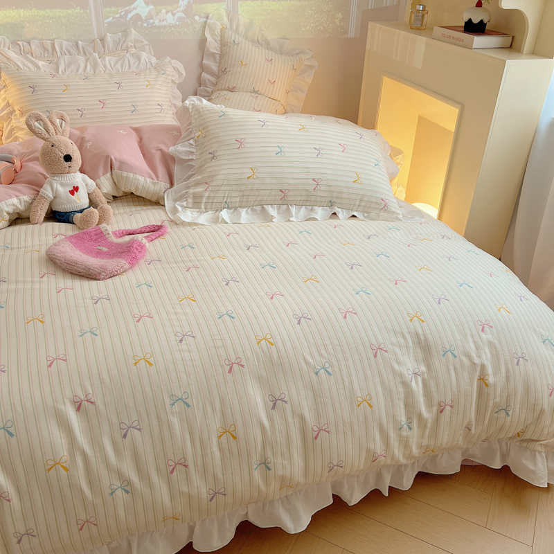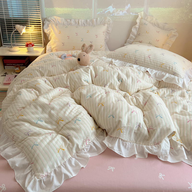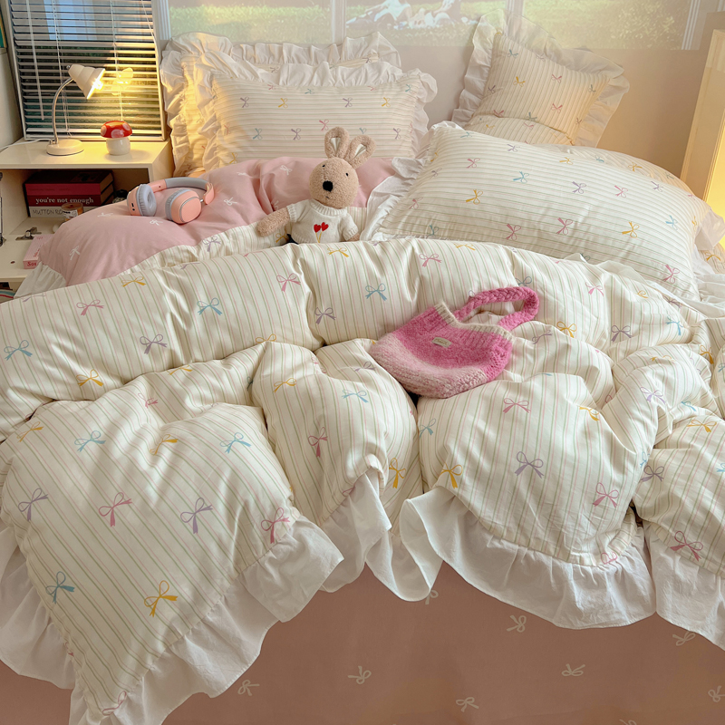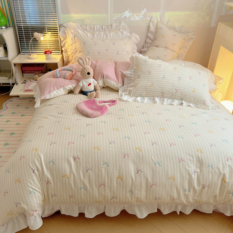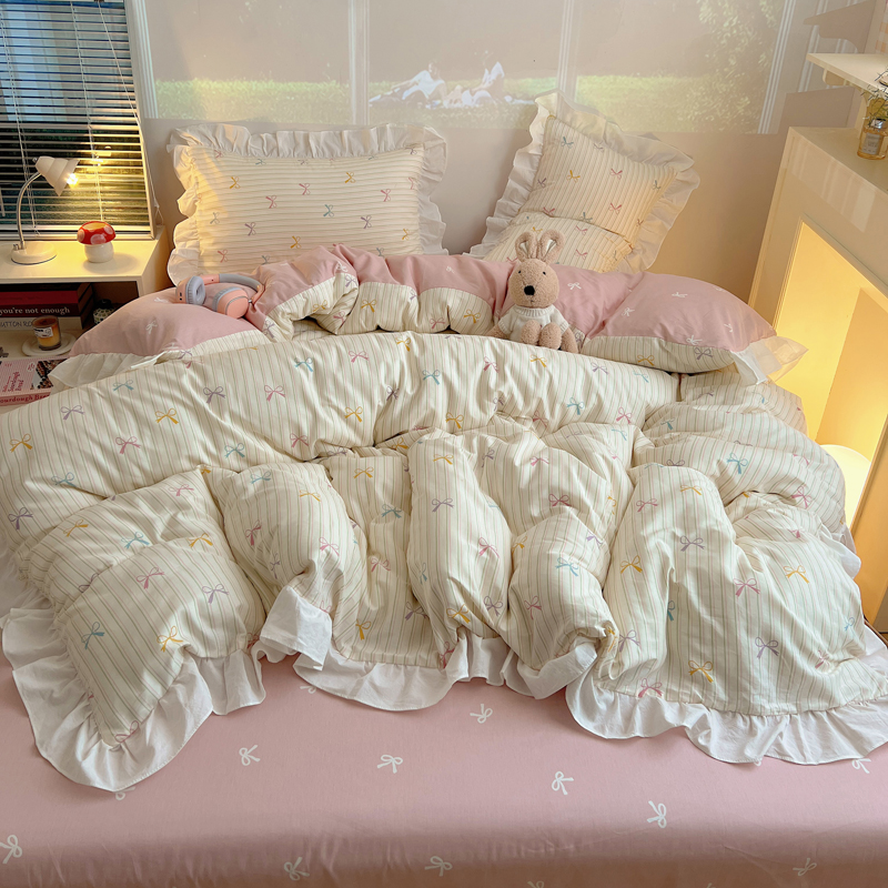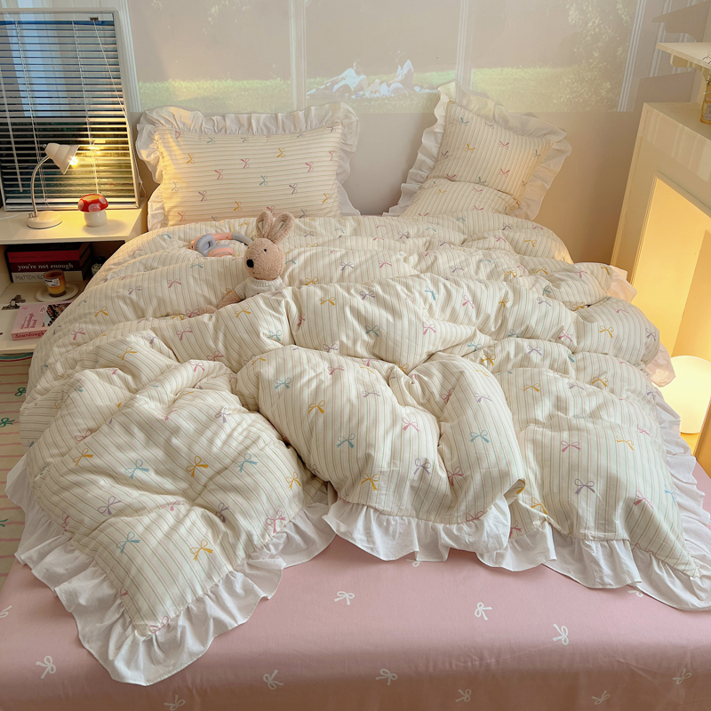 桃喜 2025春夏新款全棉卡通花边13372四件套 五彩蝶