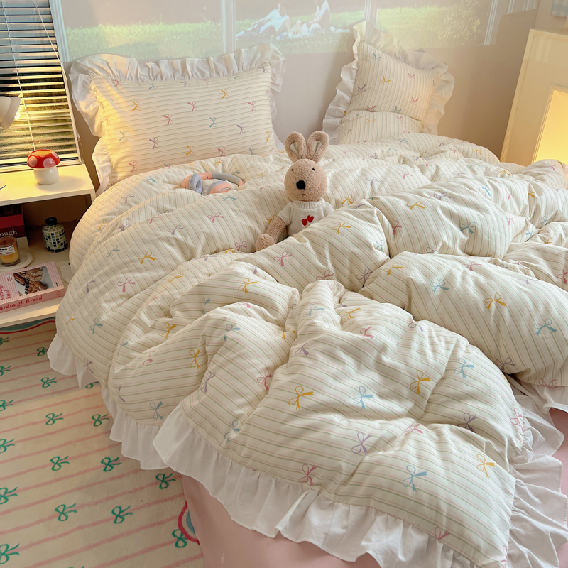 商品名称:桃喜 2025春夏新款全棉卡通花边13372四件套 五彩蝶