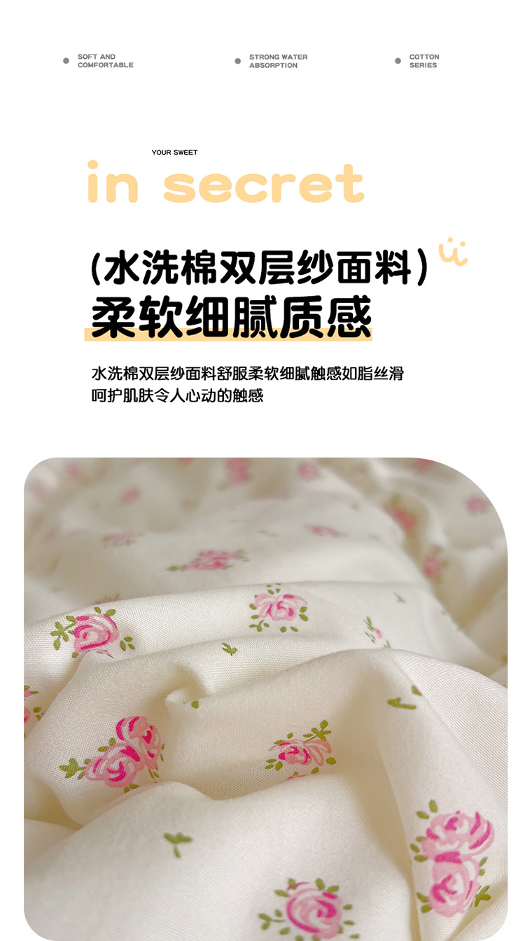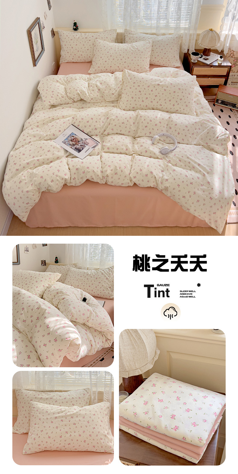 当前位置: 91家纺网 > 商品网购 > 床品套件 > 四件套 > 其它四件套 > 夜笙2025新款A类水洗棉双层纱印花四件套 桃之夭夭
