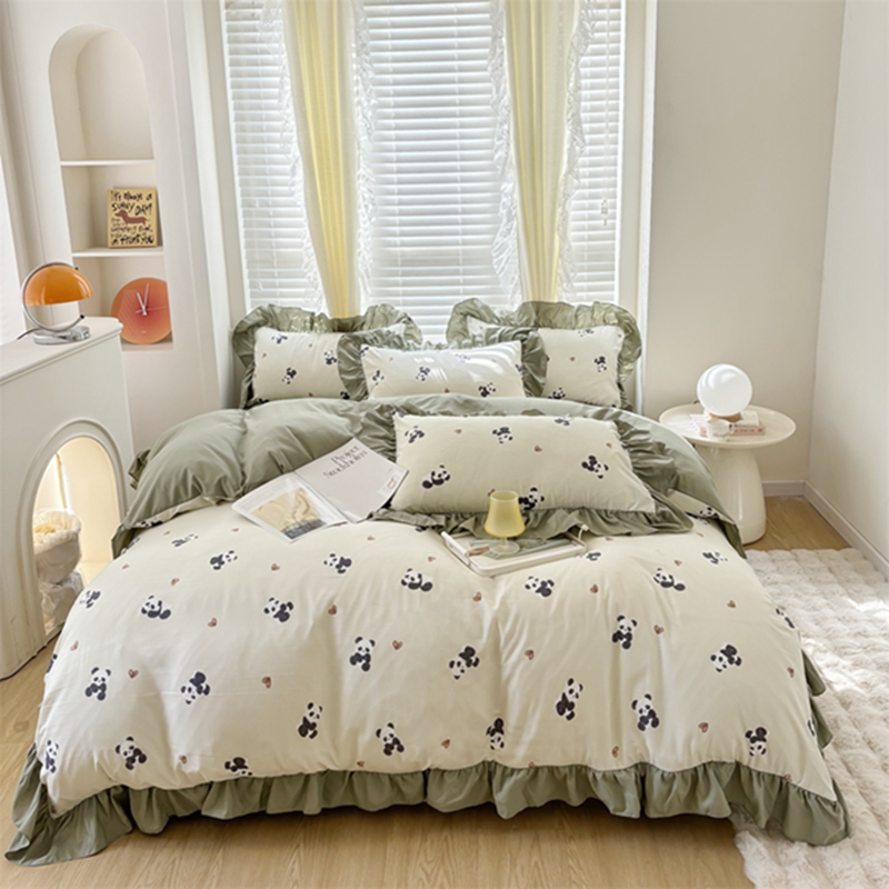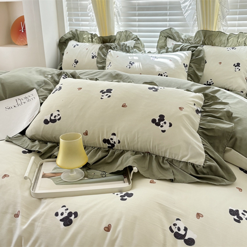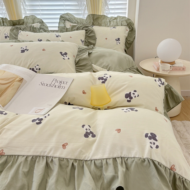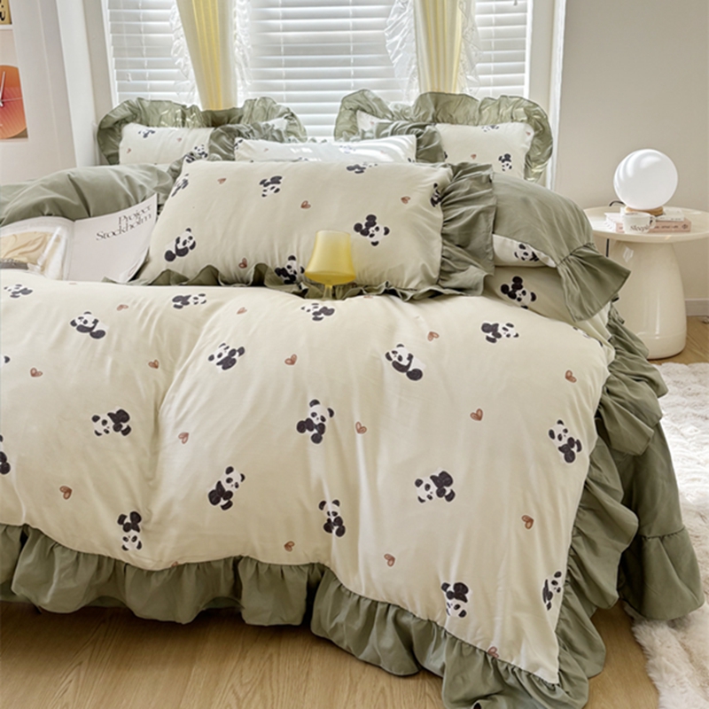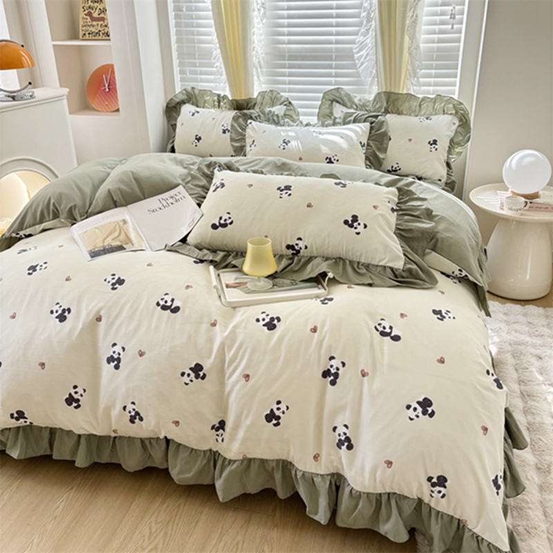 仟网汇 2025新款韩版糯糯棉花边四件套田园法式 熊猫团团