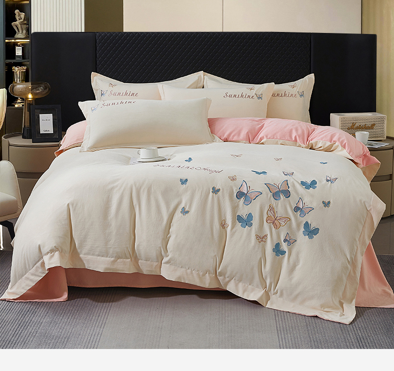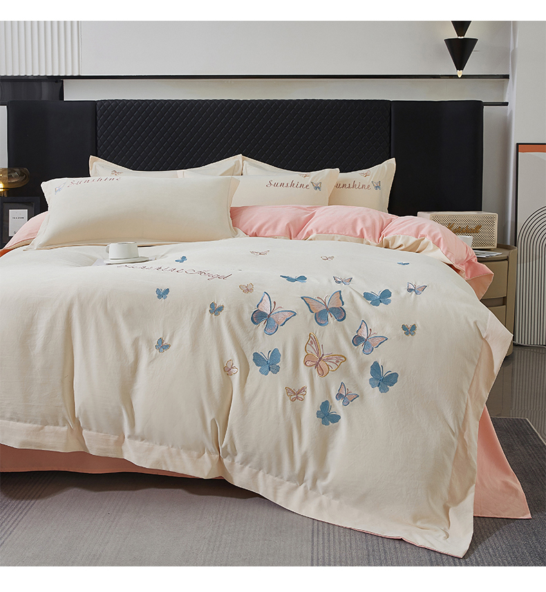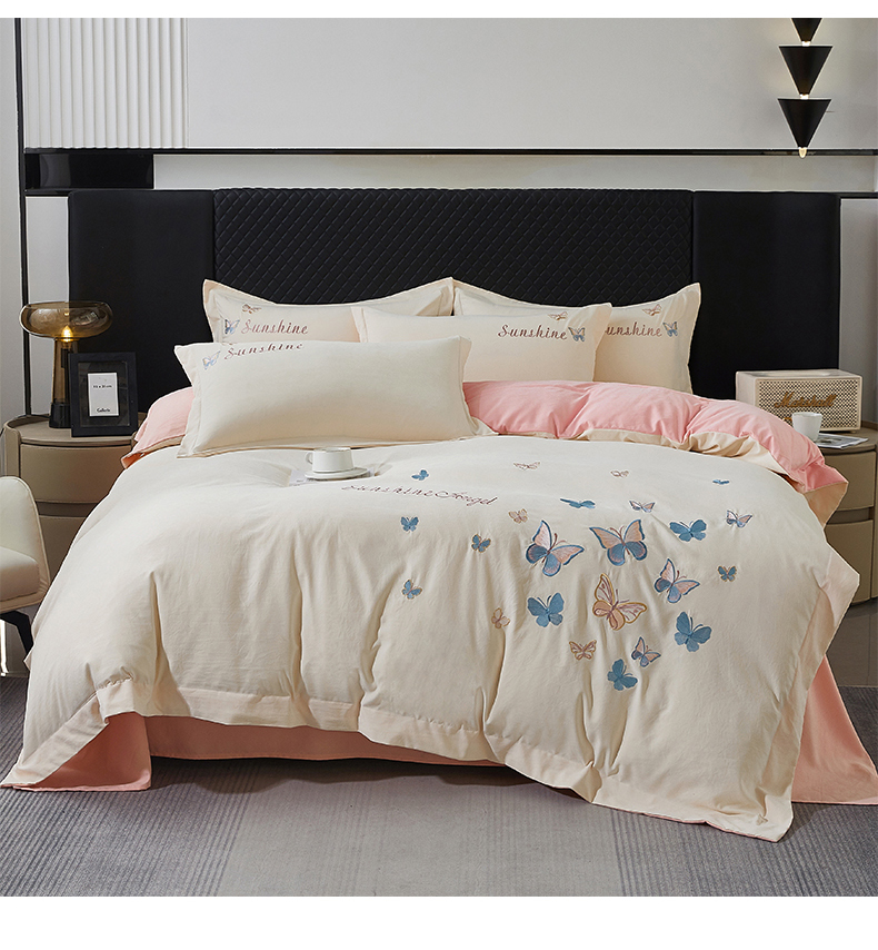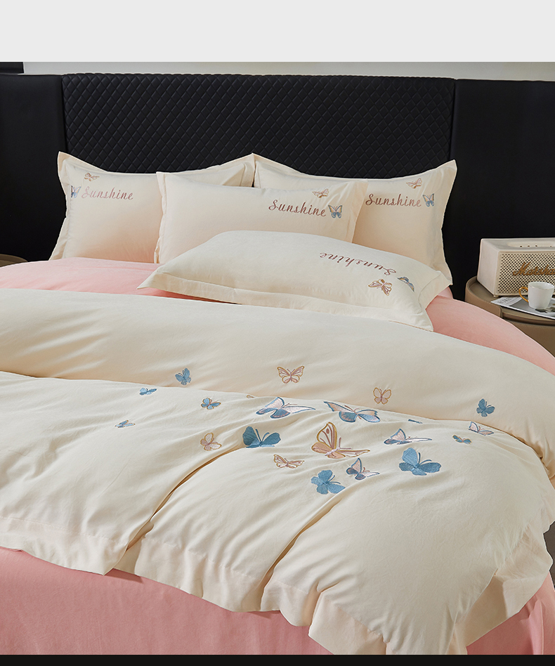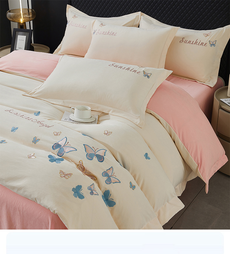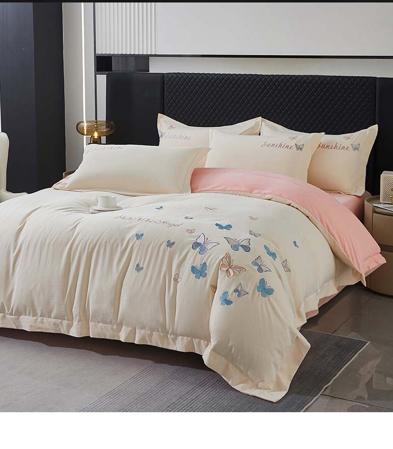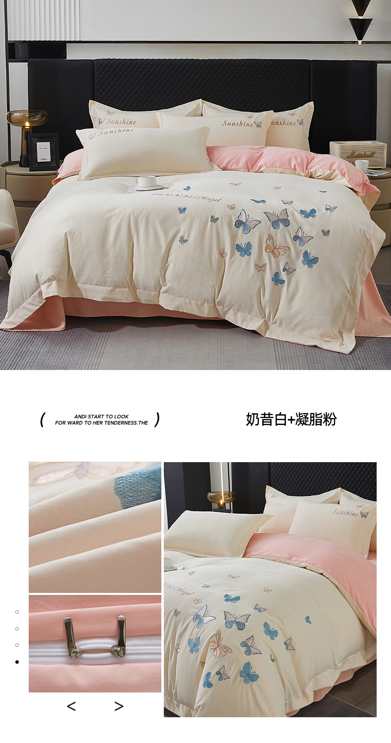 当前位置: 91家纺网 > 商品网购 > 床品套件 > 四件套 > 牛奶绒四件套 > 莱越家纺 2025新款轻奢刺绣蝴蝶牛奶蛋白棉四件套高档纯色亲肤棉双拼床单被套床笠式 蝴蝶-奶昔白+凝脂粉