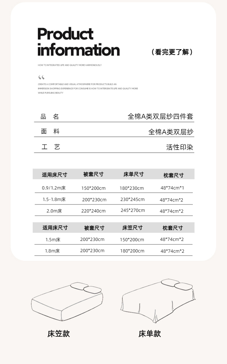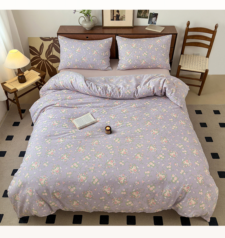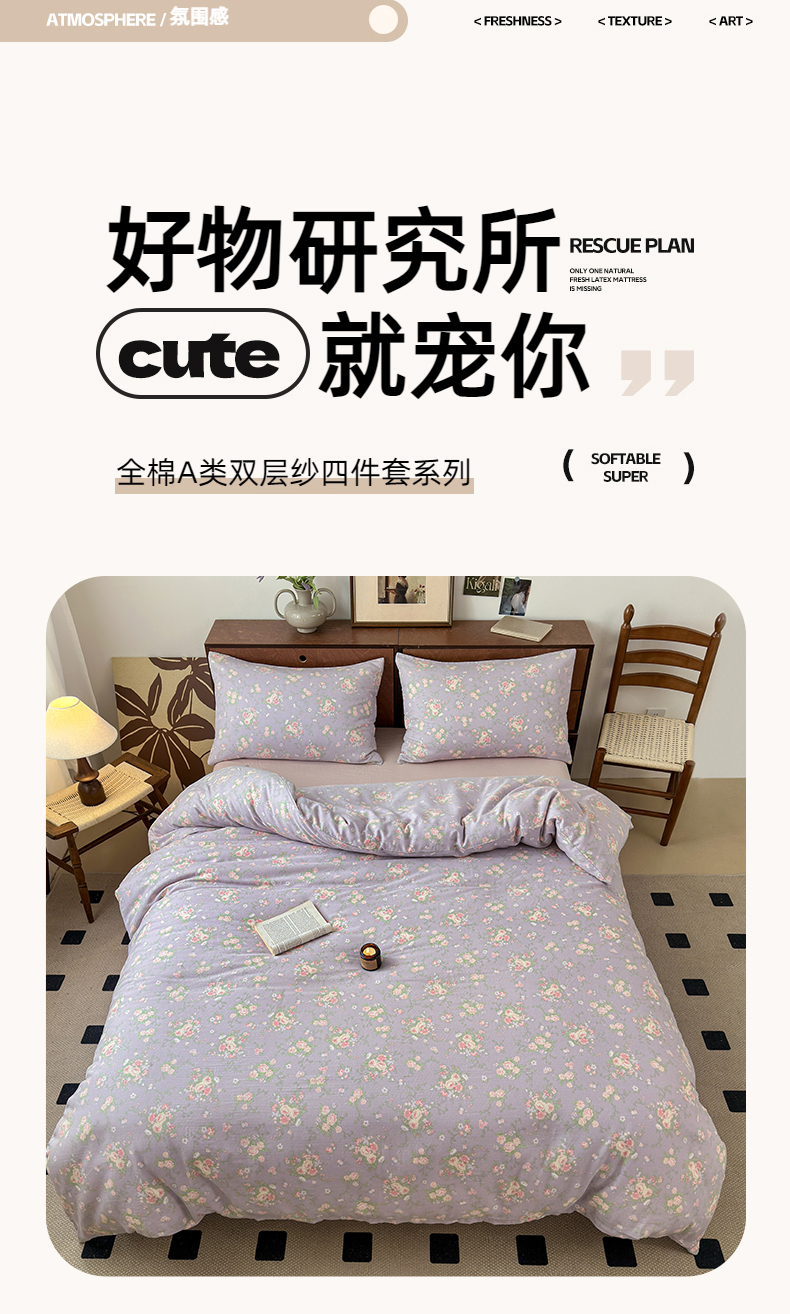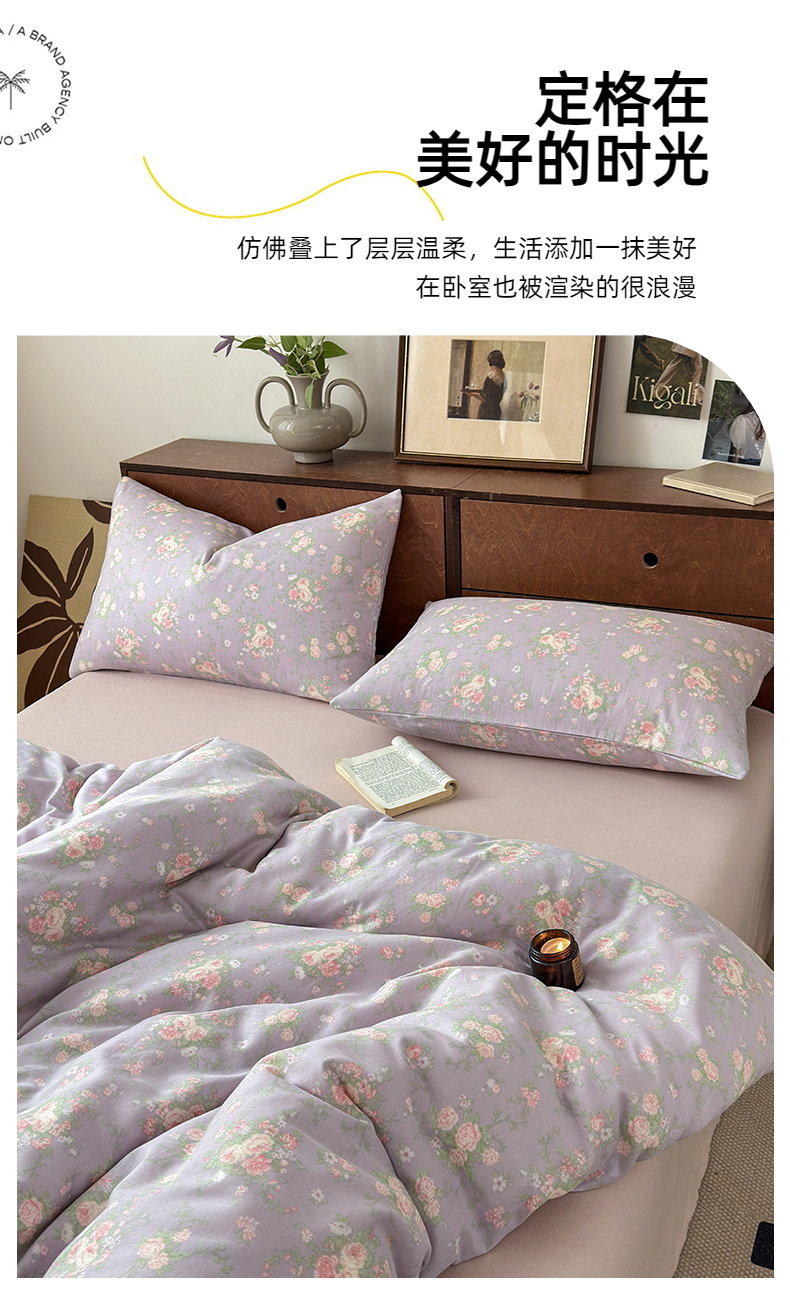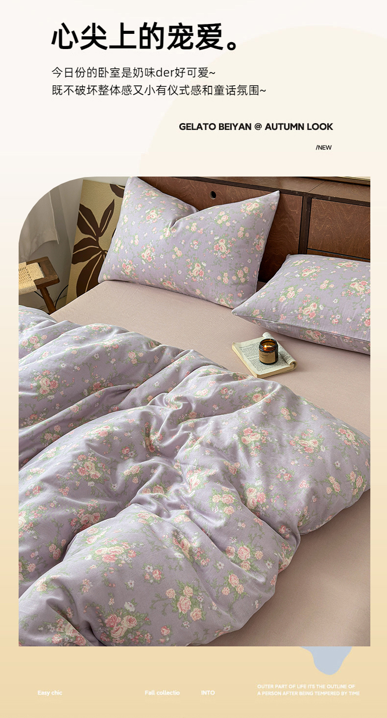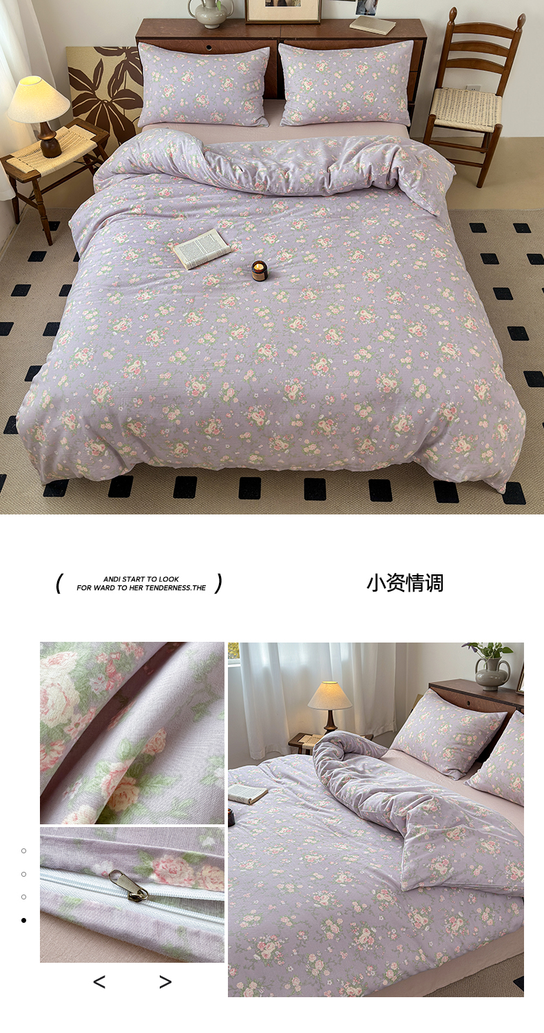 商品名称:2025新款全棉A类双层纱四件套系列-叠拍 小资情调
