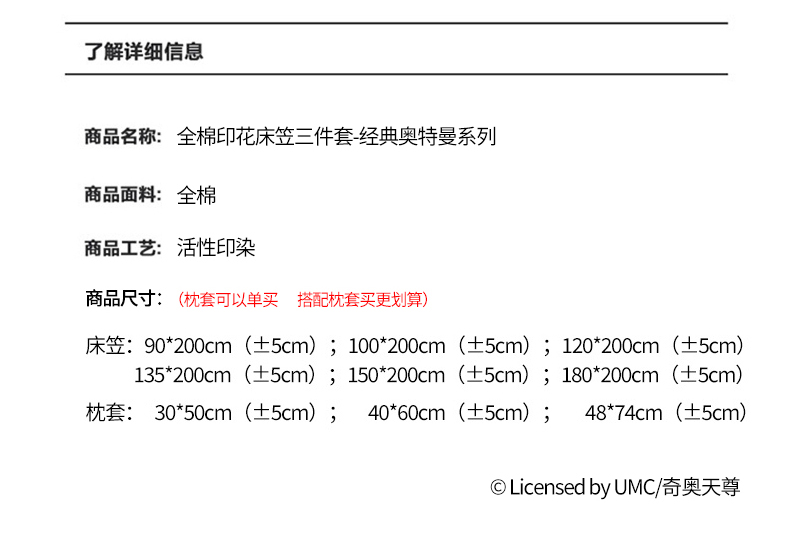 商品名称:蘭菲家纺 2025新款奥特曼全棉床笠 独行者