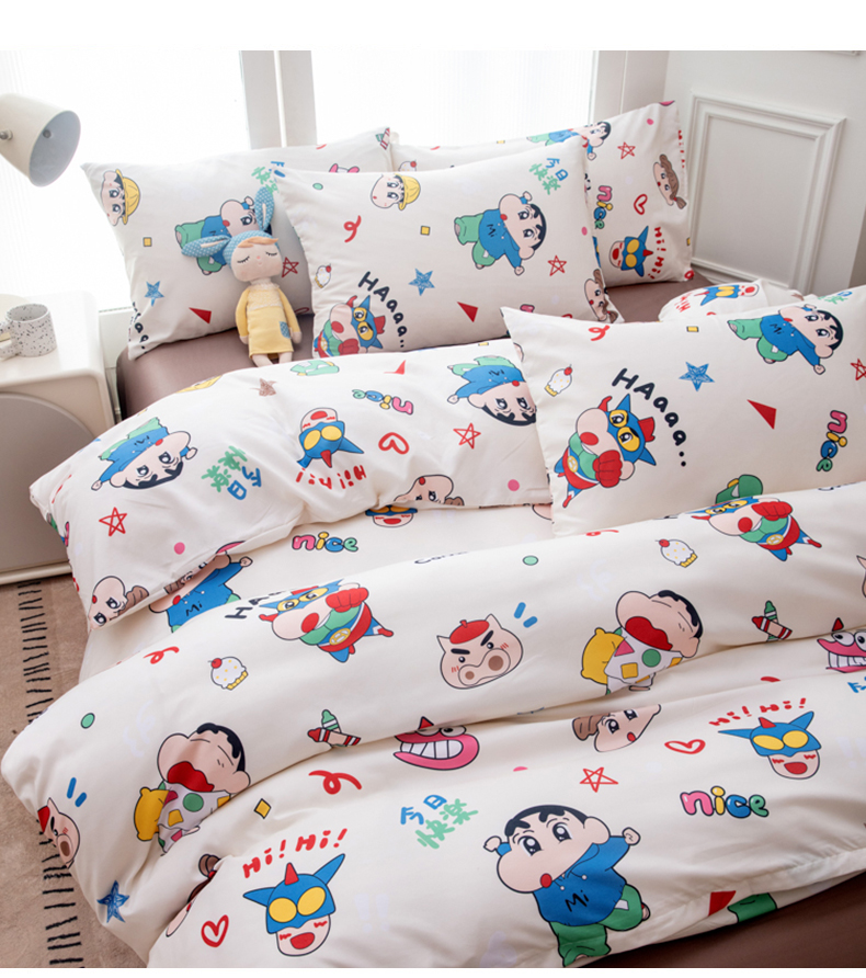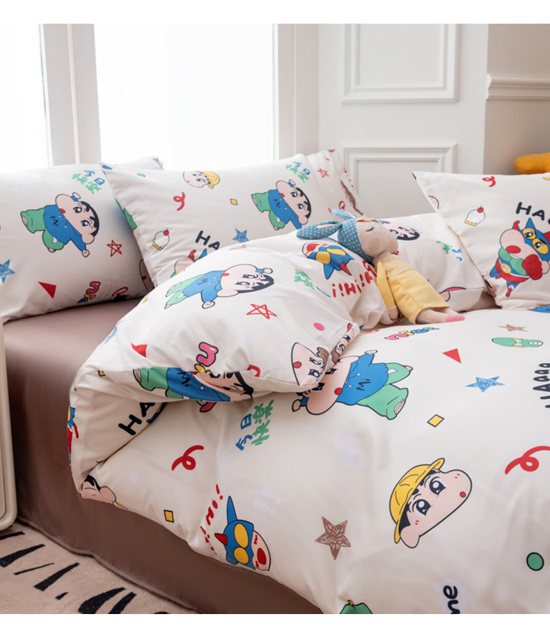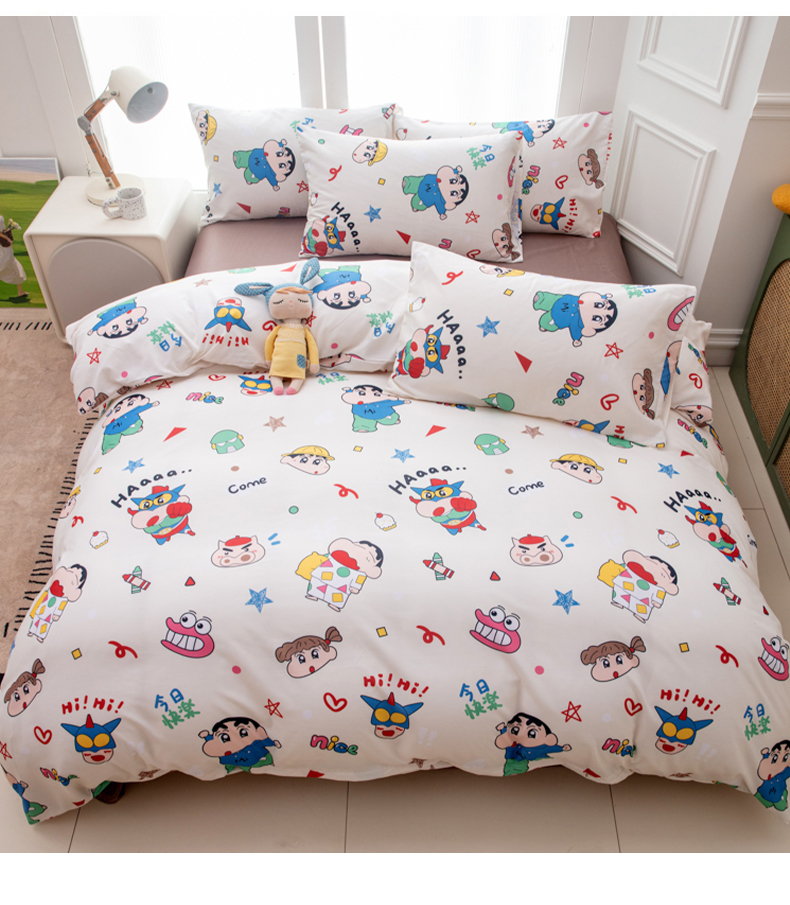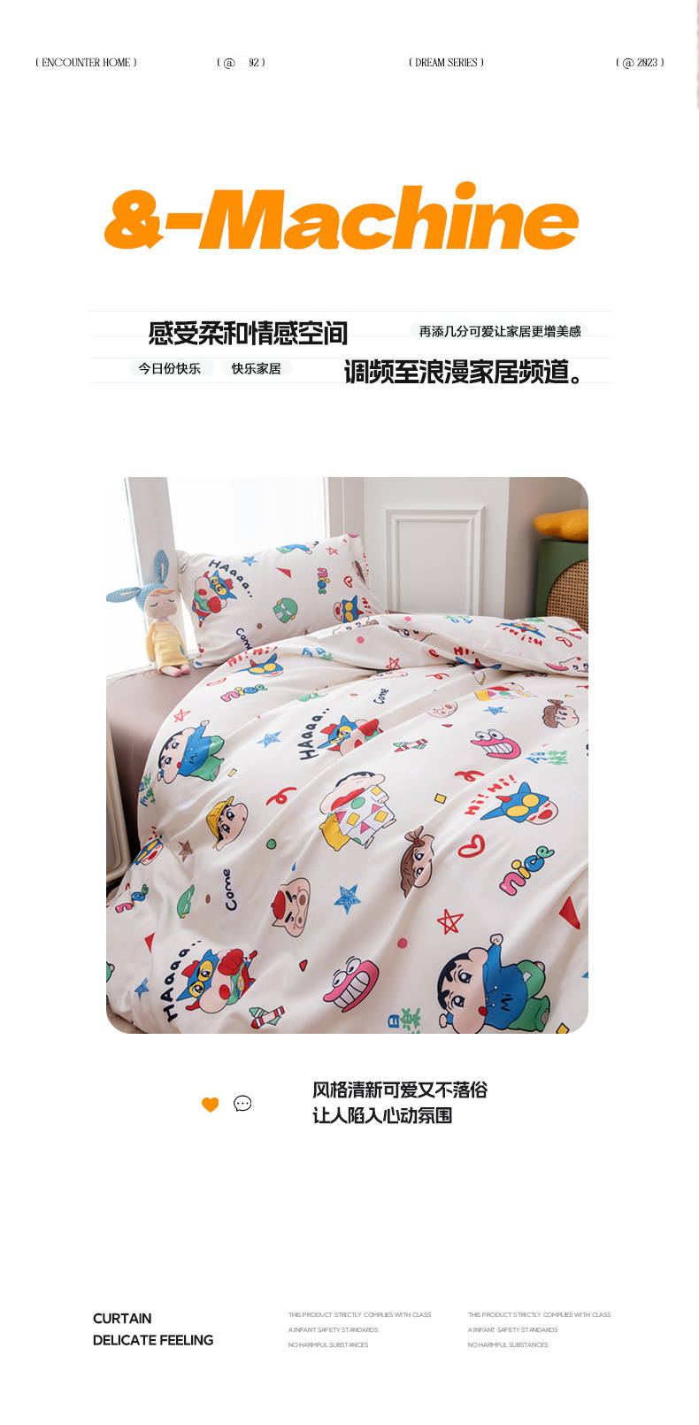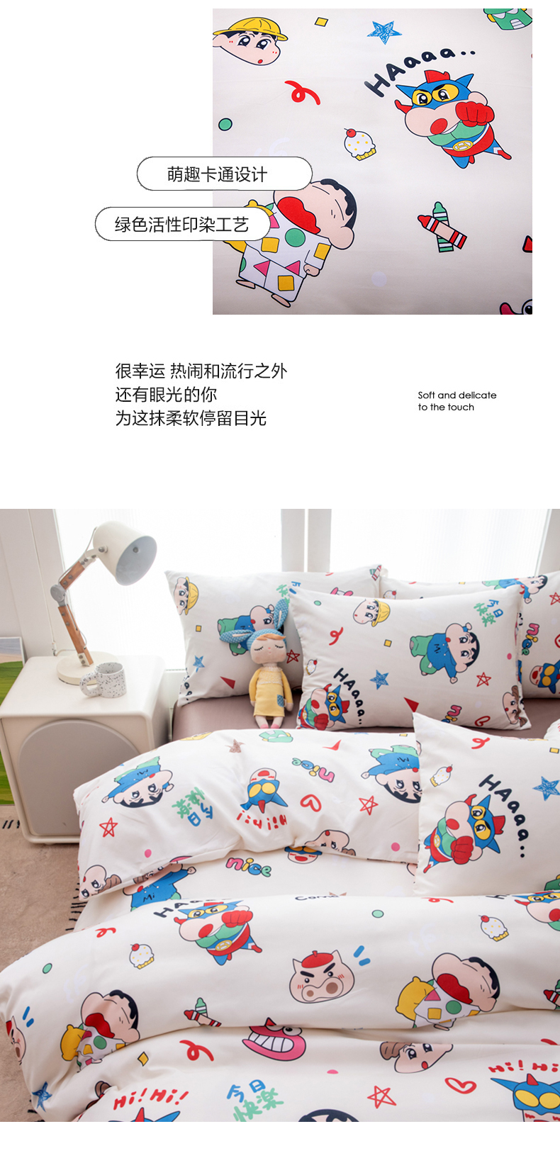 当前位置: 91家纺网 > 商品网购 > 床品套件 > 四件套 > 水洗棉四件套 > 乐居坊 2025新款亲肤舒适A类水洗云朵棉四件套-场景二 可爱小新
