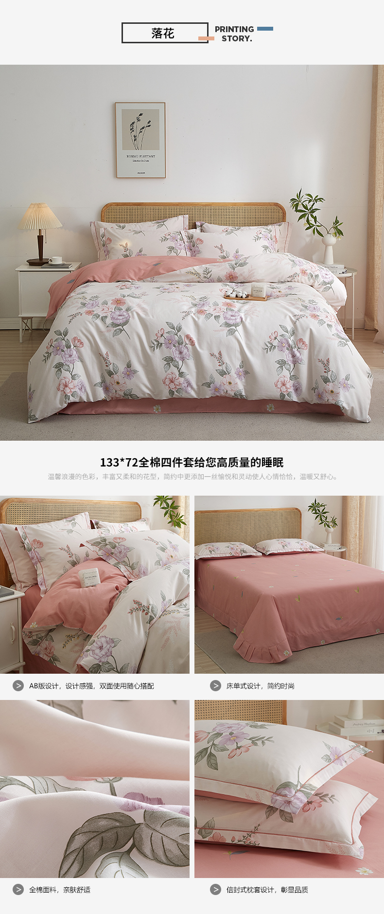 商品名称:沐白家居 2025新款全棉印花四件套 落花