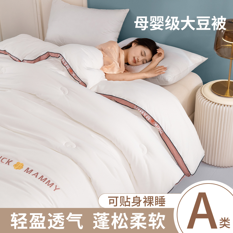 (买家秀 热款花色不断货)A类母婴级大豆被立体边刺绣春秋冬被大豆纤维被空调被纯色被子大豆被芯-场景1 展示图4