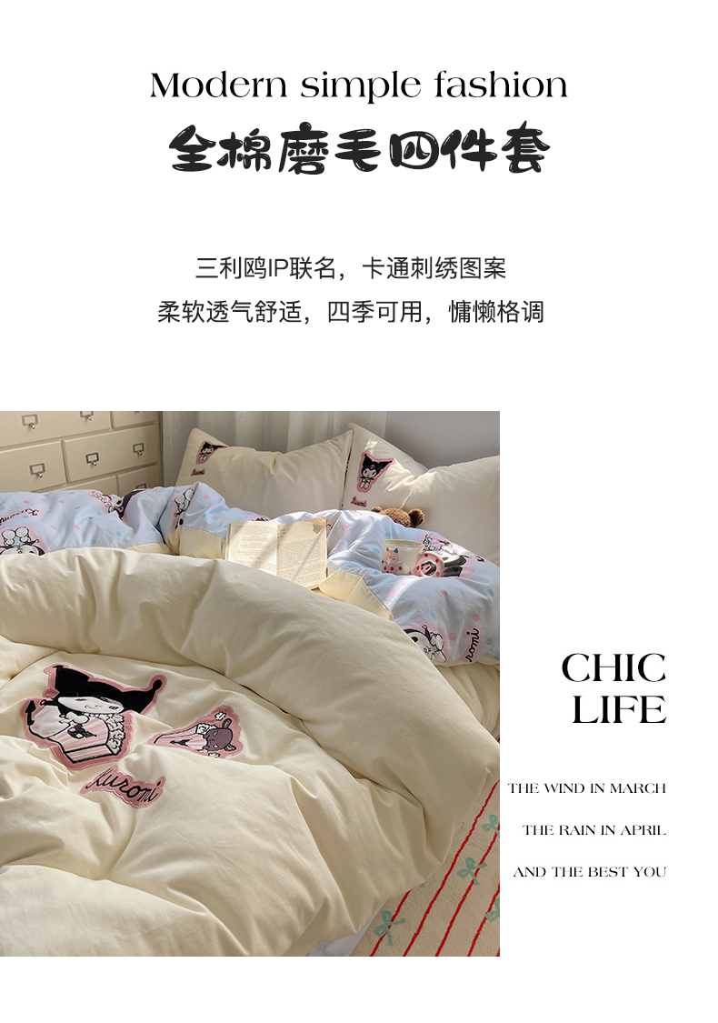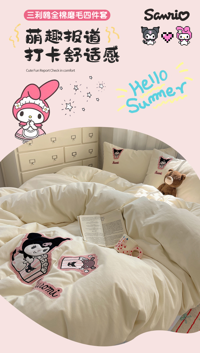 当前位置: 91家纺网 > 商品网购 > 床品套件 > 四件套 > 全棉普通四件套 > (买家秀爆款花色不断货)A类母婴级纯棉磨毛四件套简约纯棉全棉磨毛四件套三丽鸥磨毛四件套贴布绣纯棉全棉 甜筒库洛米-米