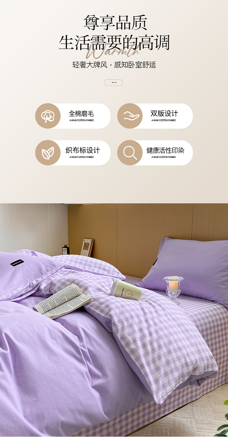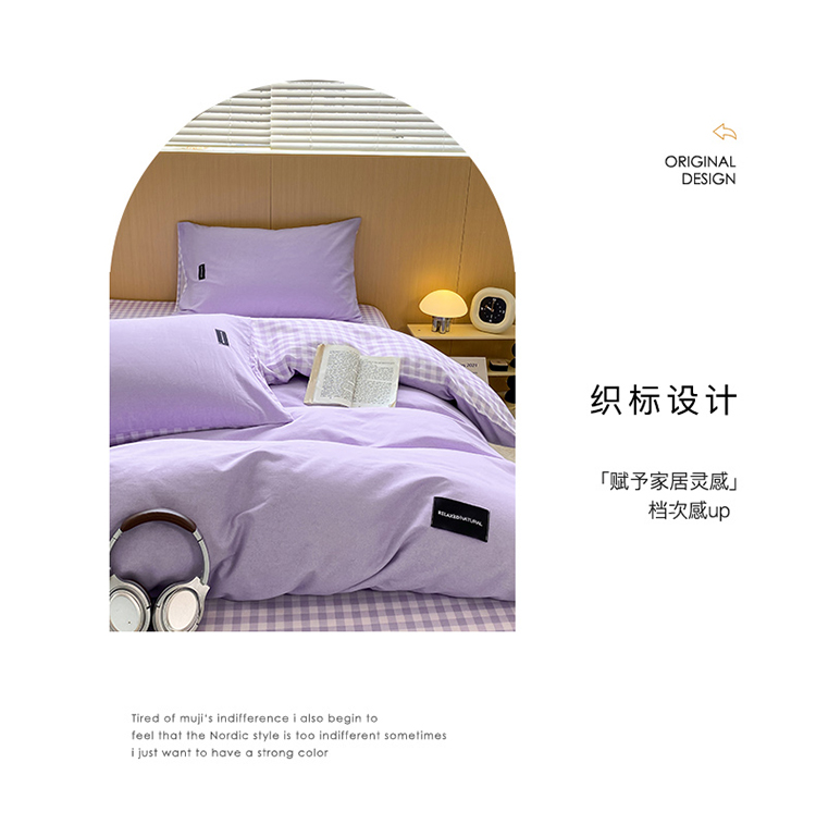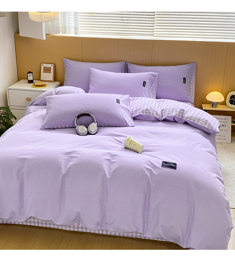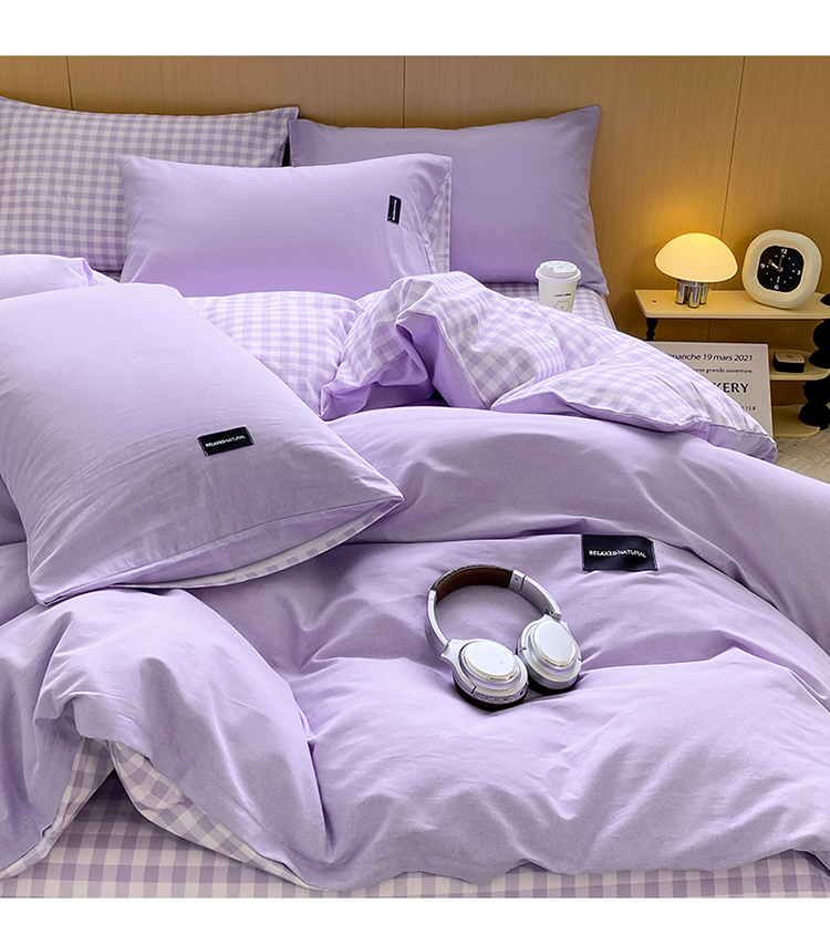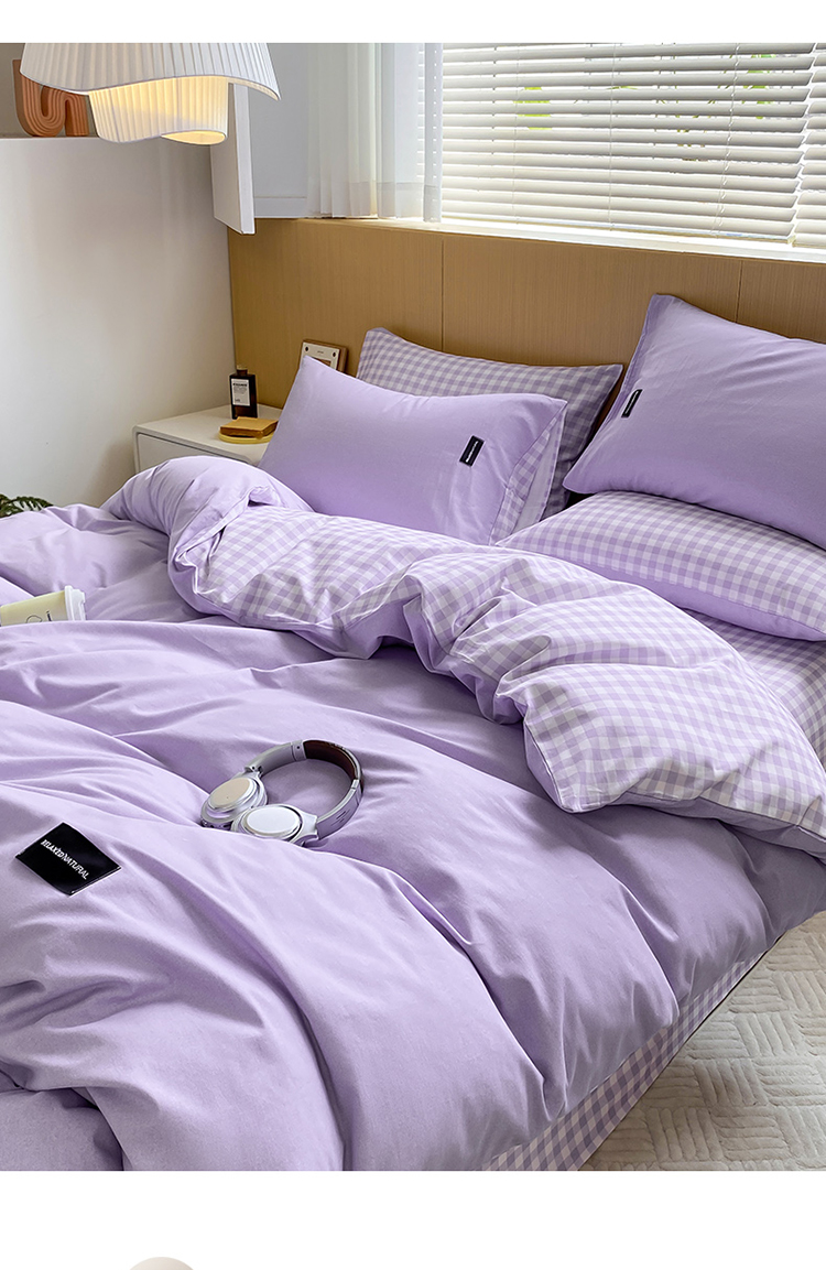 当前位置: 91家纺网 > 商品网购 > 床品套件 > 四件套 > 全棉普通四件套 > (买家秀 爆款花色不断货)A类母婴级纯棉磨毛四件套简约纯棉全棉磨毛四件套纯棉全棉四件套无印风-场景2 简兮-紫