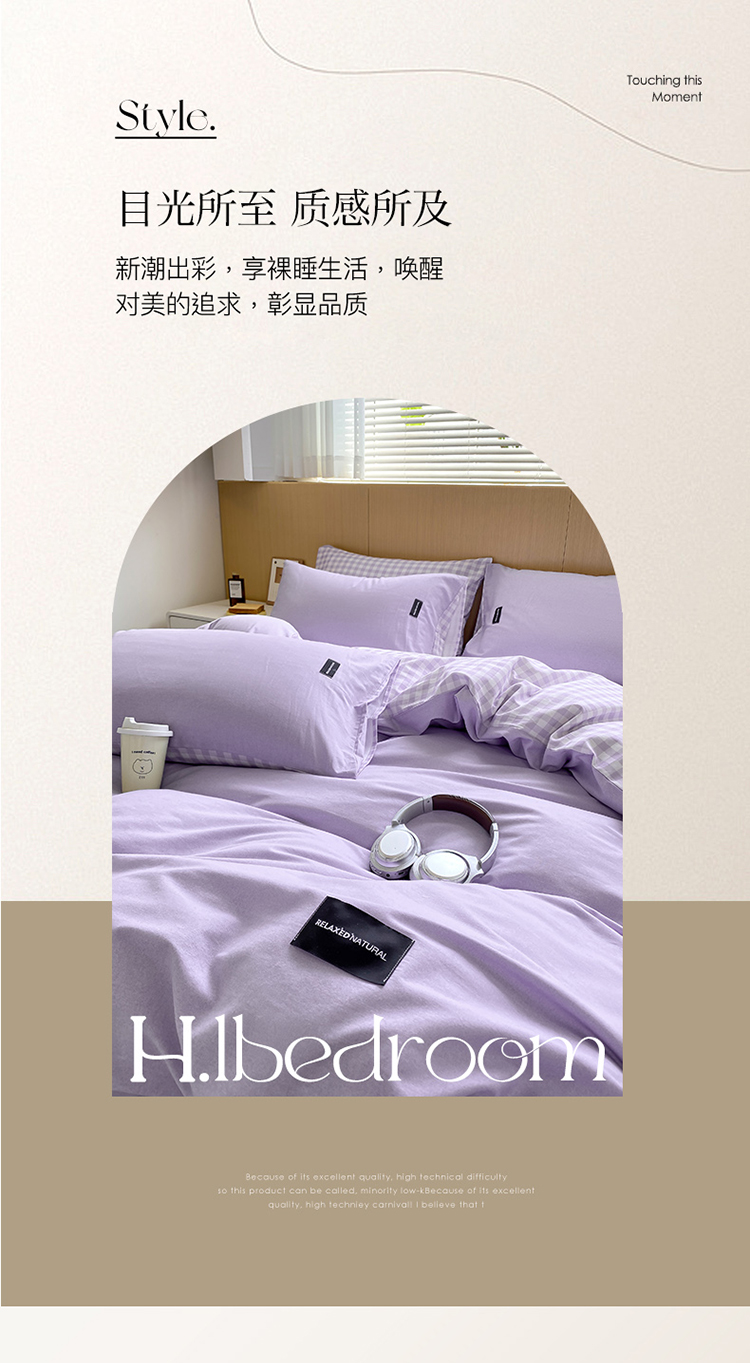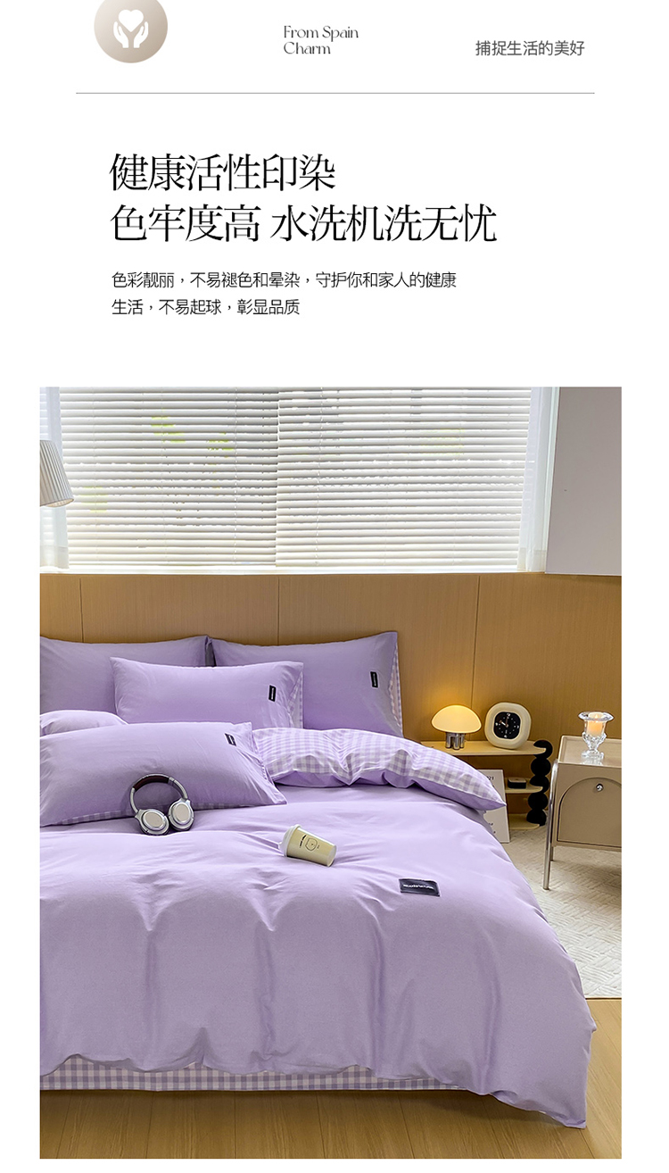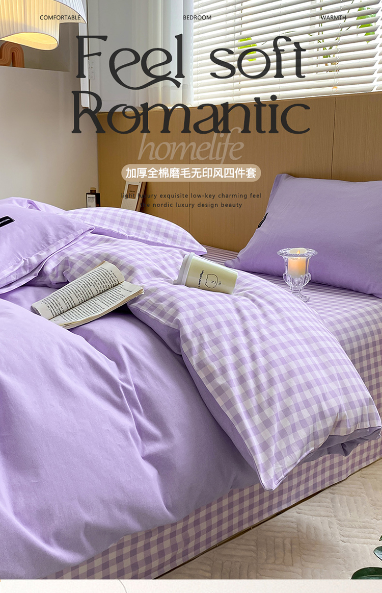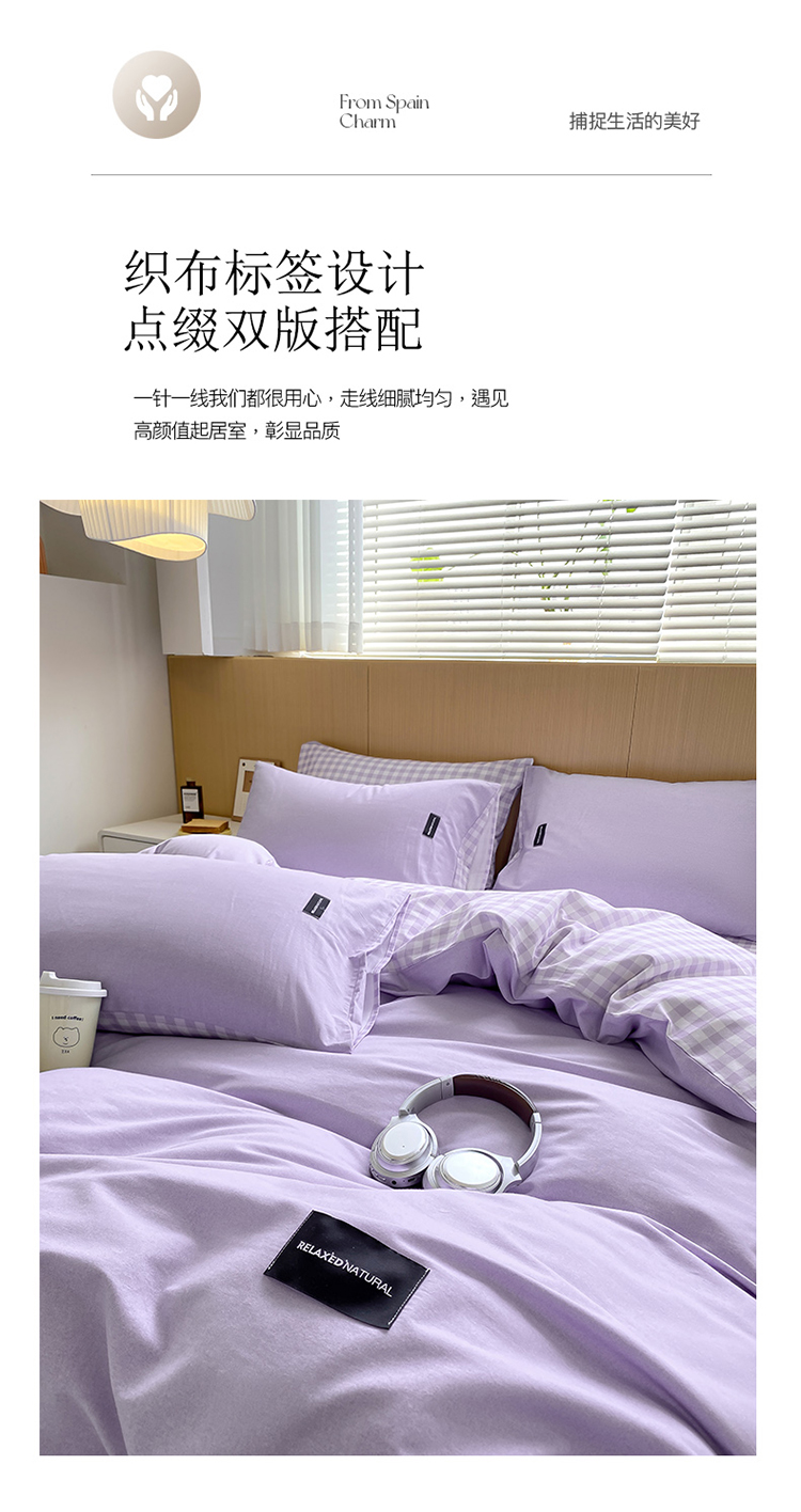 当前位置: 91家纺网 > 商品网购 > 床品套件 > 四件套 > 全棉普通四件套 > (买家秀 爆款花色不断货)A类母婴级纯棉磨毛四件套简约纯棉全棉磨毛四件套纯棉全棉四件套无印风-场景2 简兮-紫