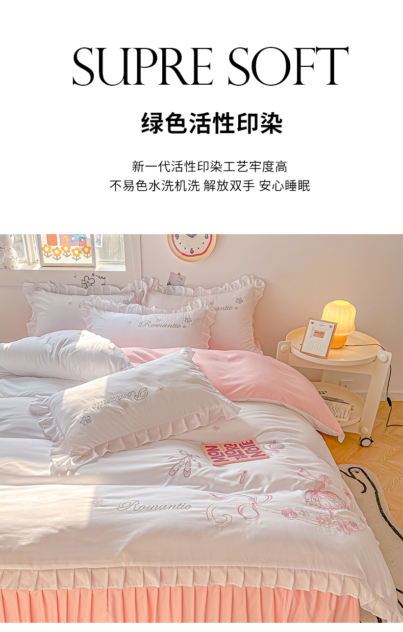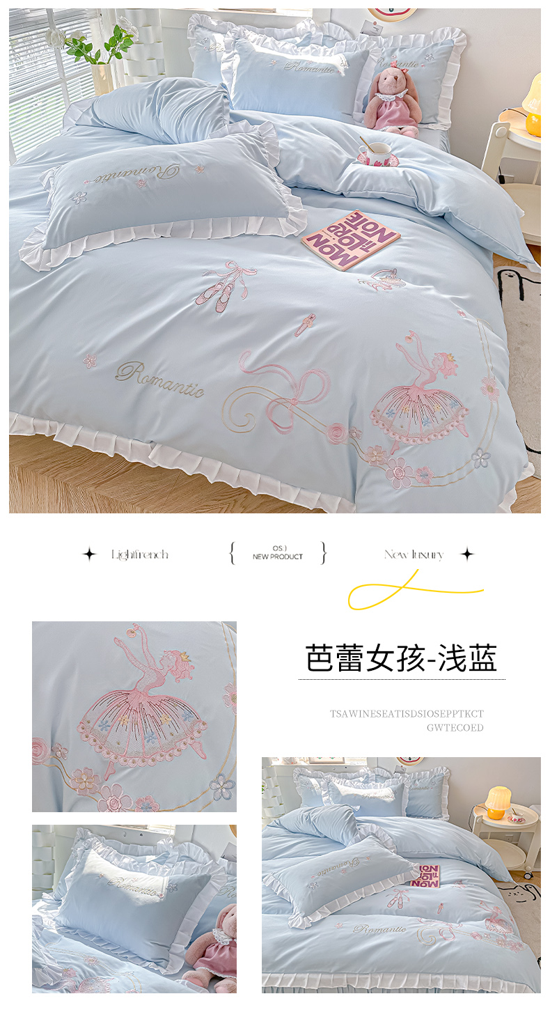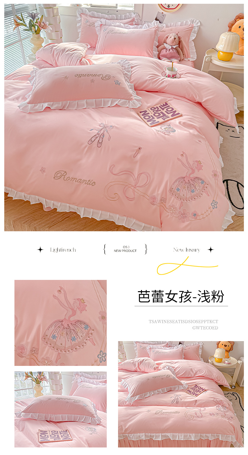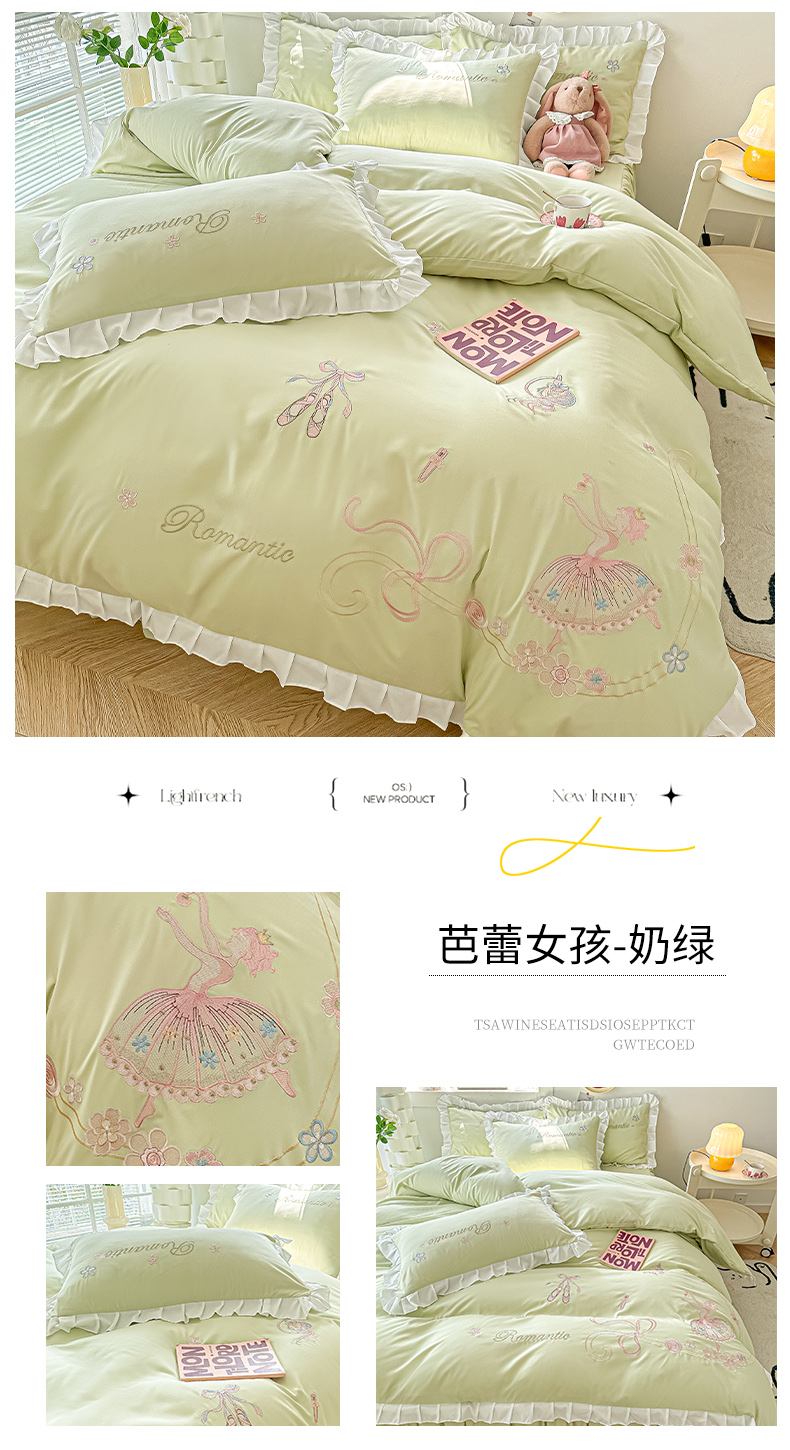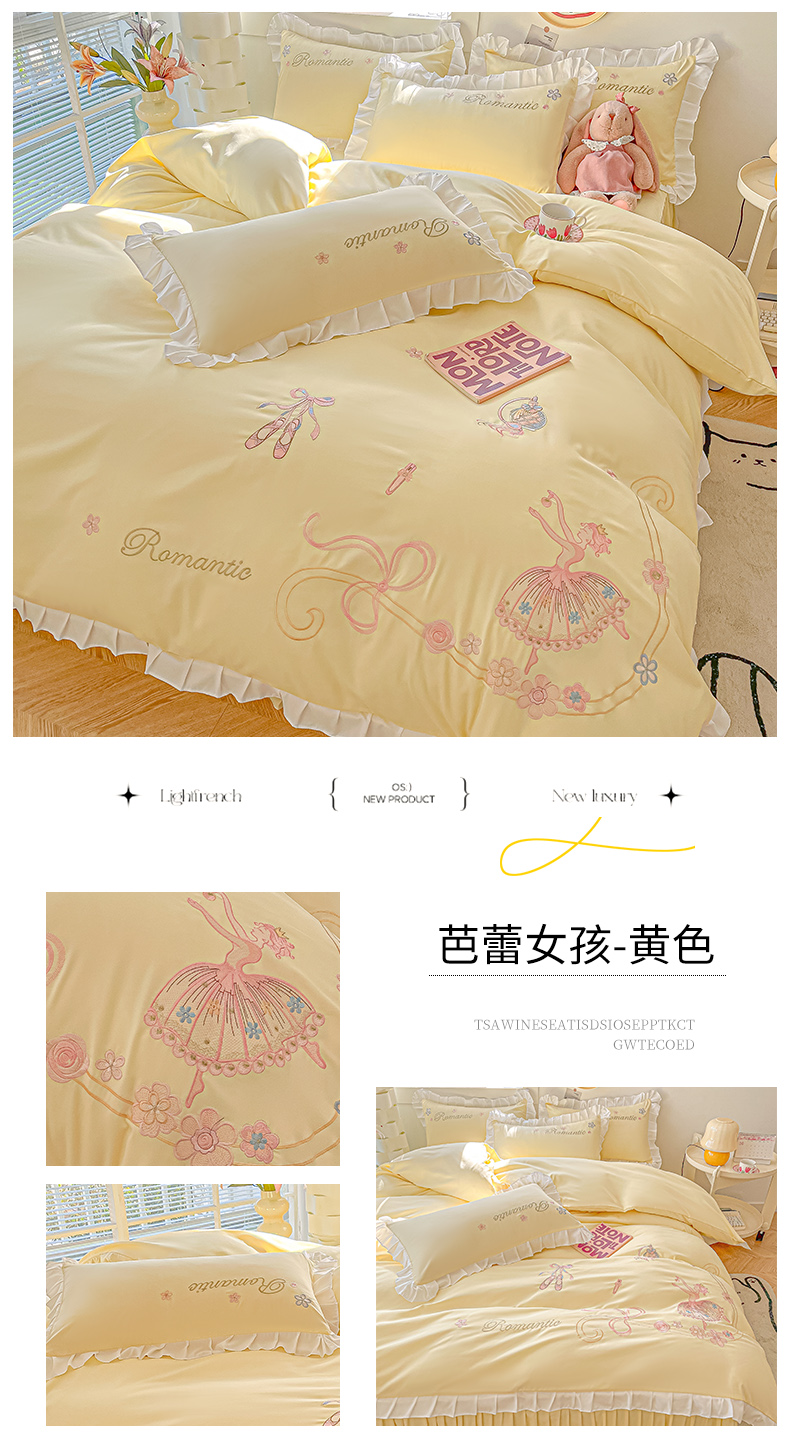 商品名称:(总)(买家秀爆款花型长期款不断货)A类ins风花边刺绣四件套毛巾绣四件套四件套绣花四件套纯棉全棉四件套