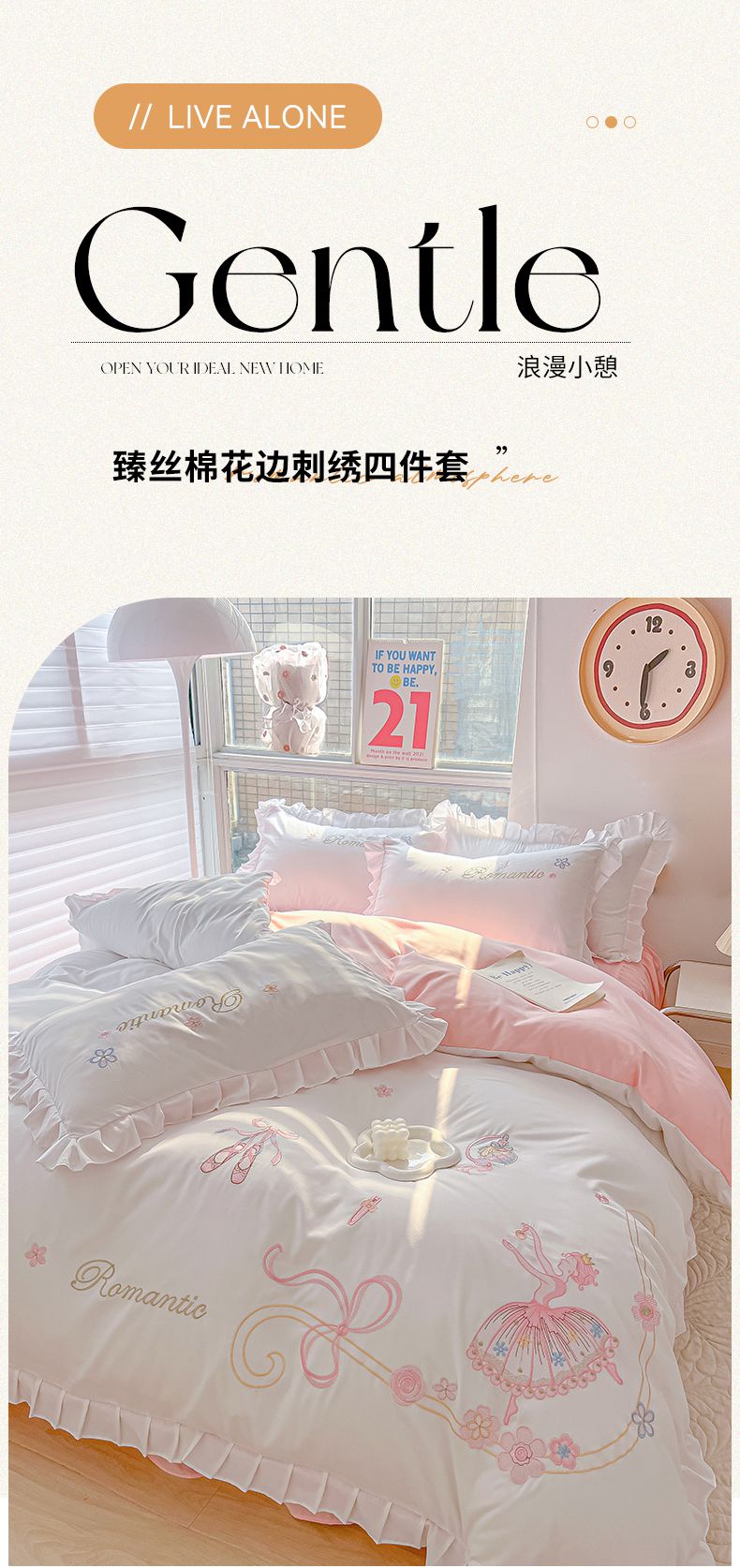 (总)(买家秀爆款花型长期款不断货)A类ins风花边刺绣四件套毛巾绣四件套四件套绣花四件套纯棉全棉四件套