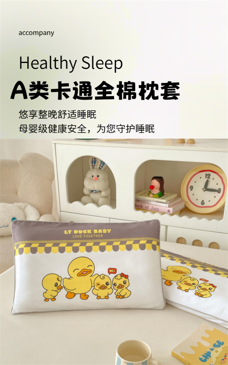 • 91家纺网 家纺一手货源 找家纺 梦舒羽 2025新款正版授权全棉枕套卡通枕芯套枕头内胆套儿童抱枕套 萌鸭一族-白